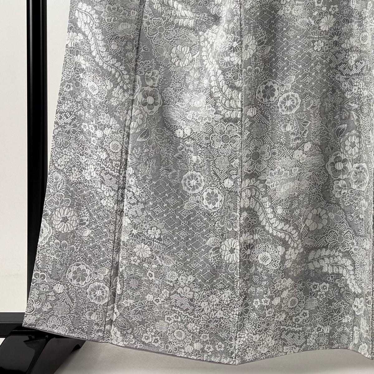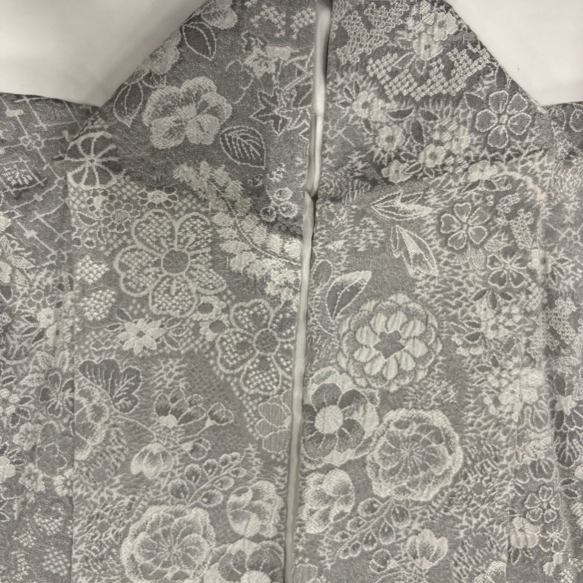 訪問着 身丈160cm 裄丈65.5cm M 袷 草花 流水 銀通し 染め分け 灰色 正絹 逸品 一つ紋