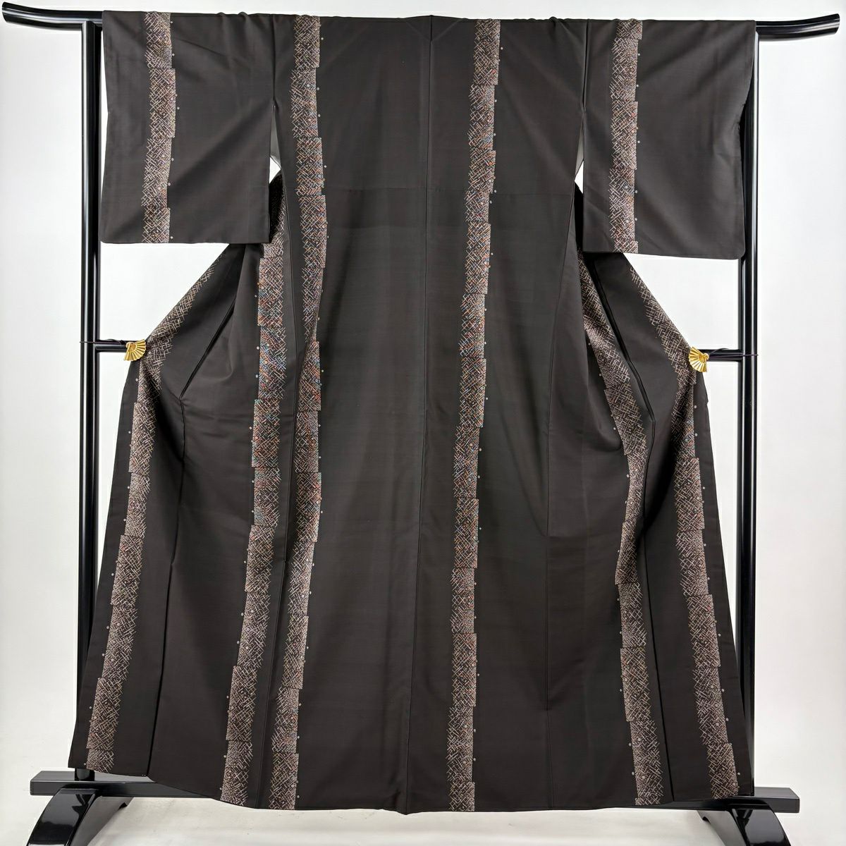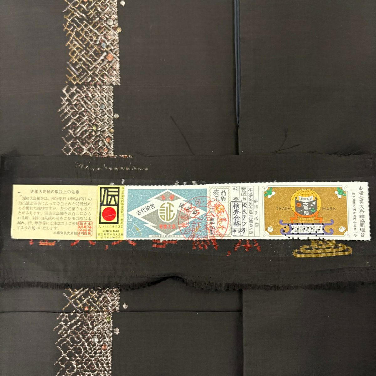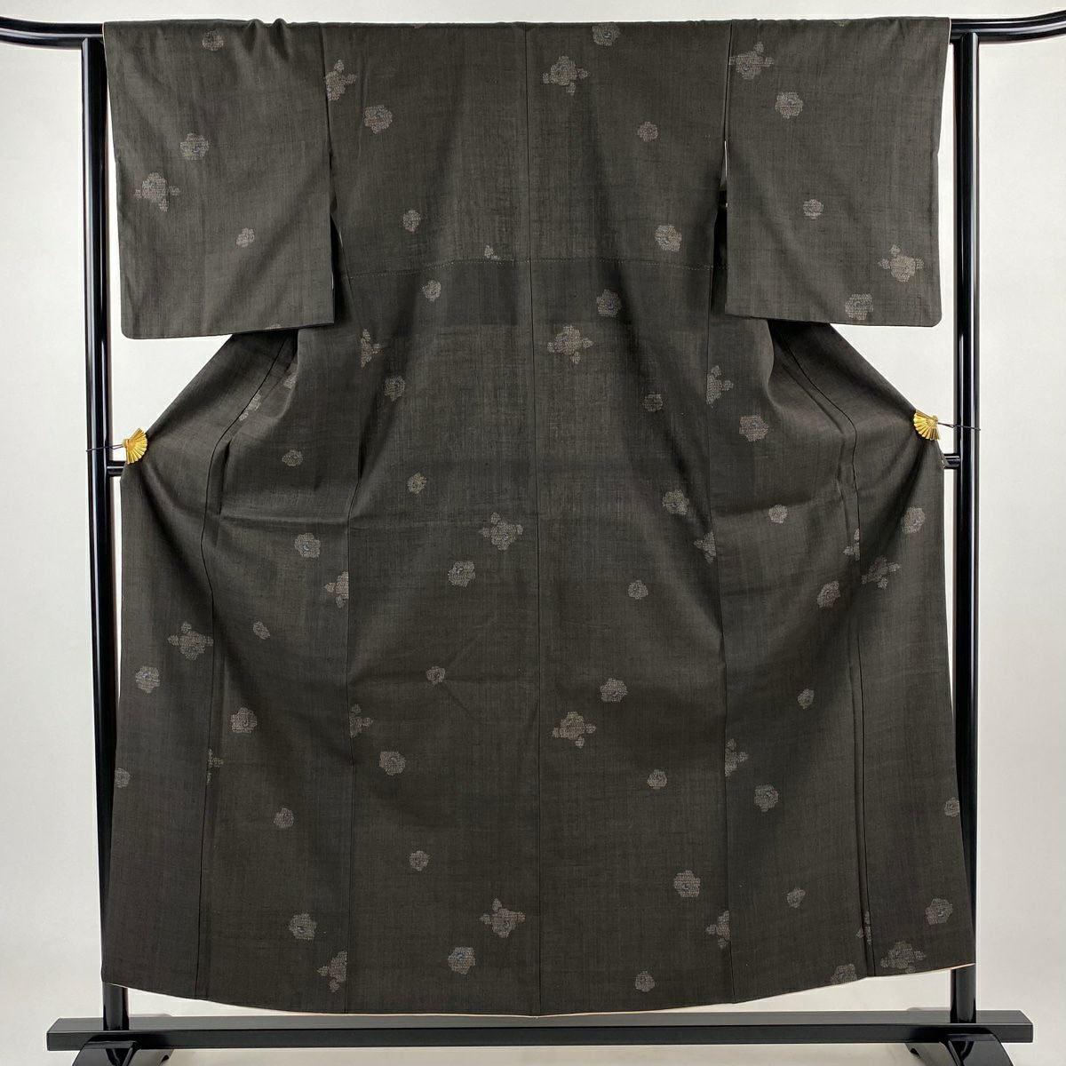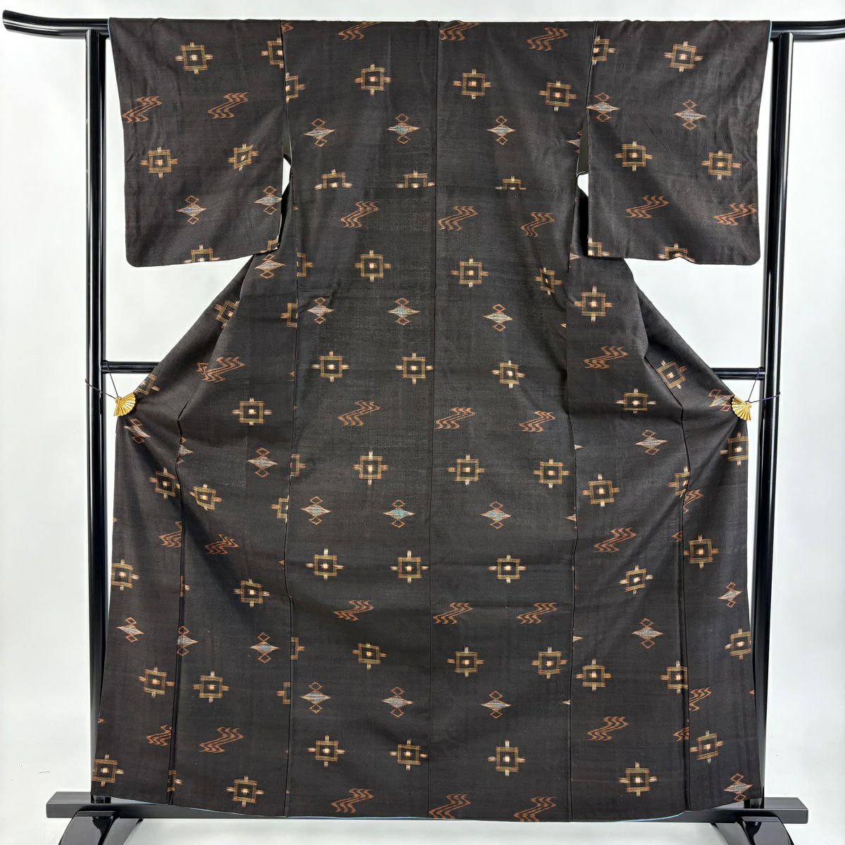 大島紬 身丈160.5cm 裄丈65cm M 袷 純泥染 証紙あり 幾何学模様 ドット 焦茶色 正絹 逸品