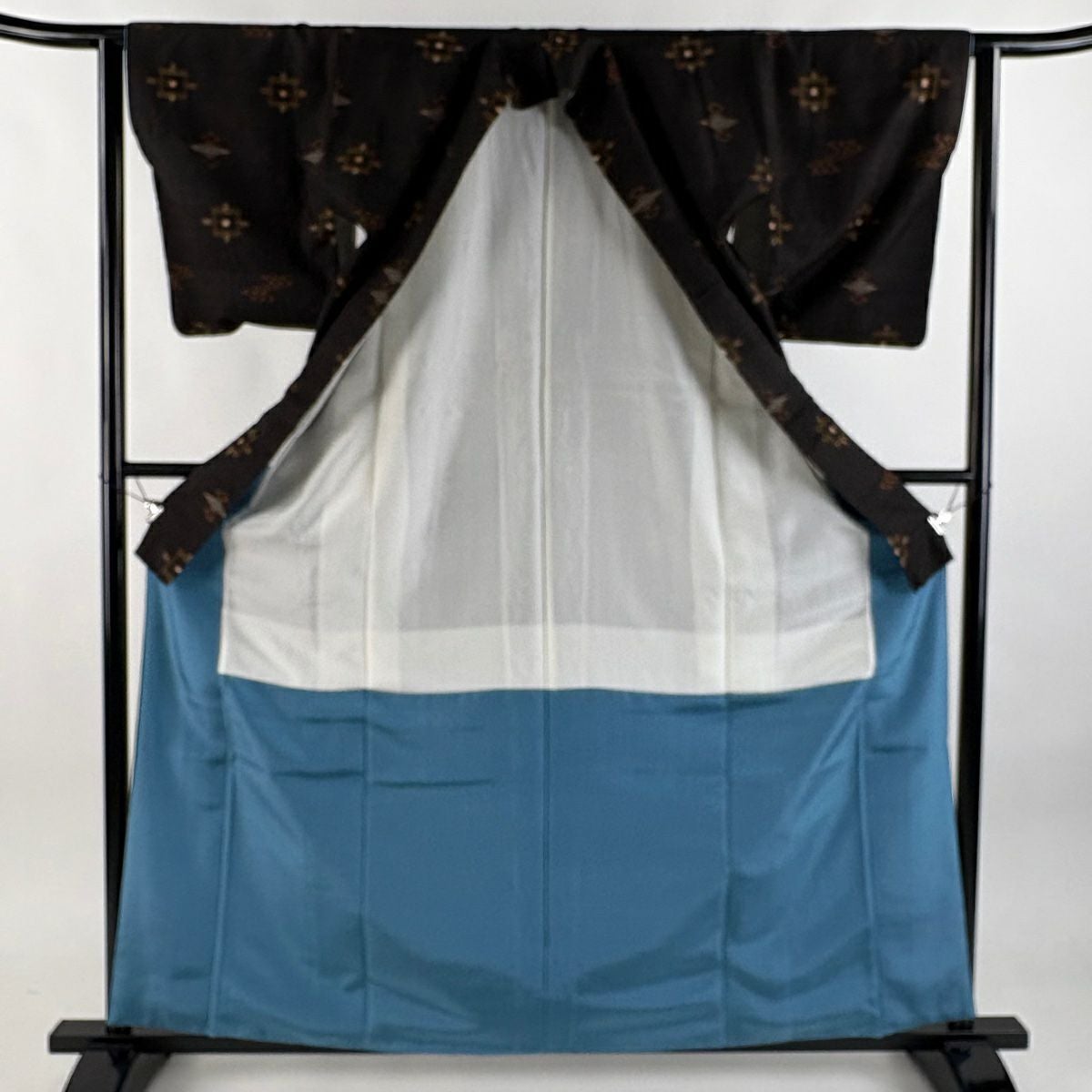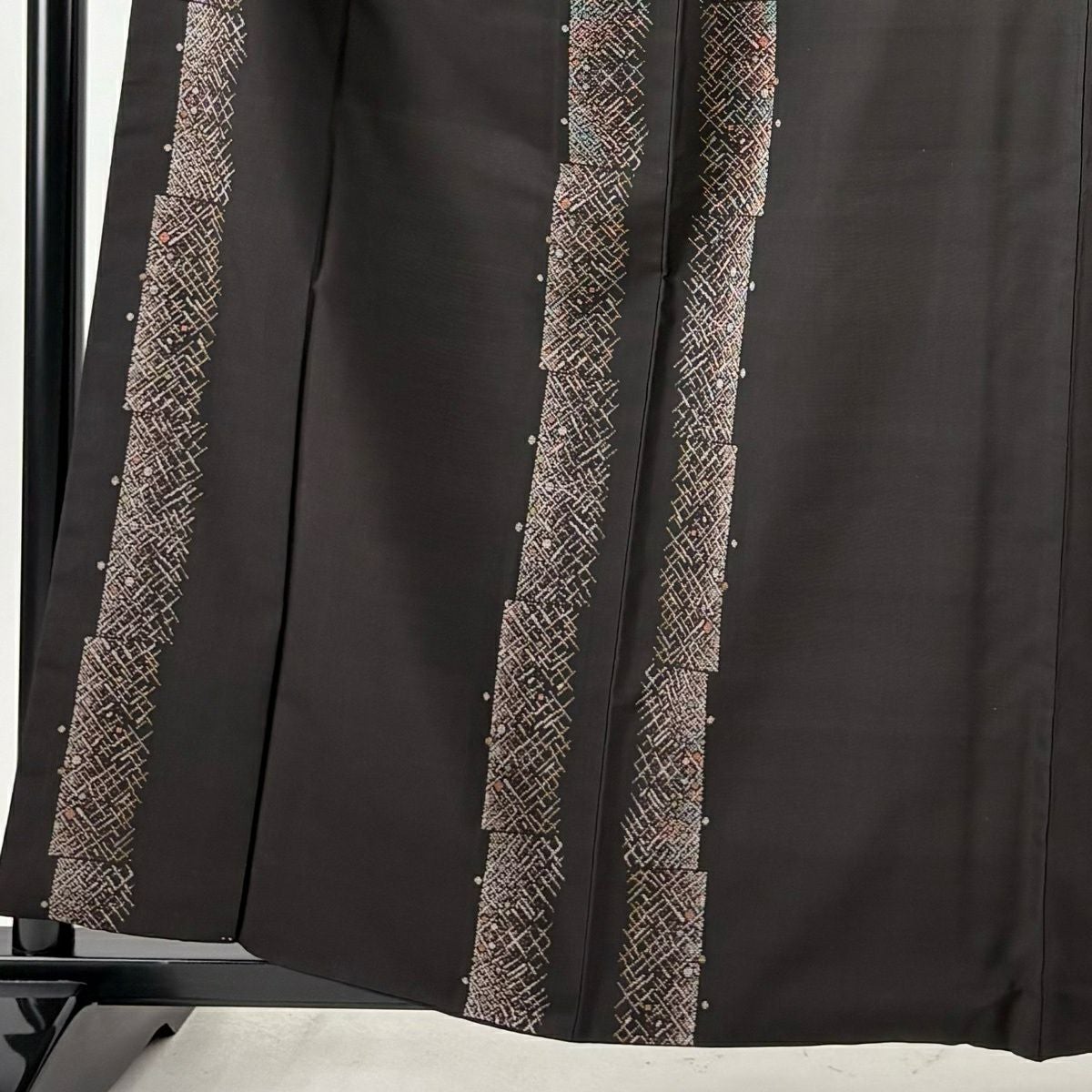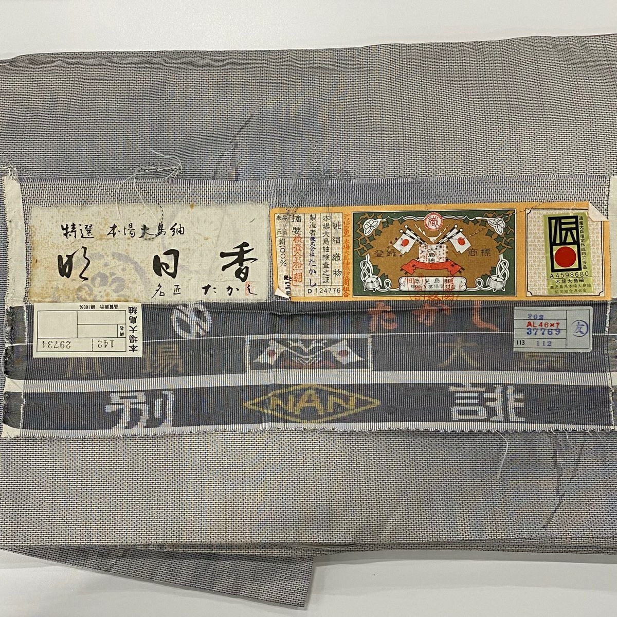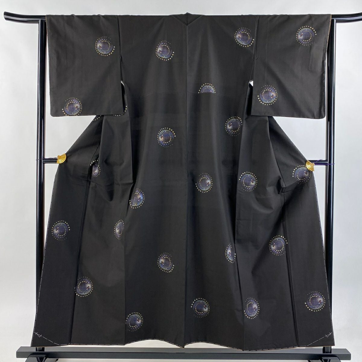 大島紬 身丈160.5cm 裄丈65cm M 袷 純泥染 証紙あり 幾何学模様 ドット 焦茶色 正絹 逸品