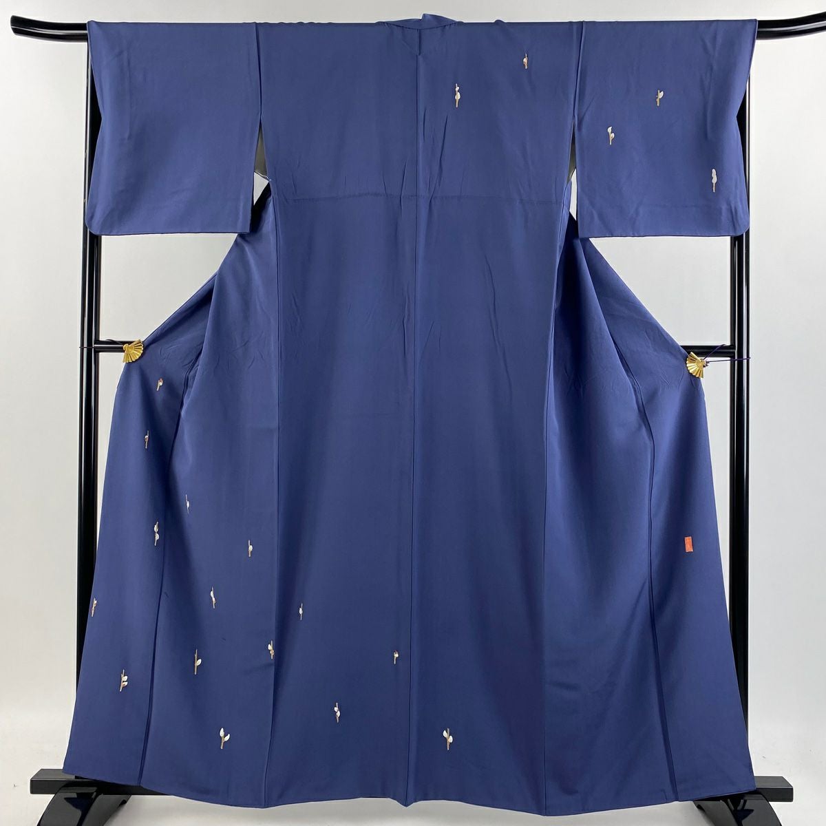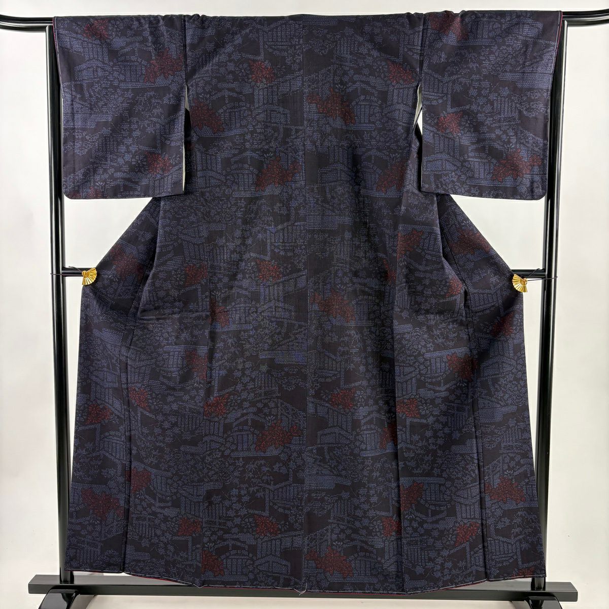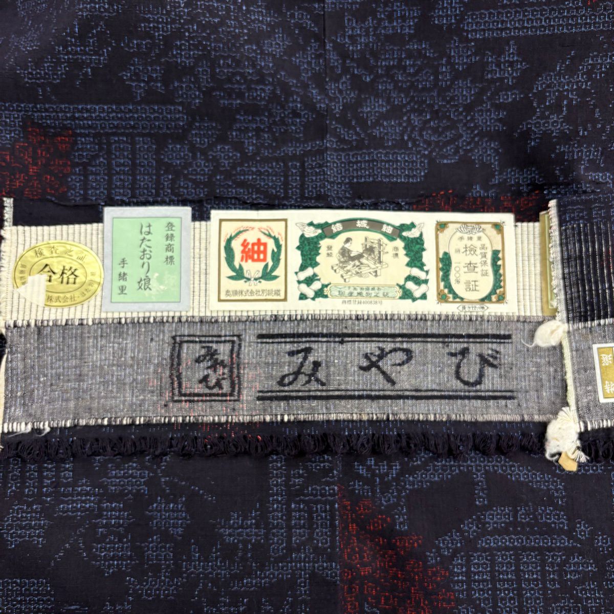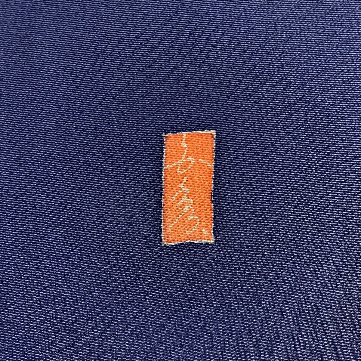 【美品】 結城紬 身丈160cm 裄丈65cm M 袷 はたおり娘 証紙あり 菊 亀甲絣 紺色 正絹 逸品