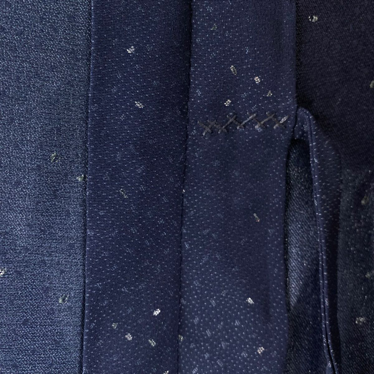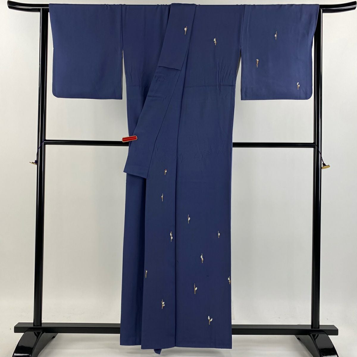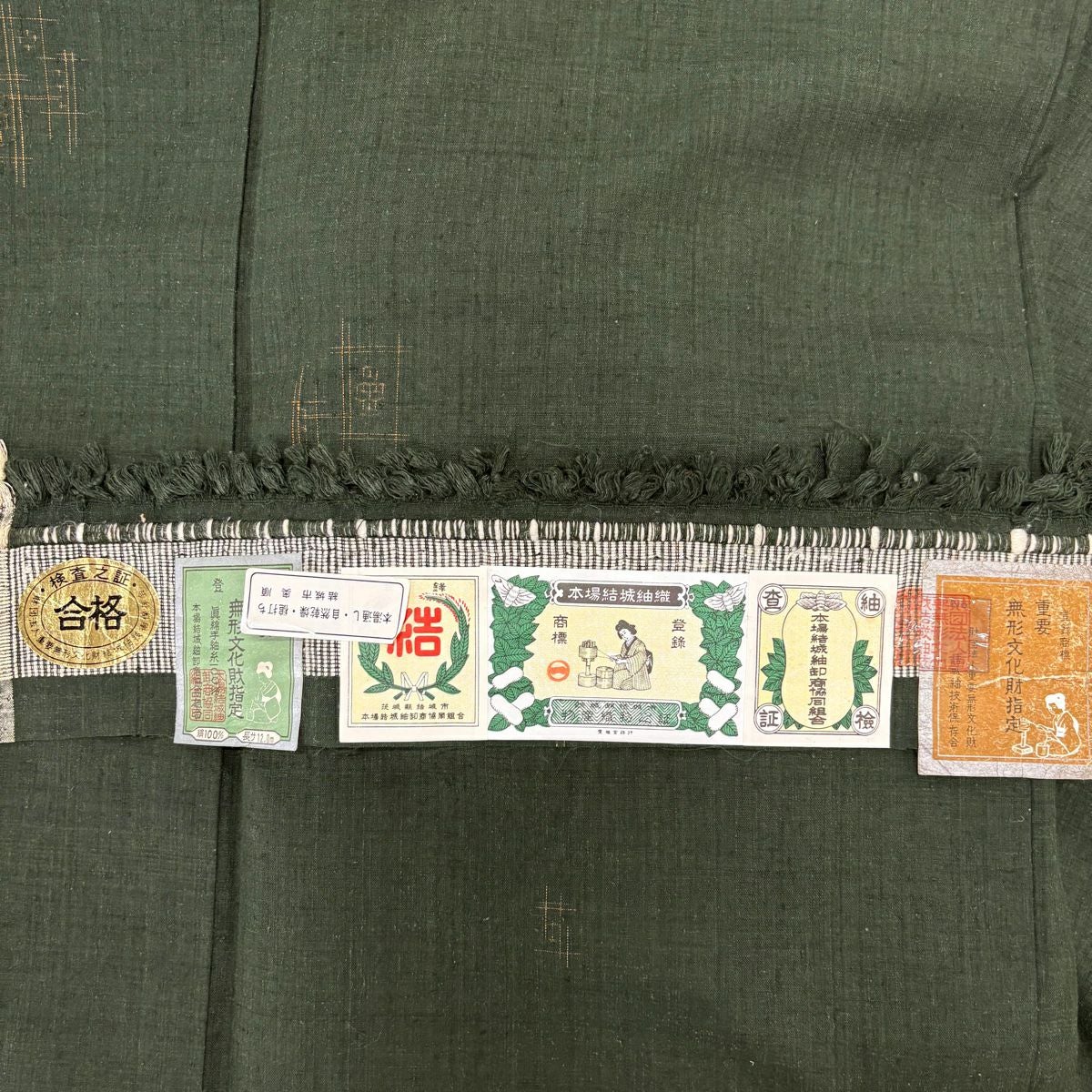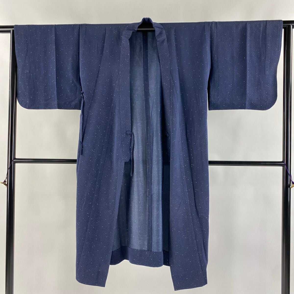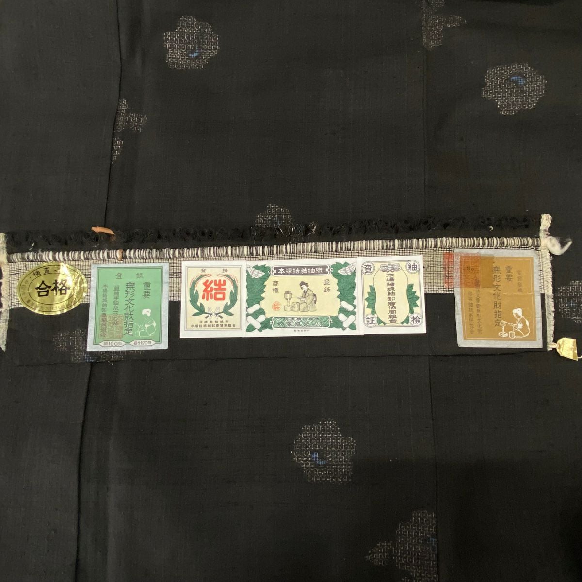 【美品】 結城紬 身丈160cm 裄丈65cm M 袷 はたおり娘 証紙あり 菊 亀甲絣 紺色 正絹 逸品