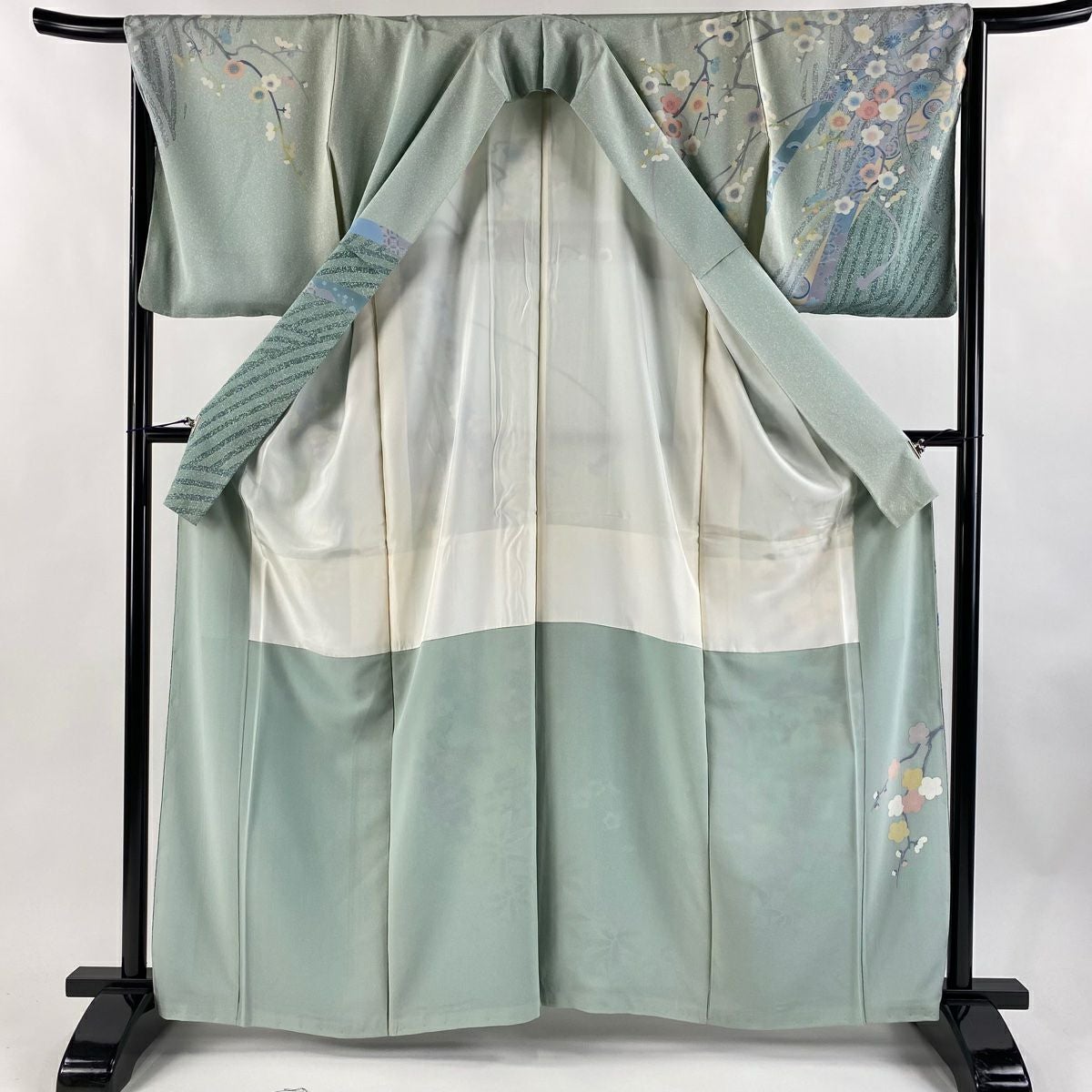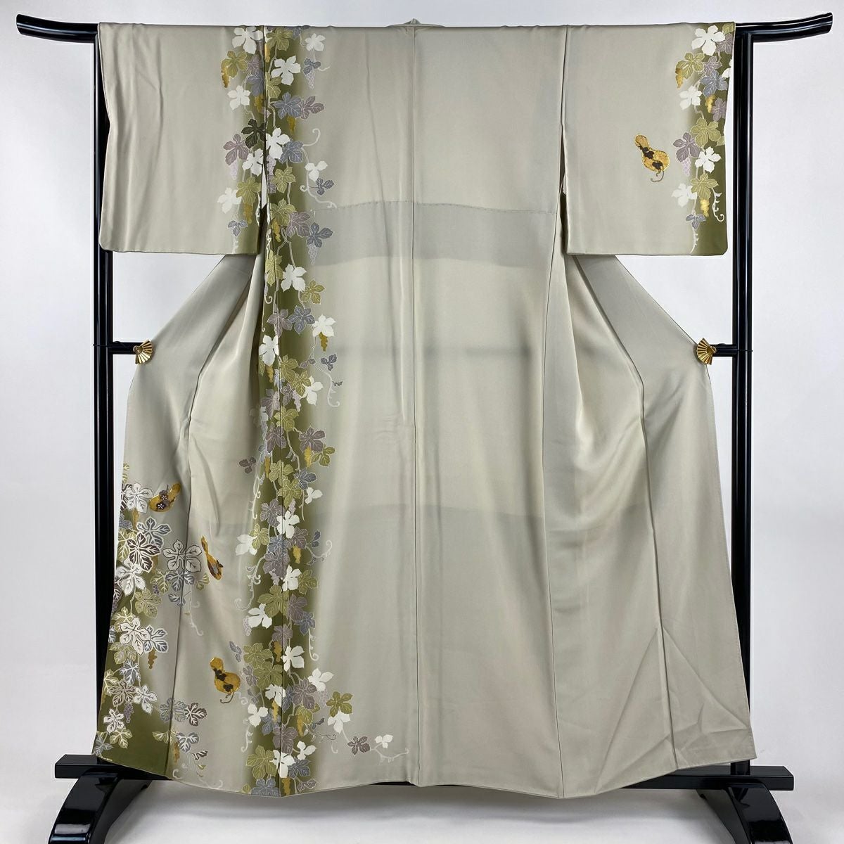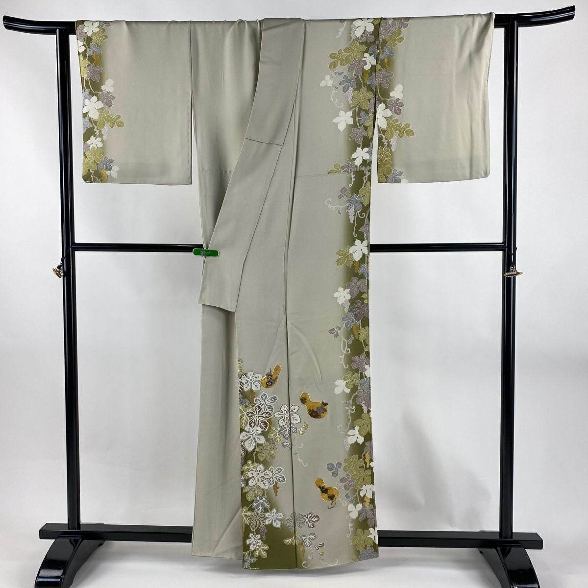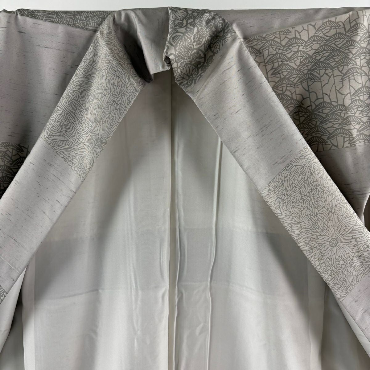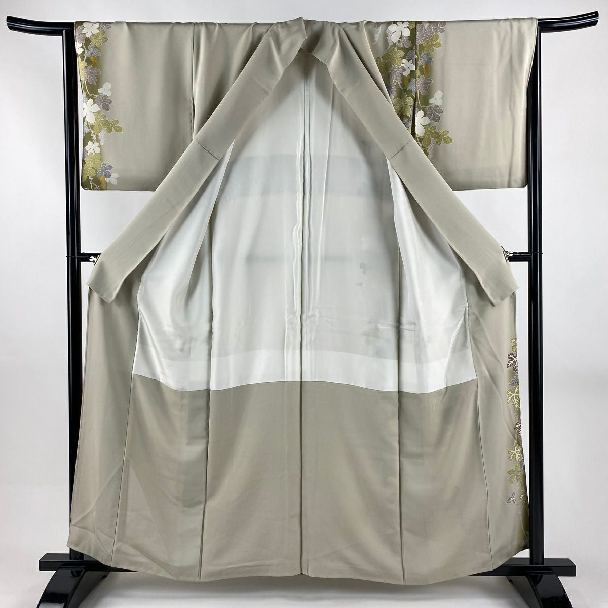 訪問着 身丈160cm 裄丈65.5cm M 袷 松井青々 落款あり 菊 梅 金糸 金銀彩 灰緑 正絹 逸品