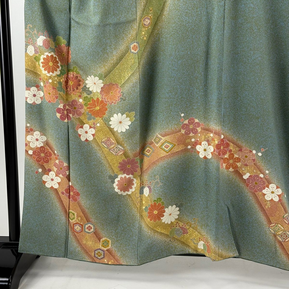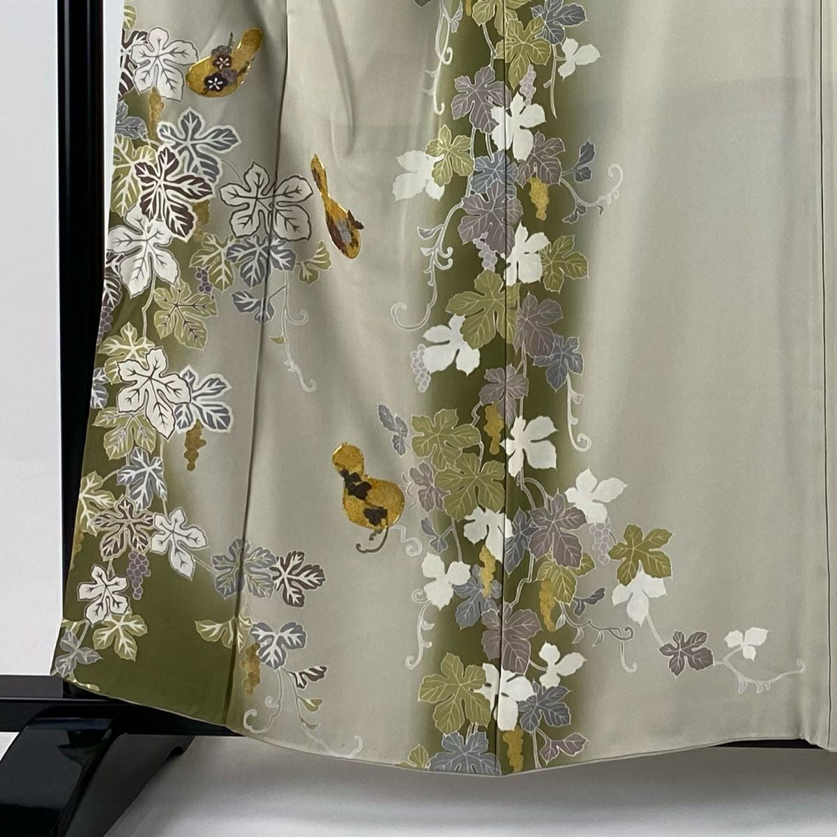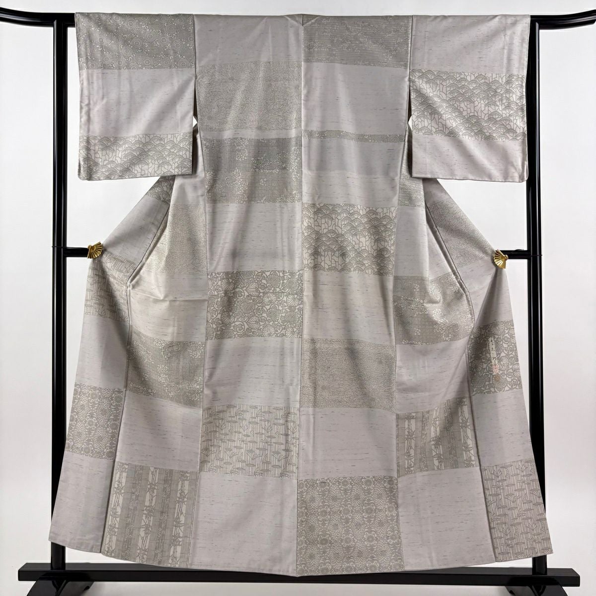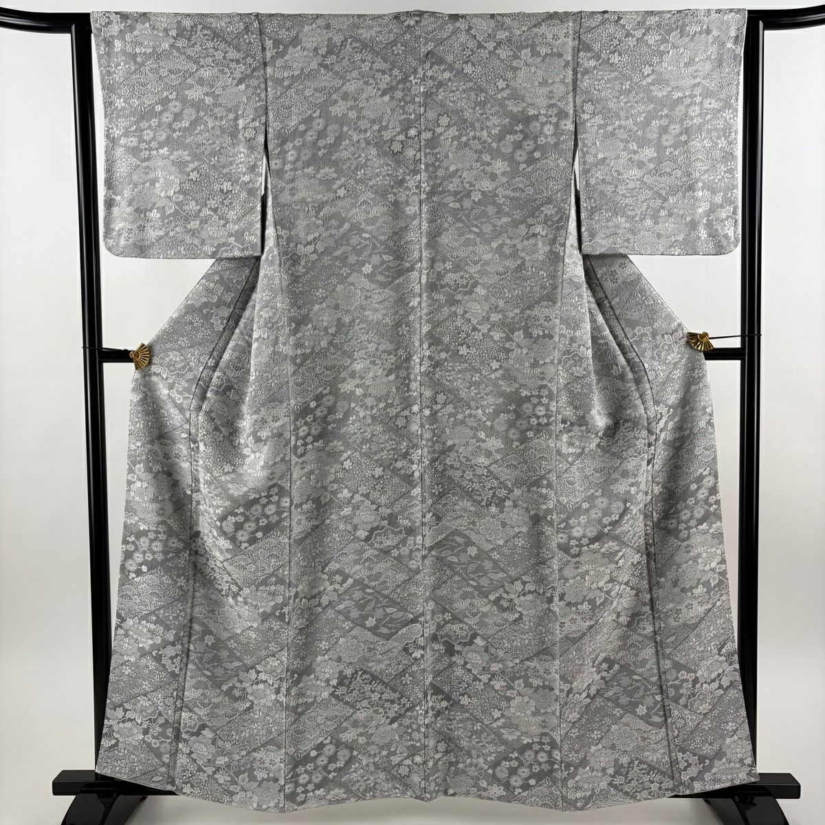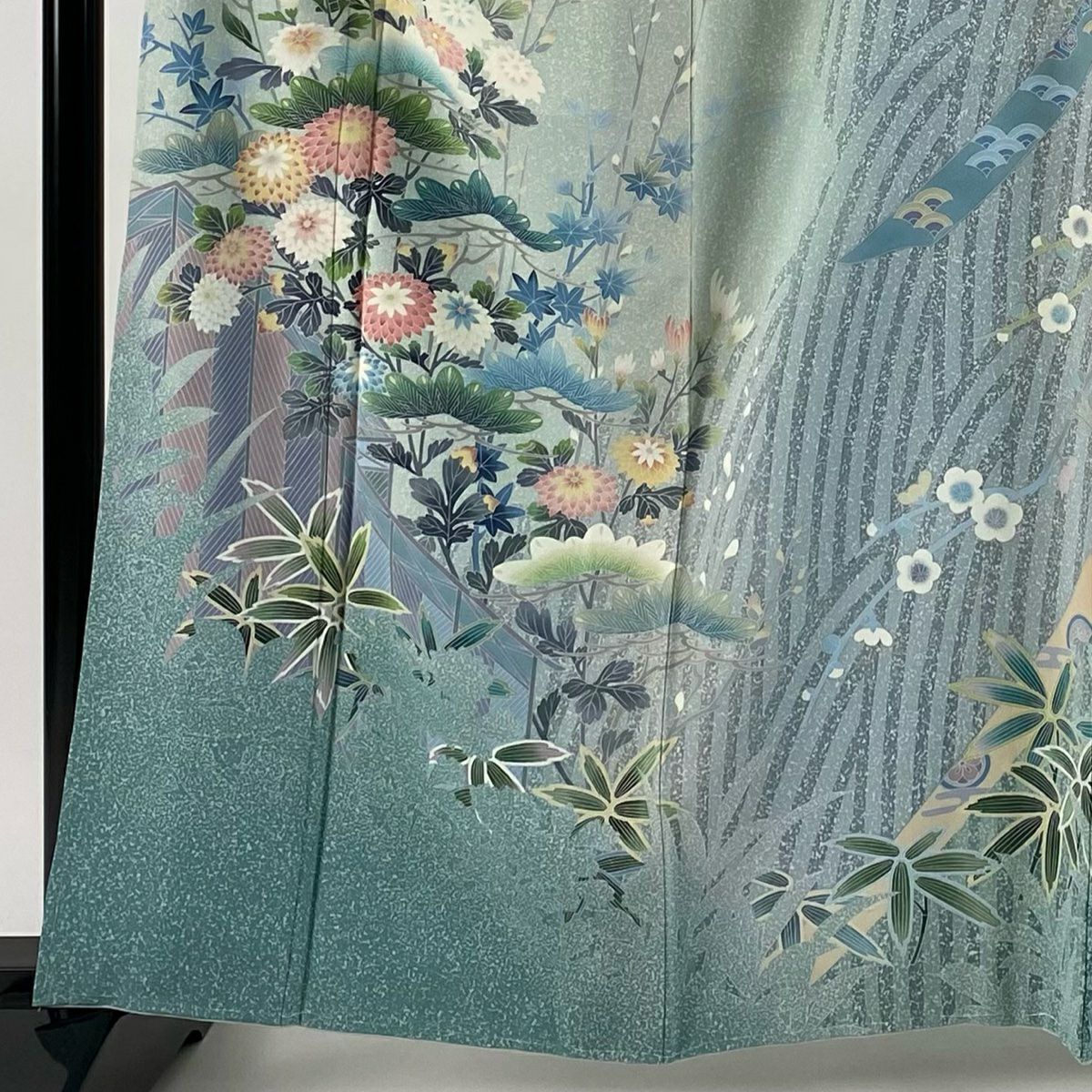 訪問着 身丈160cm 裄丈65.5cm M 袷 松井青々 落款あり 菊 梅 金糸 金銀彩 灰緑 正絹 逸品