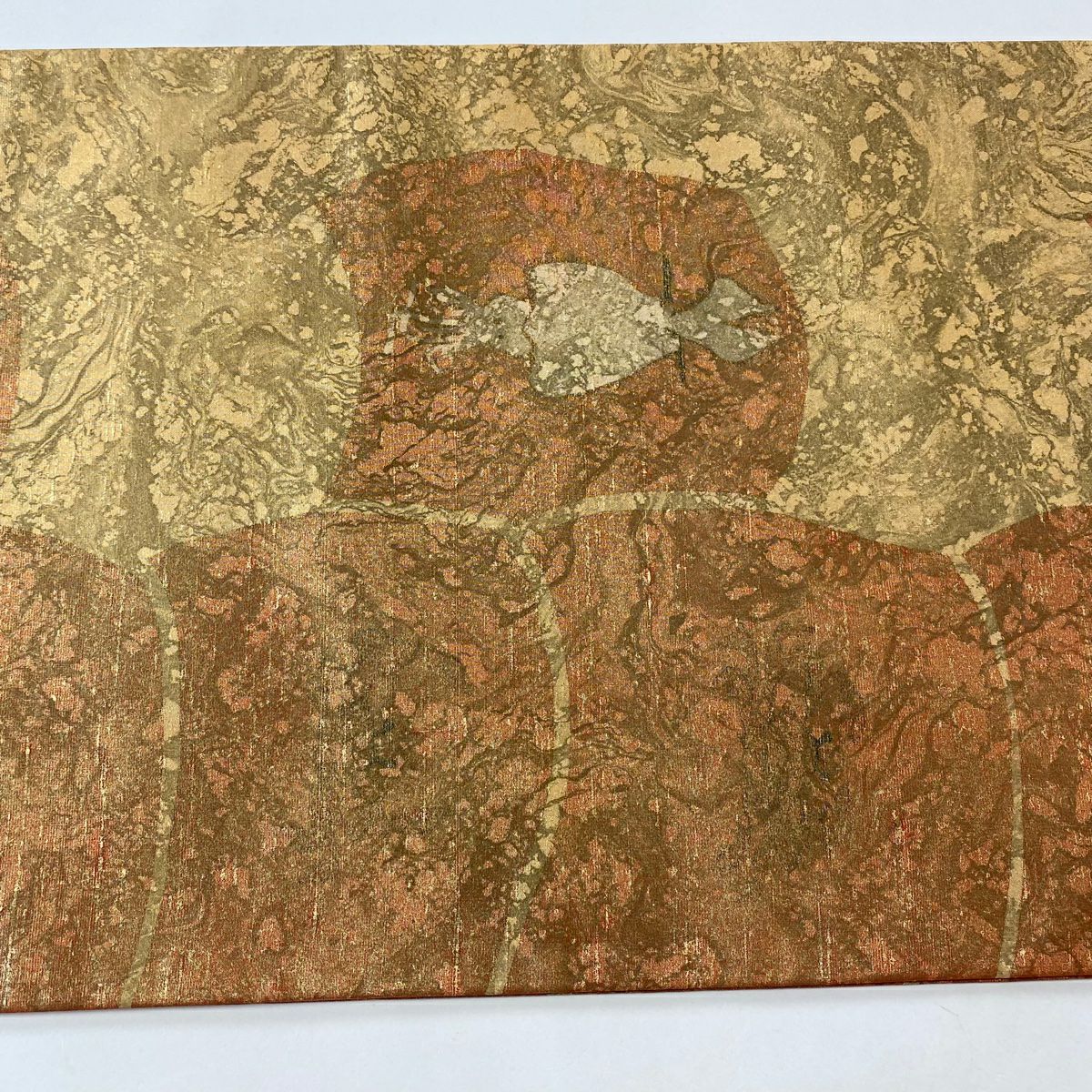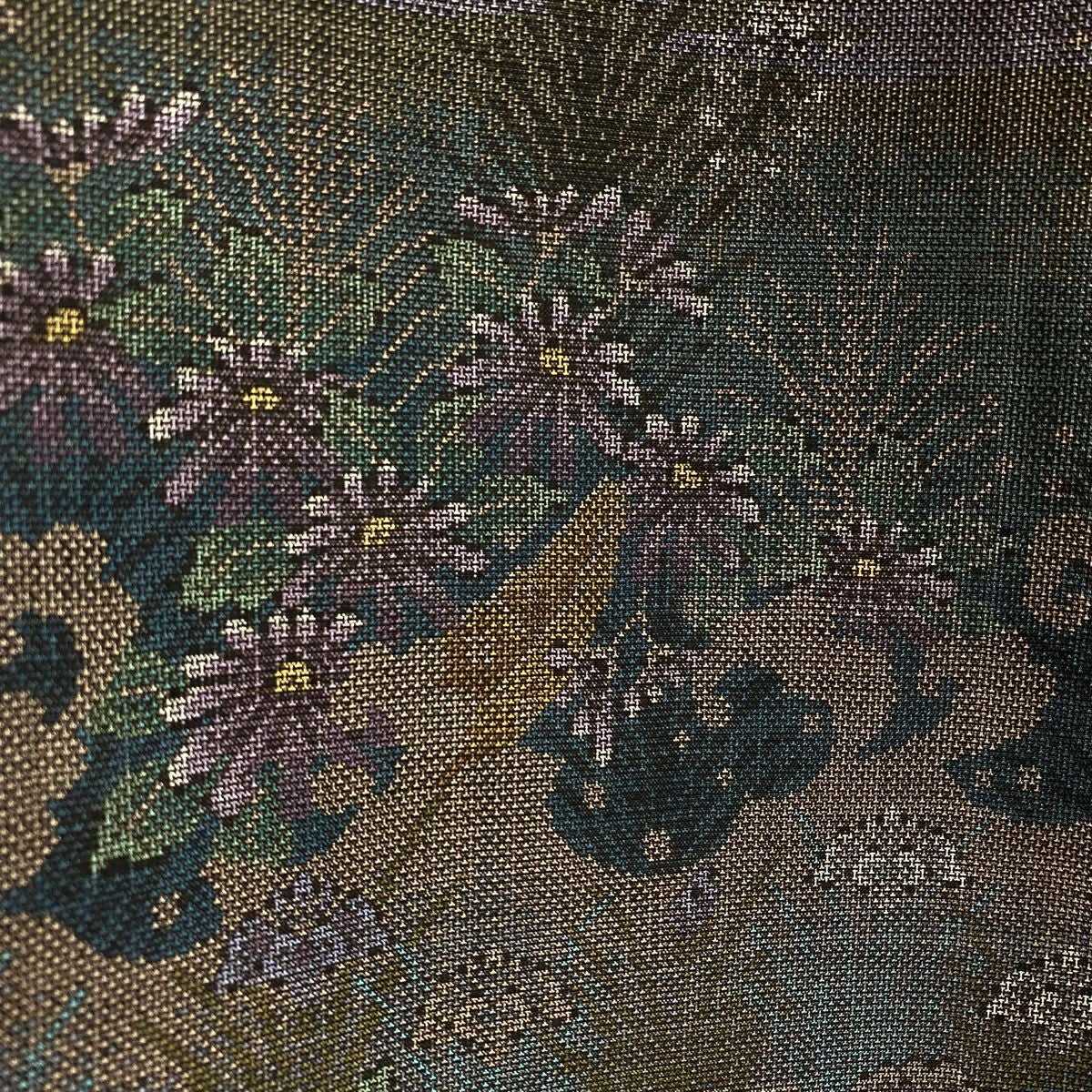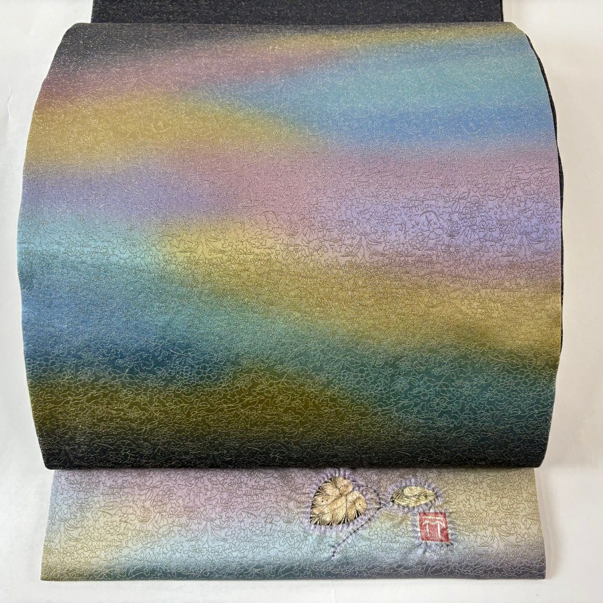 【美品】 袋帯 逸品 久保田一竹工房 落款あり 共箱付き 霞 草花 金通し ぼかし 灰紫 お太鼓柄 正絹
