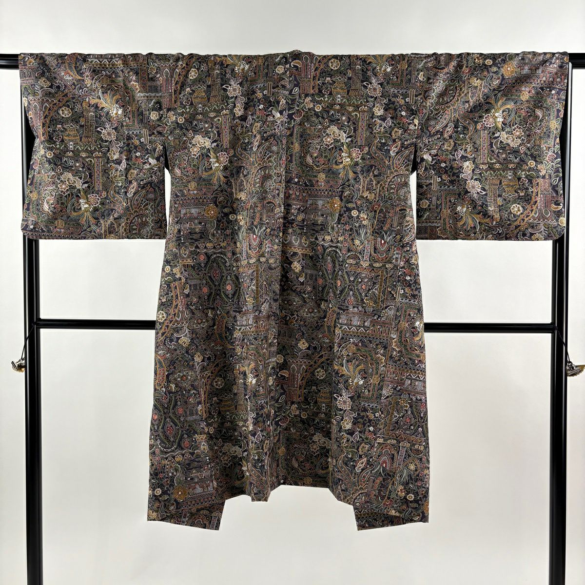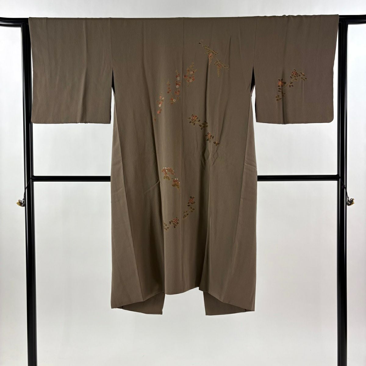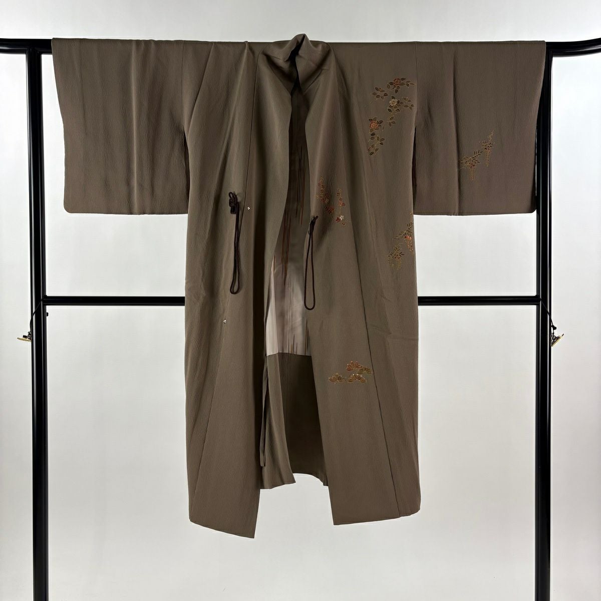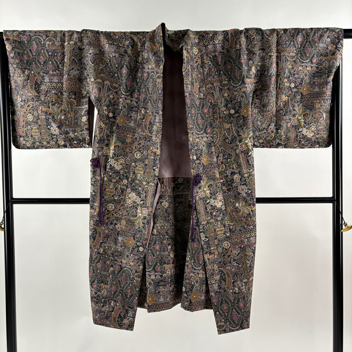 【美品】 道中着 身丈116cm 裄丈63.5cm S 和装コート 笠松 藤 金彩 刺繍 茶色 正絹 逸品