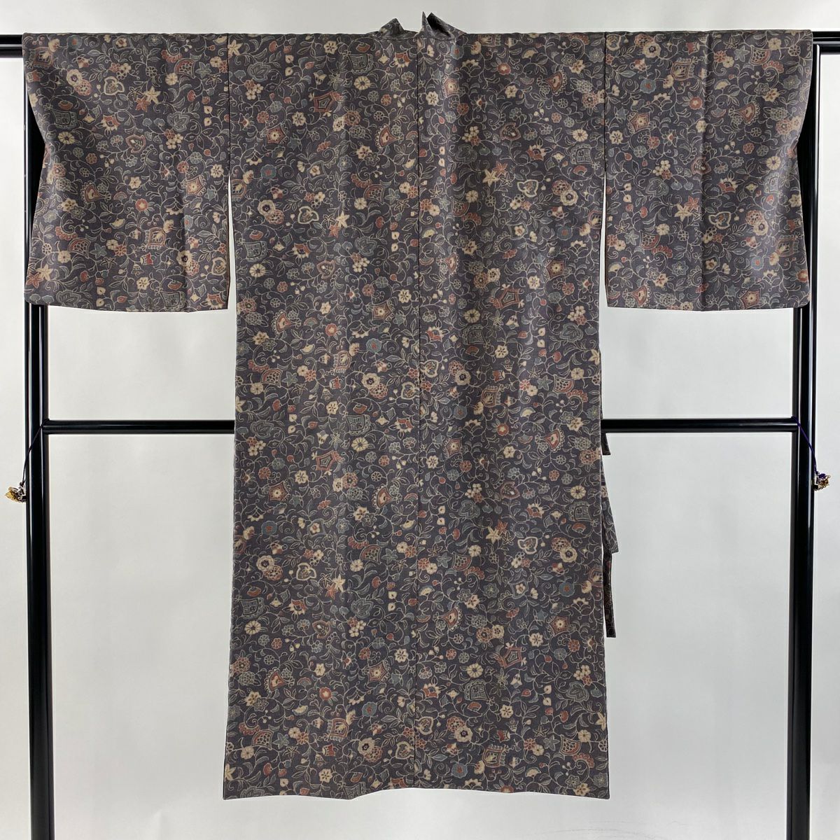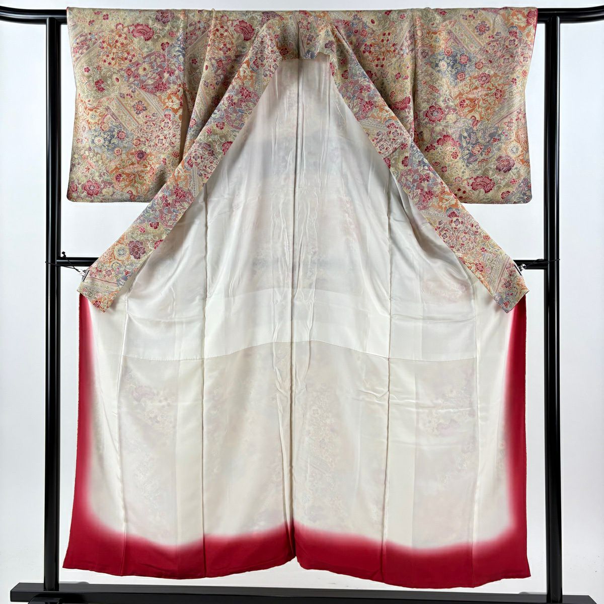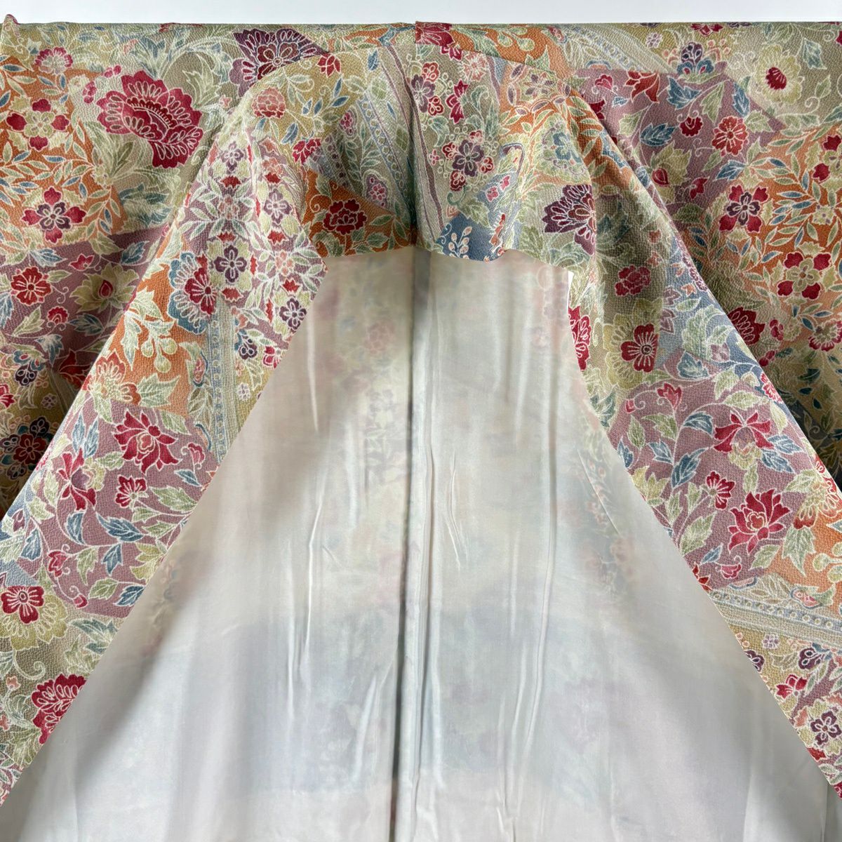小紋 身丈153cm 裄丈60.5cm S 袷 千總 花唐草 蝶 縮緬 ぼかし」 ベージュ 正絹 逸品