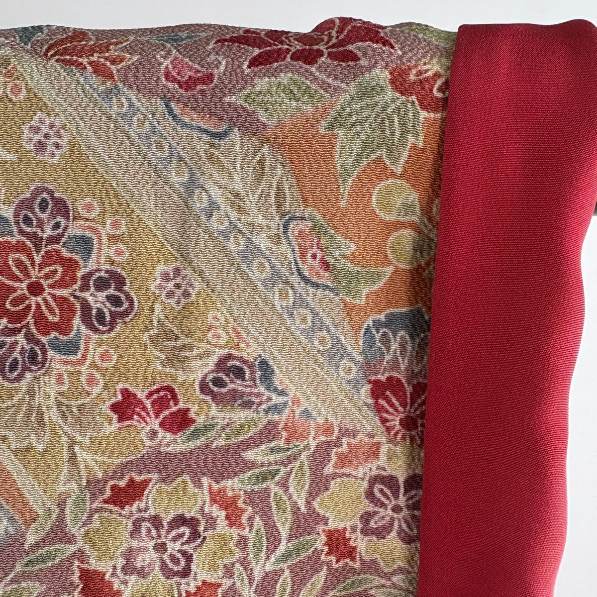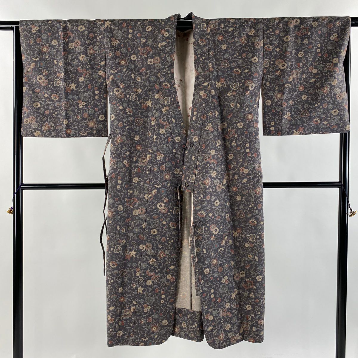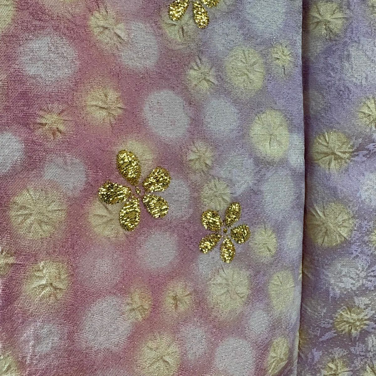 小紋 身丈153cm 裄丈60.5cm S 袷 千總 花唐草 蝶 縮緬 ぼかし」 ベージュ 正絹 逸品