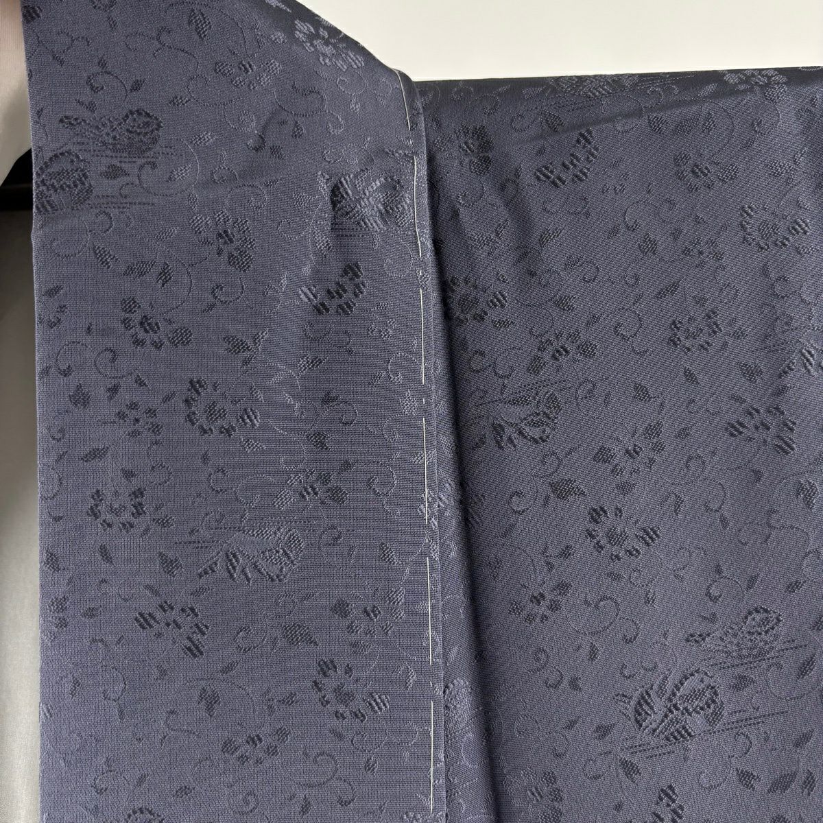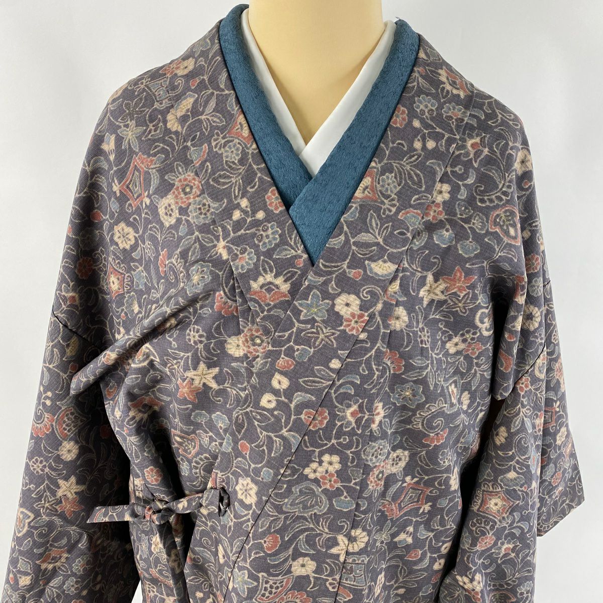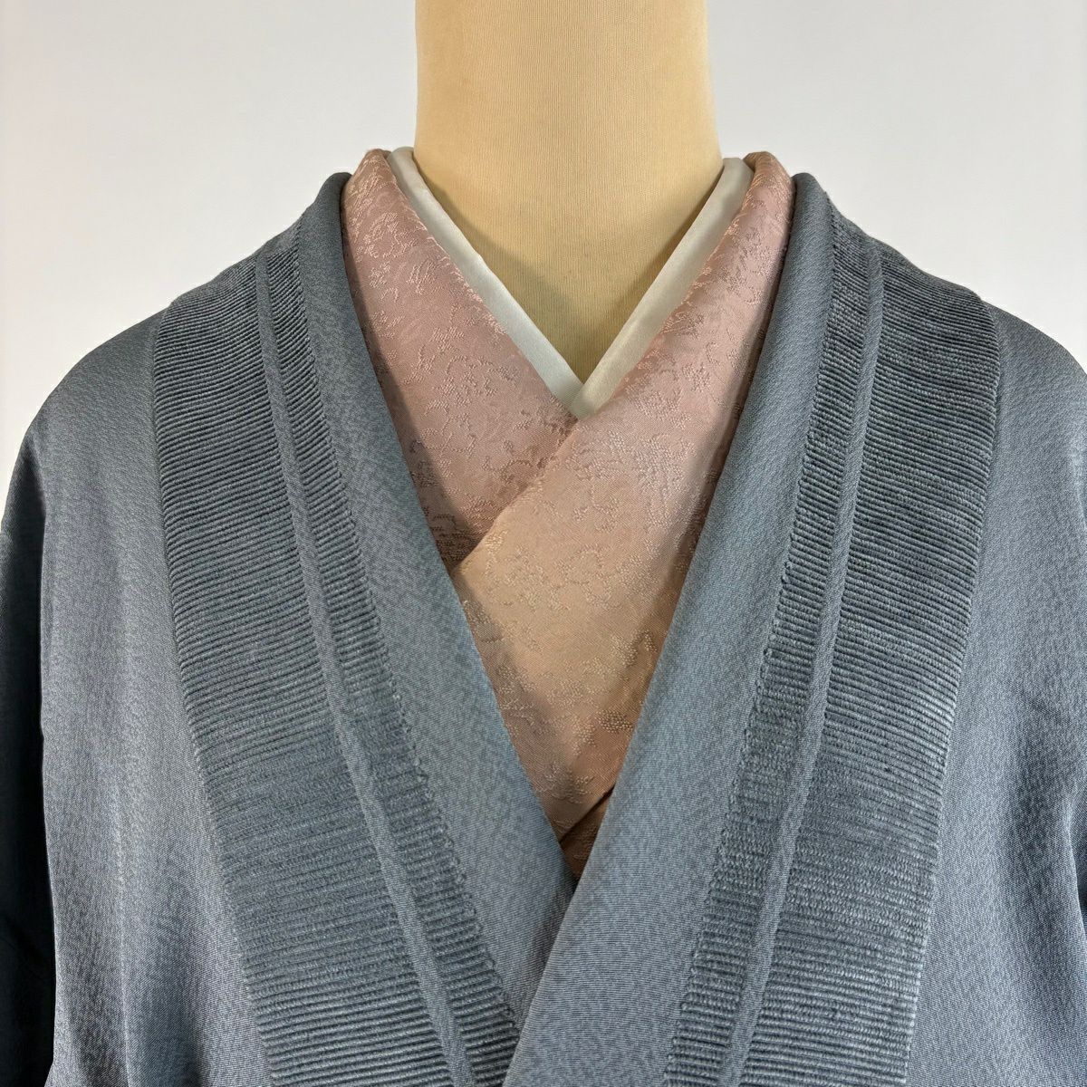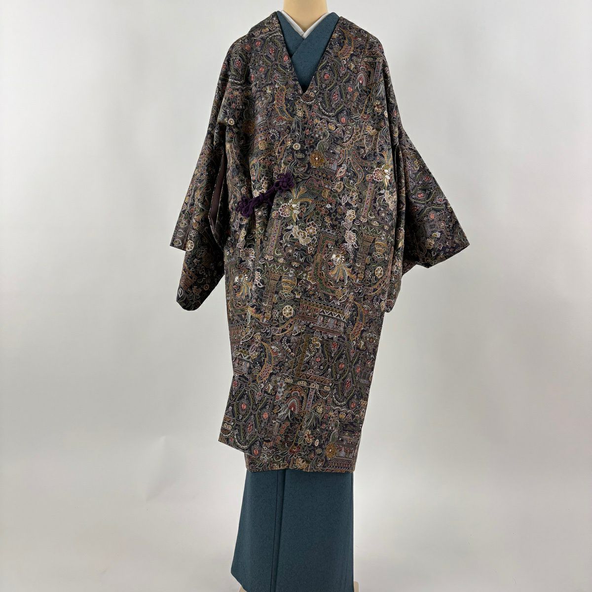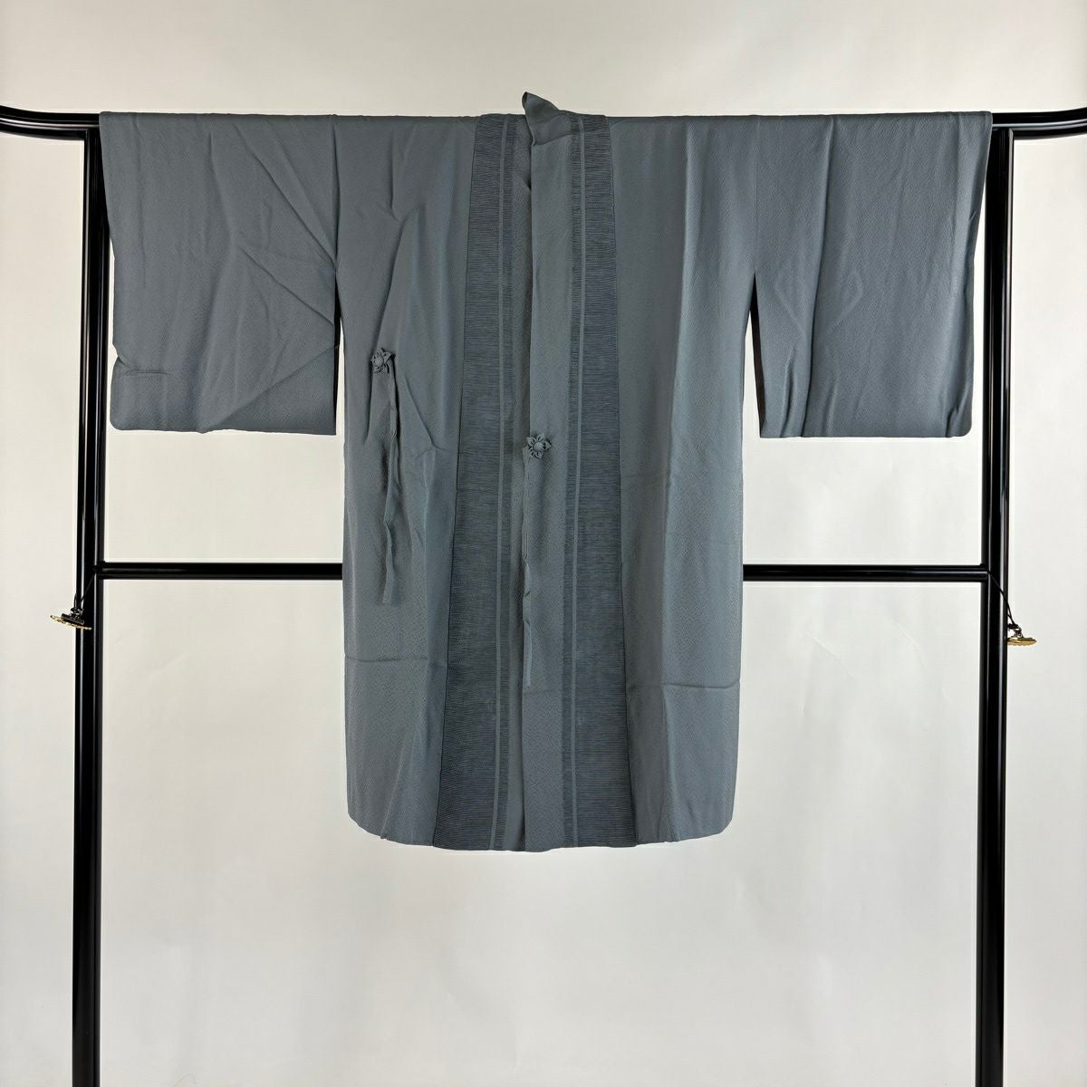【美品】 道中着 身丈99.5cm 裄丈65cm M 和装コート 地紋 縞 ビロード 青灰色 正絹 逸品