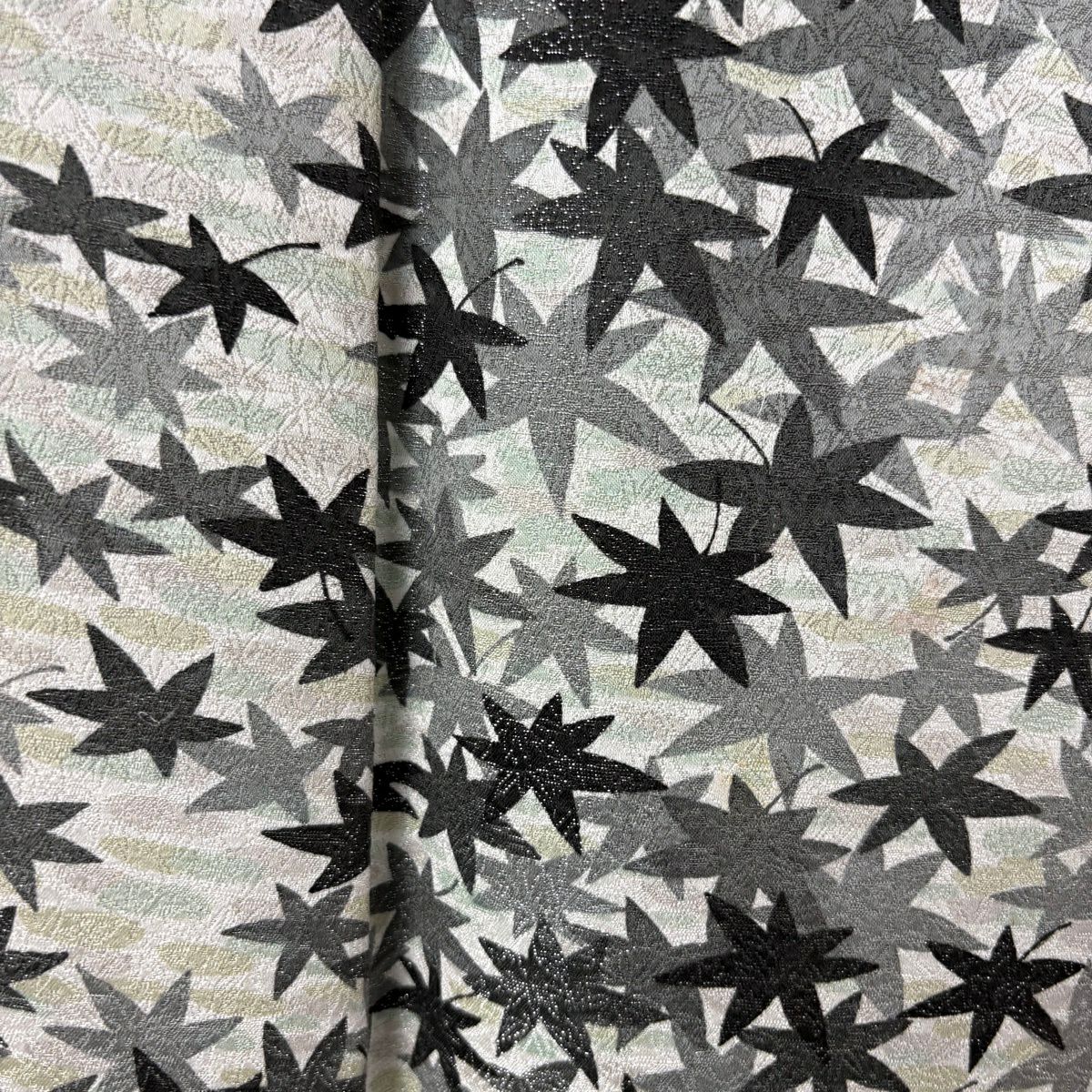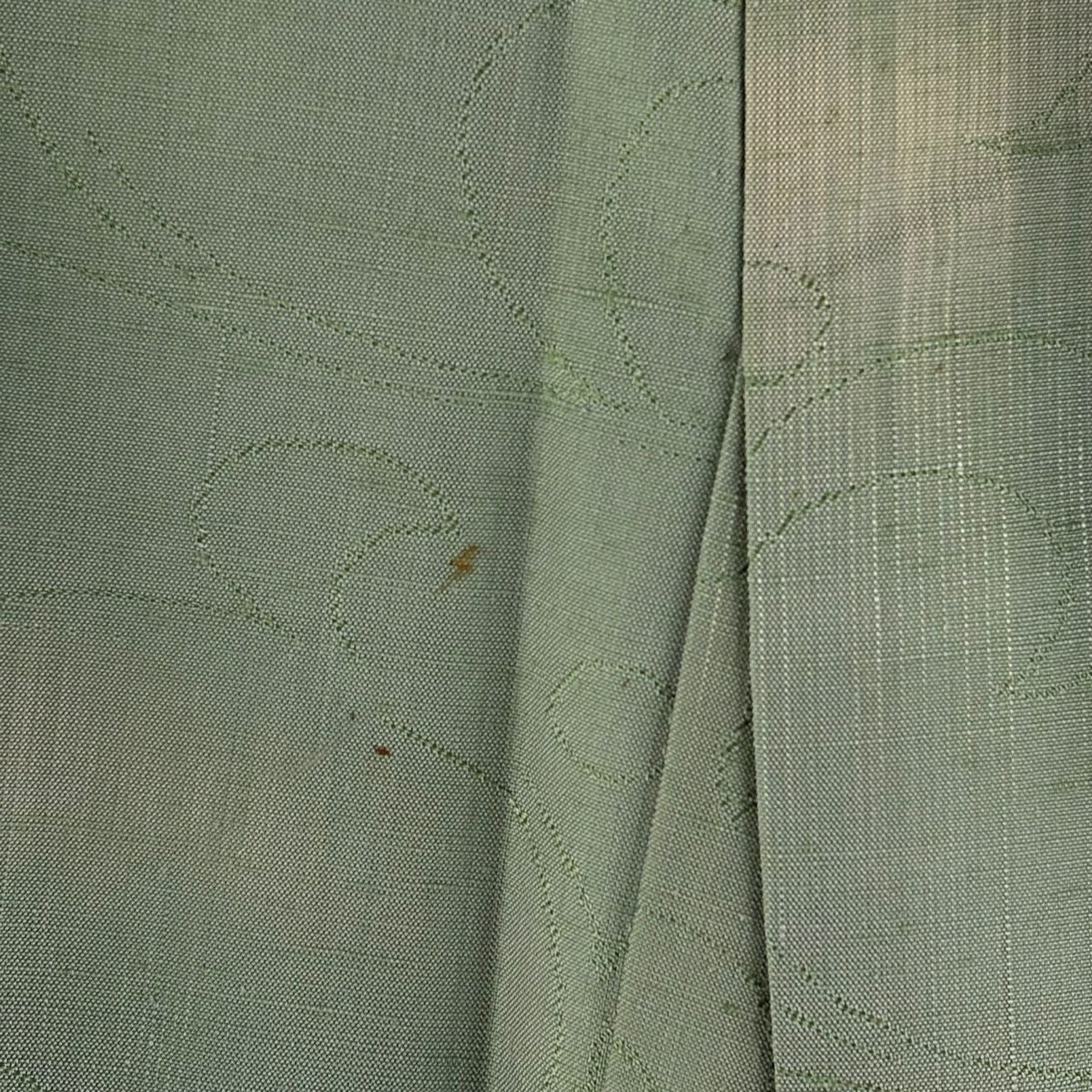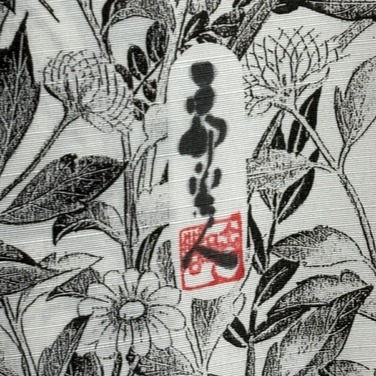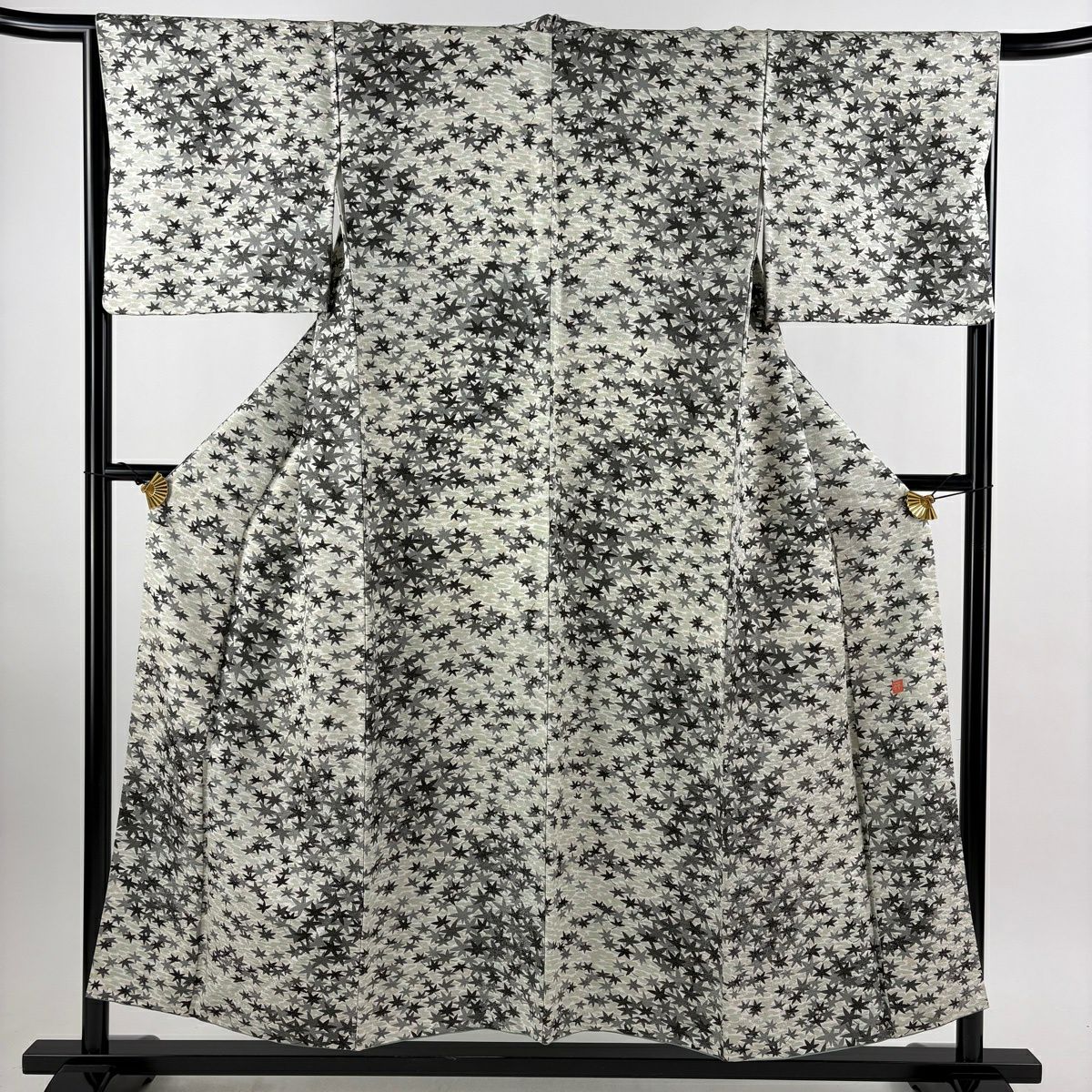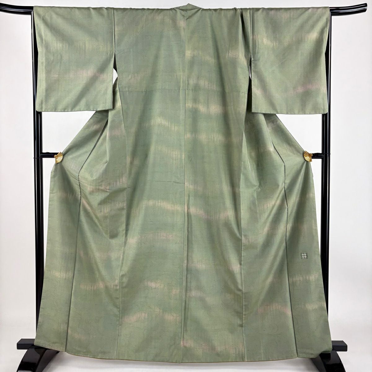 小紋 身丈150.5cm 裄丈66cm M 袷 久保田一竹工房 落款あり 楓 霞 銀通し 灰緑 正絹 逸品
