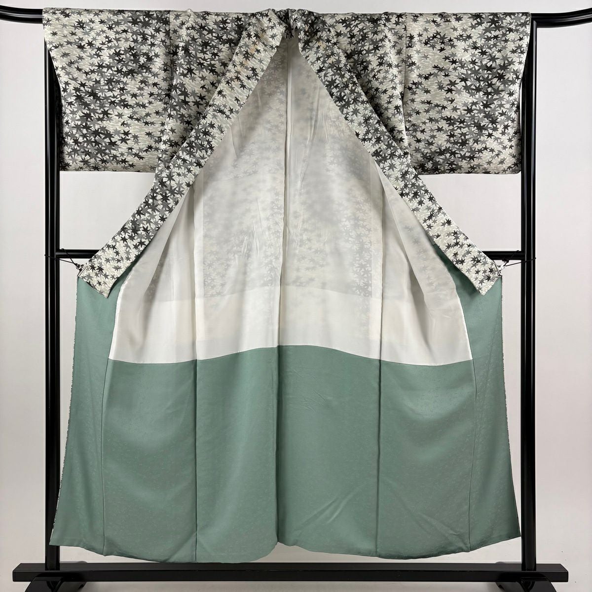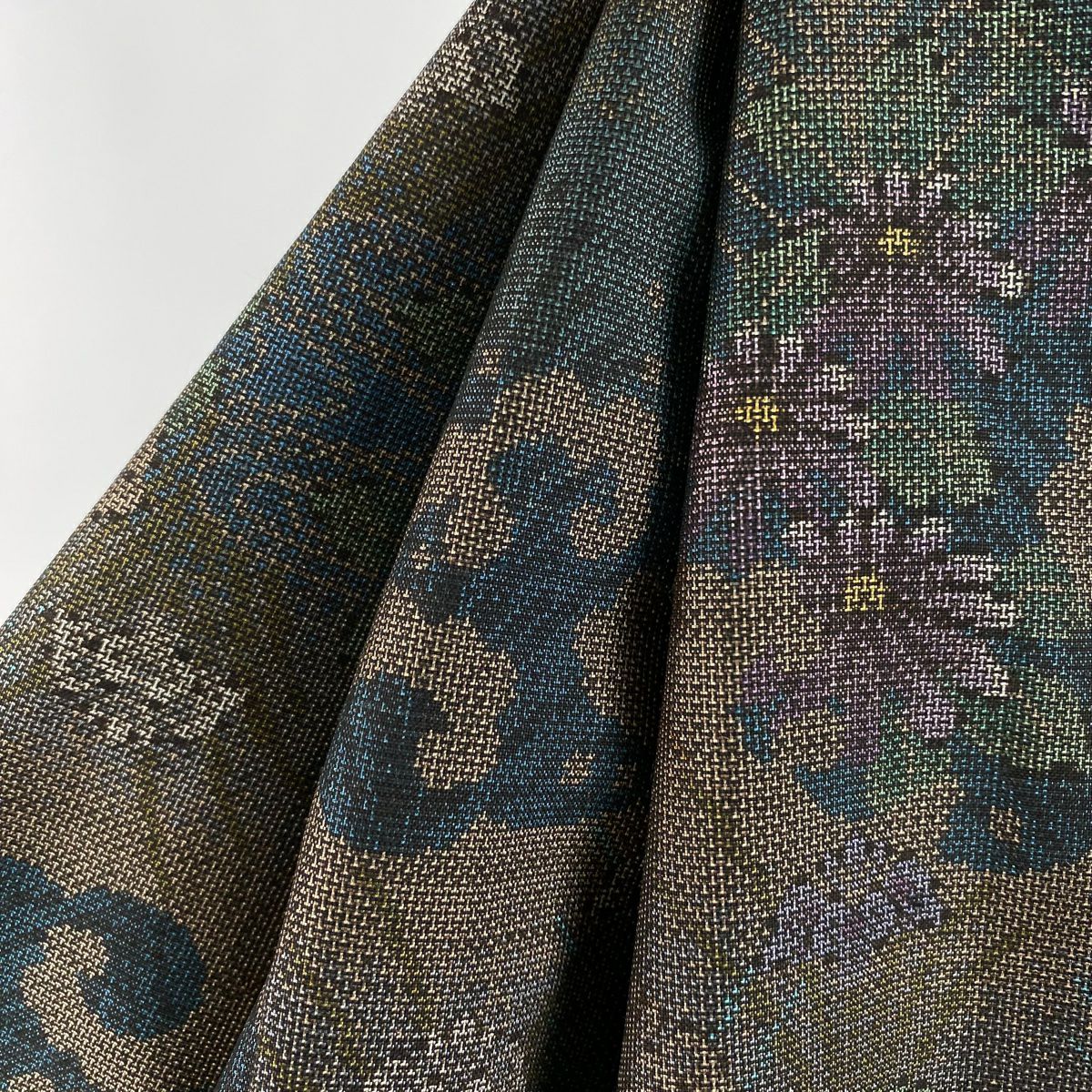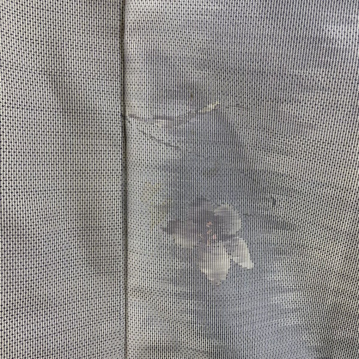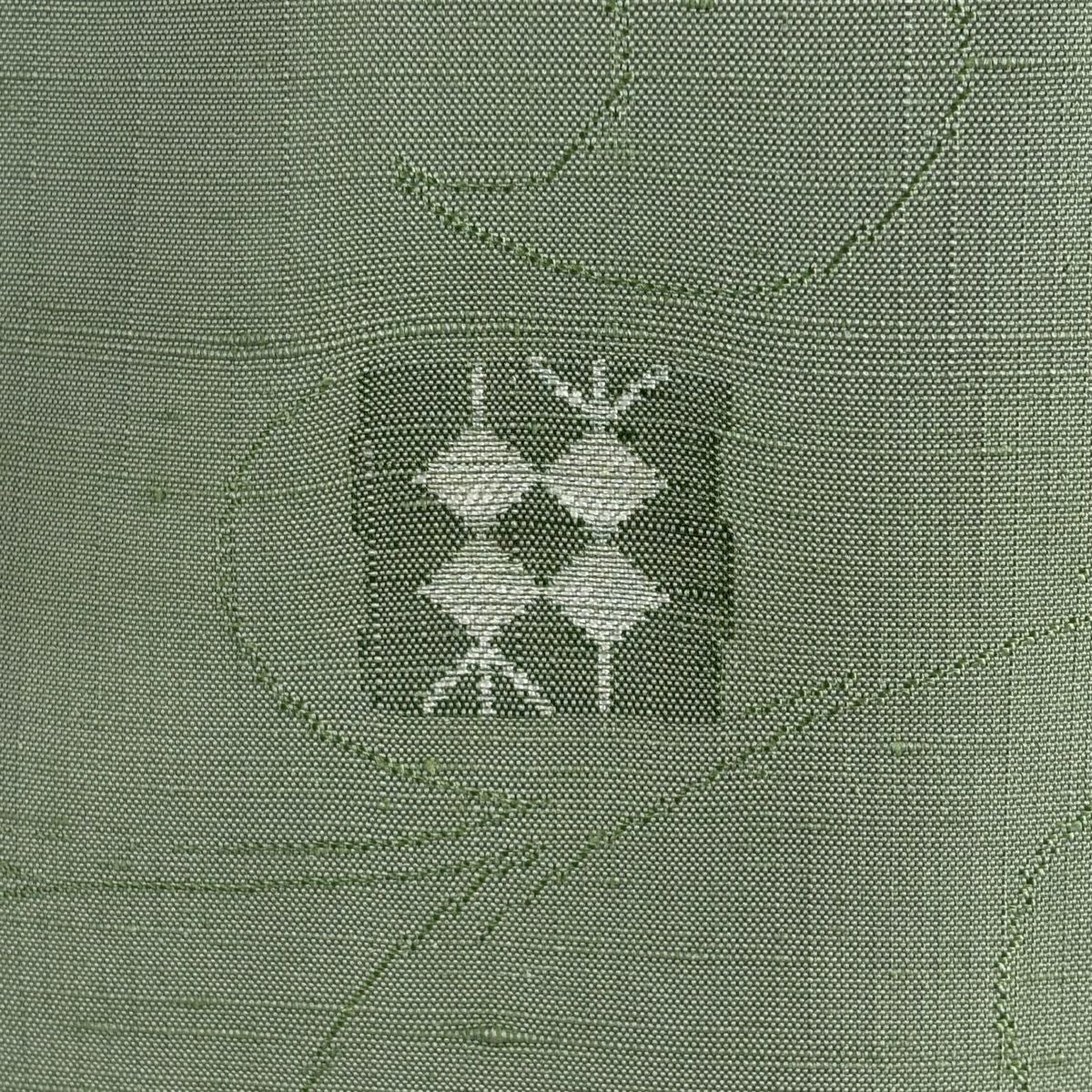 小紋 身丈150.5cm 裄丈66cm M 袷 久保田一竹工房 落款あり 楓 霞 銀通し 灰緑 正絹 逸品