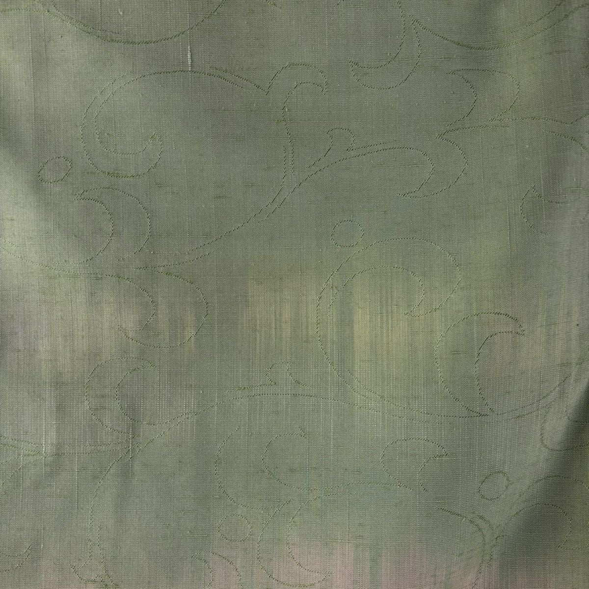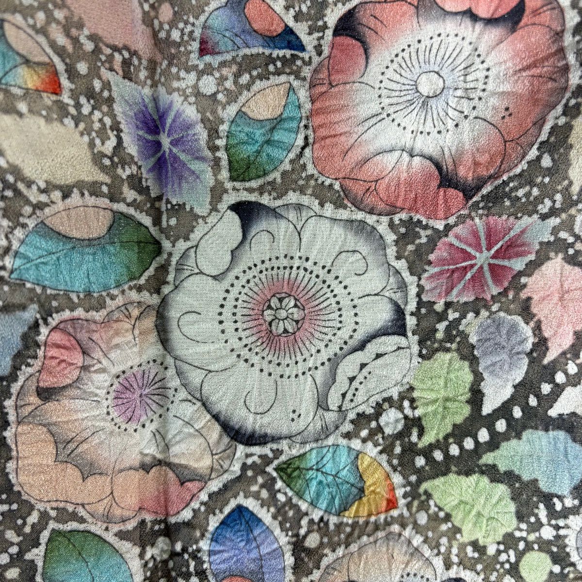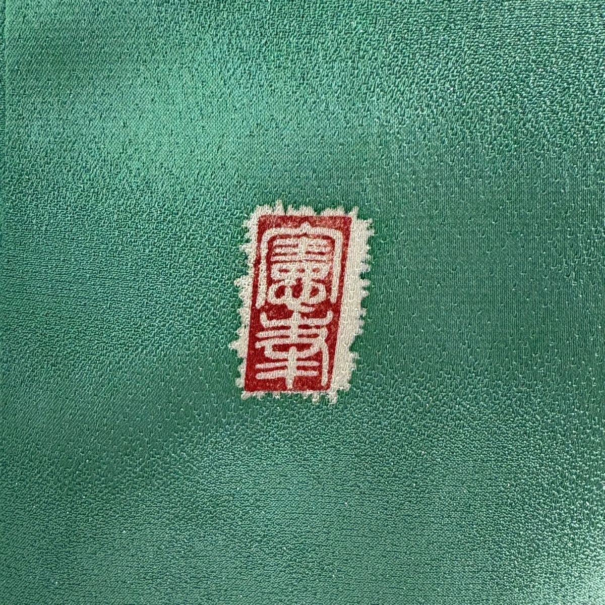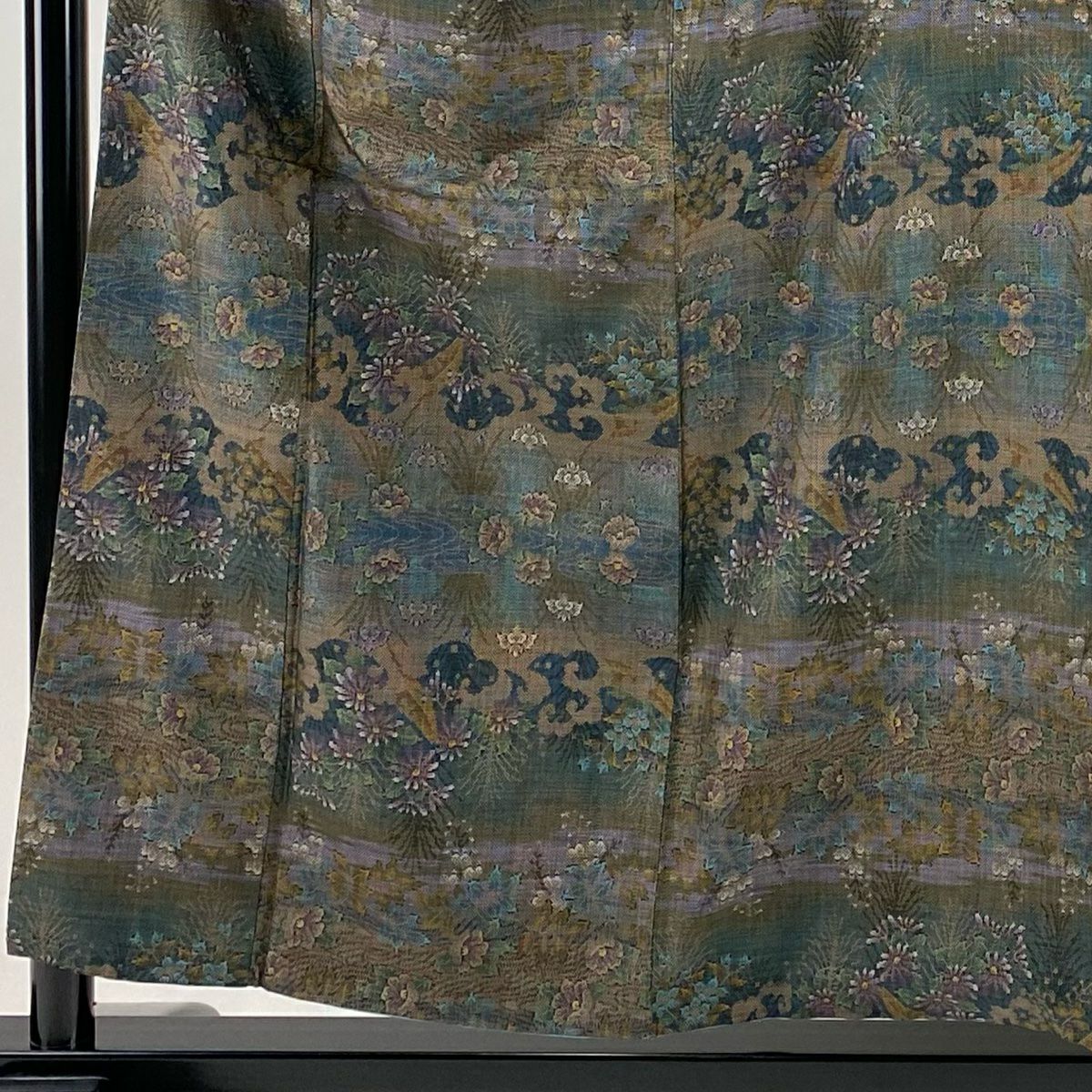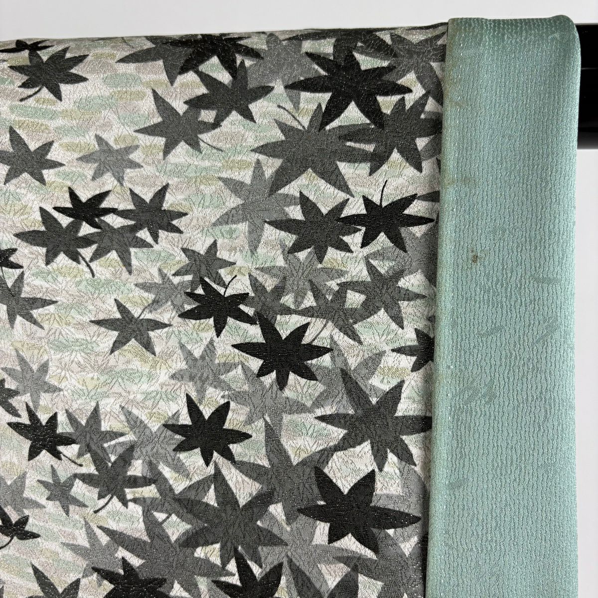 小紋 身丈150.5cm 裄丈66cm M 袷 久保田一竹工房 落款あり 楓 霞 銀通し 灰緑 正絹 逸品