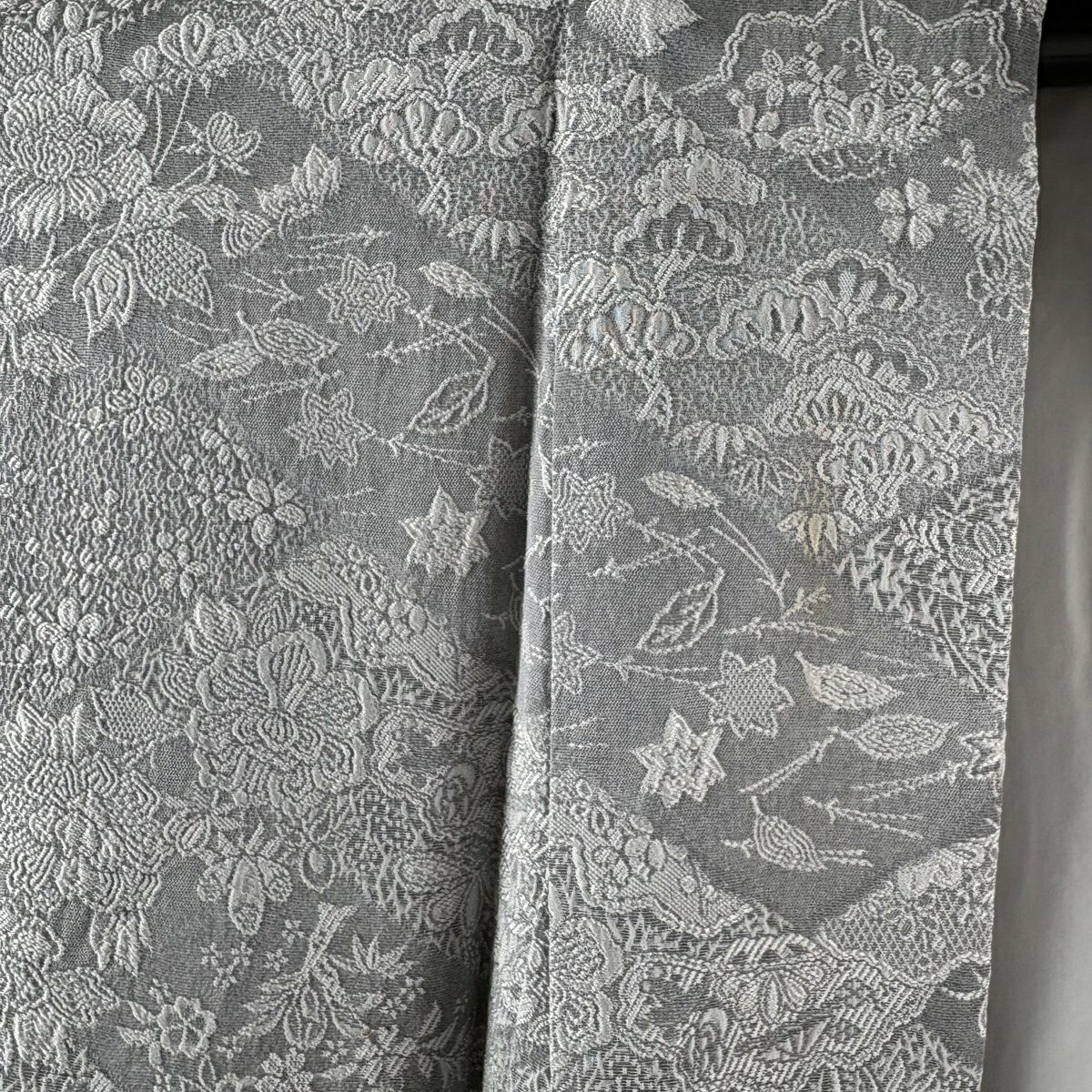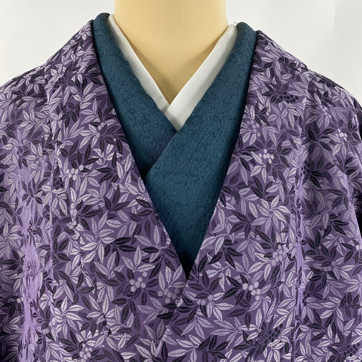 【美品】 付下げ 身丈172cm 裄丈70.5cm L 袷 葡萄唐草 地紋 銀通し 刺繍 薄紫 正絹 逸品