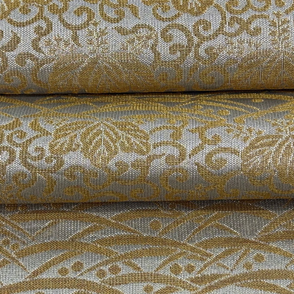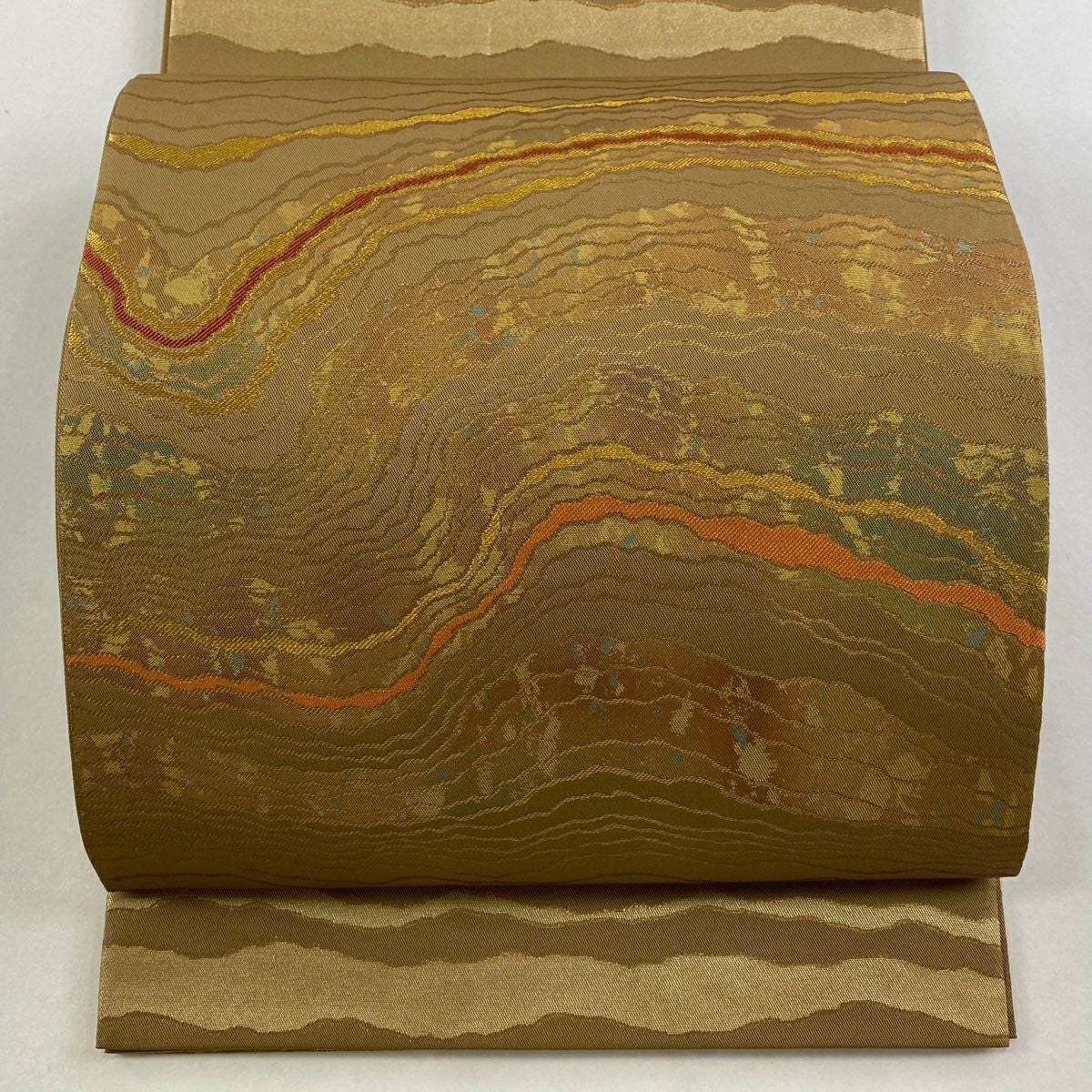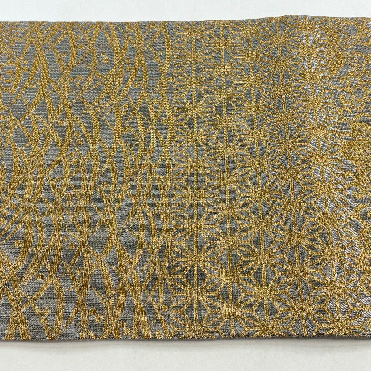 袋帯 逸品 桝屋高尾 落款あり 関西仕立て 共箱有 七宝文 段縞模様 金銀糸 ねん金綴錦 金色 全通 正絹