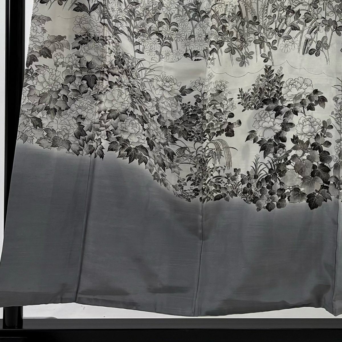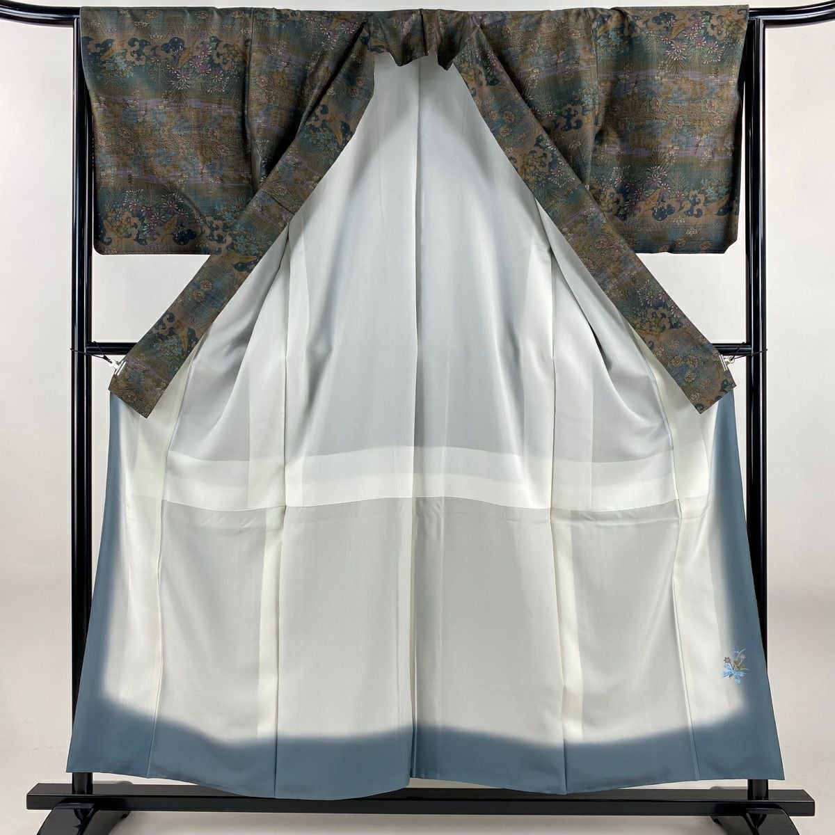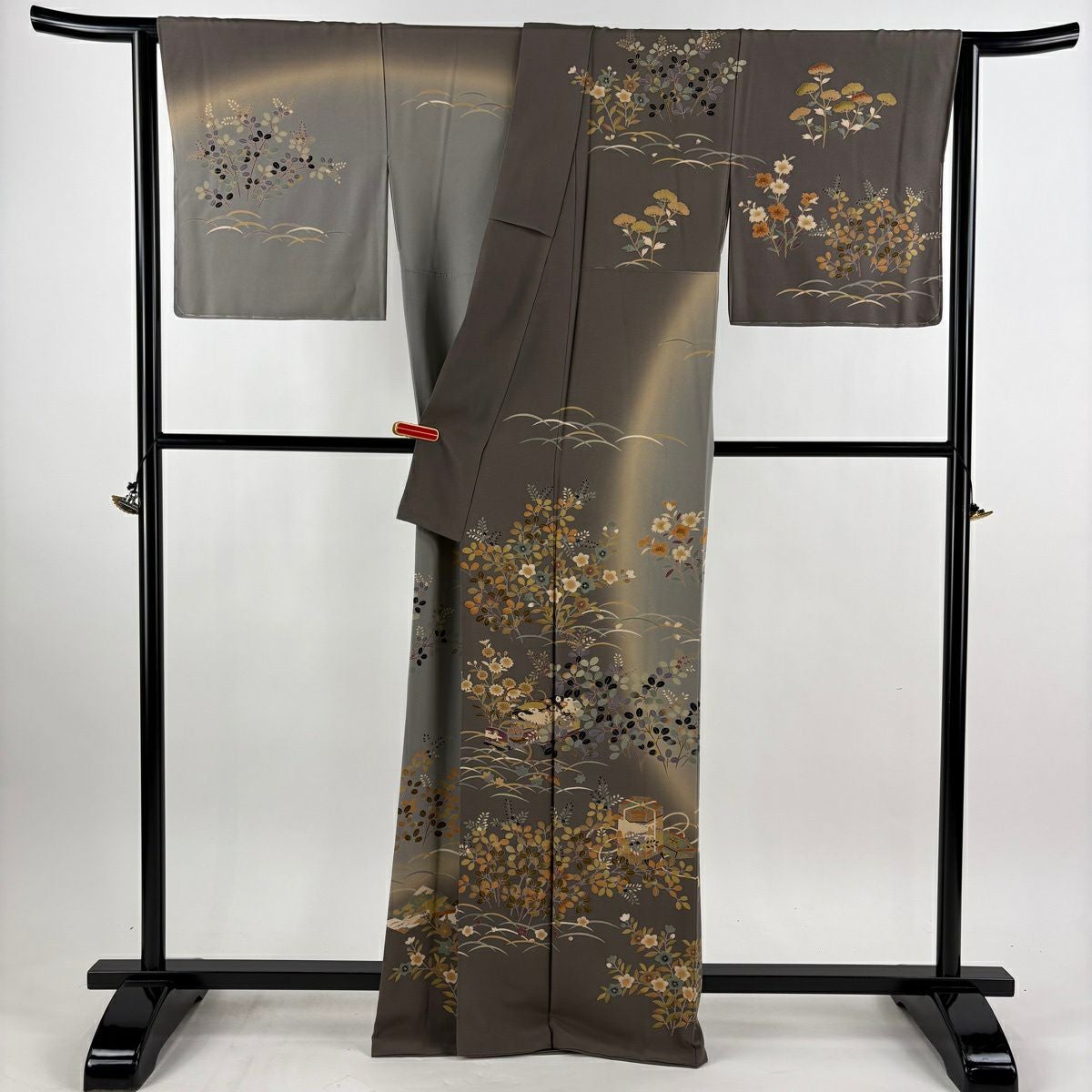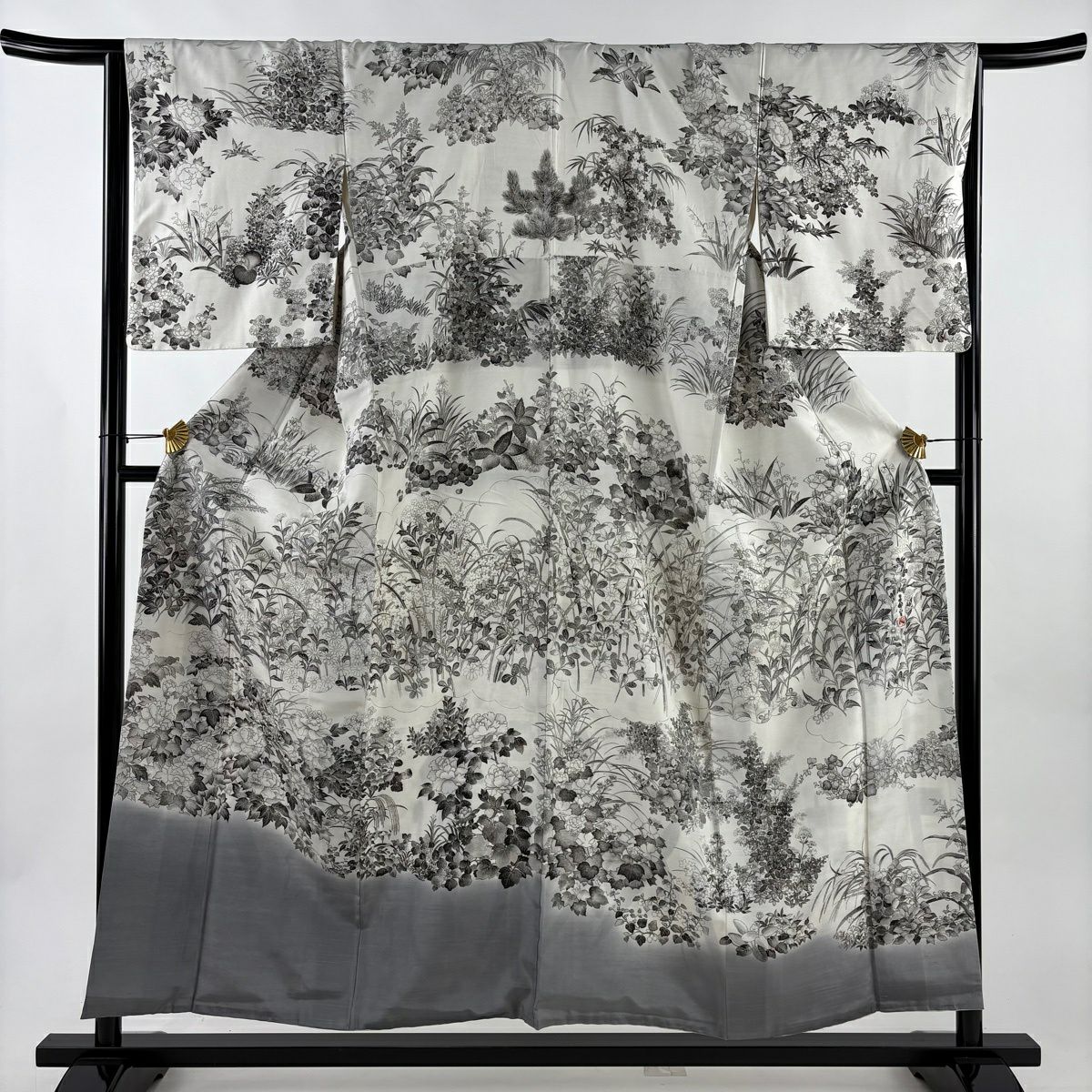 訪問着 身丈164cm 裄丈67.5cm L 袷 田村哲彦 落款あり 文箱 秋草 ぼかし 灰茶 正絹 逸品