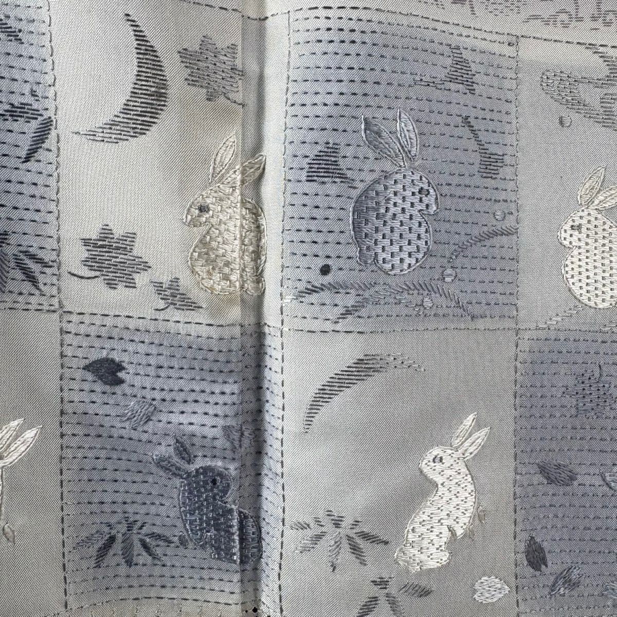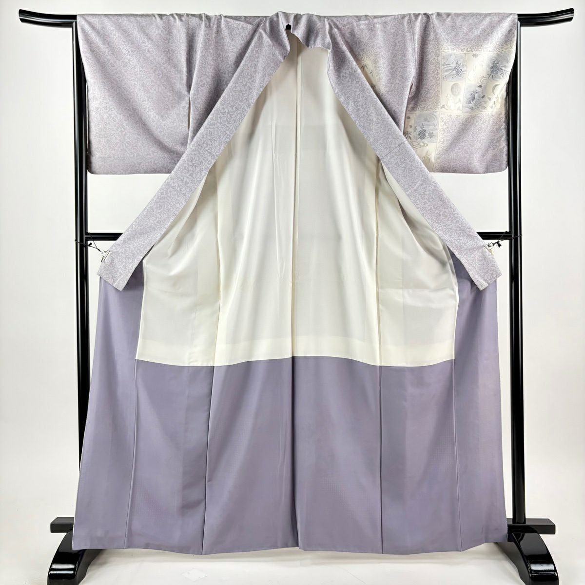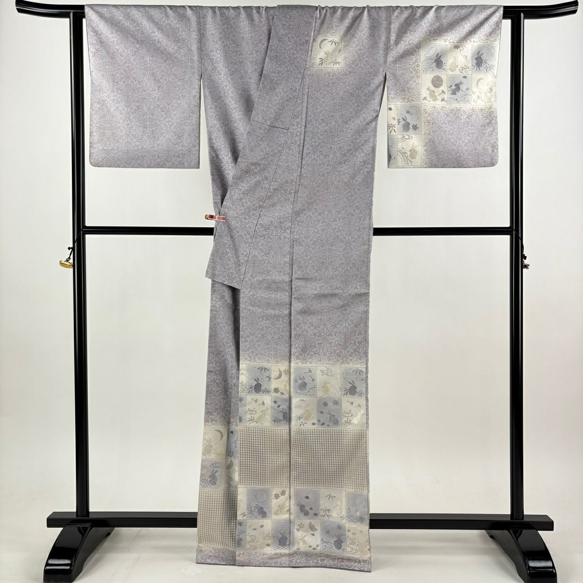付下げ 身丈166cm 裄丈64.5cm M 袷 紬地 うさぎ 変わり市松 刺繍 ぼかし 薄紫 正絹 逸品