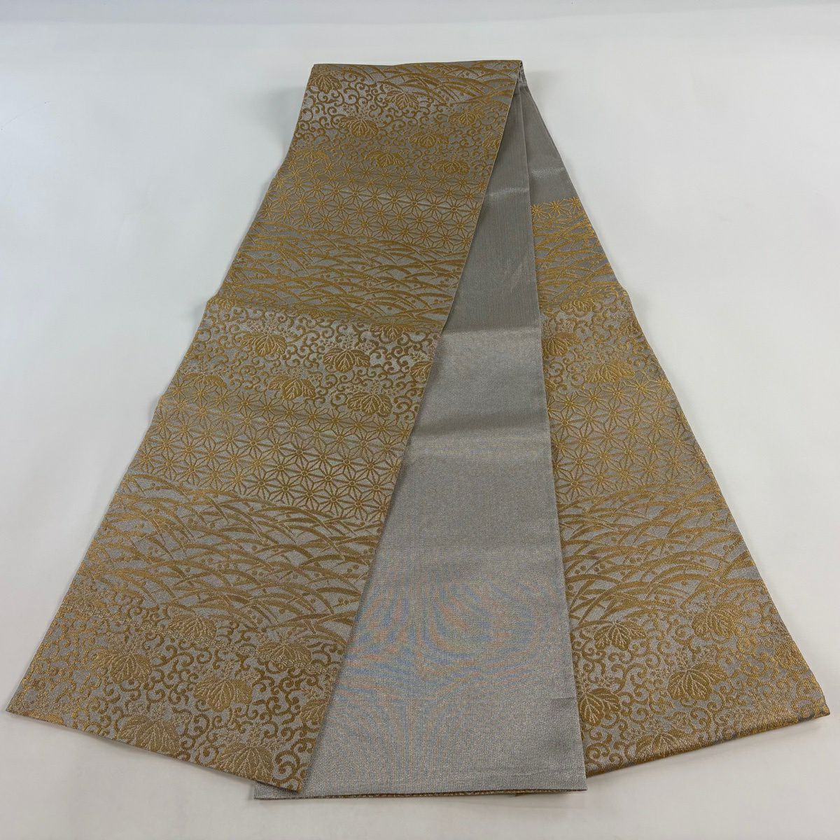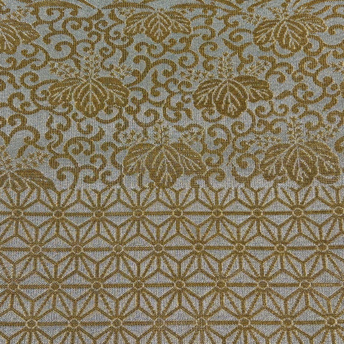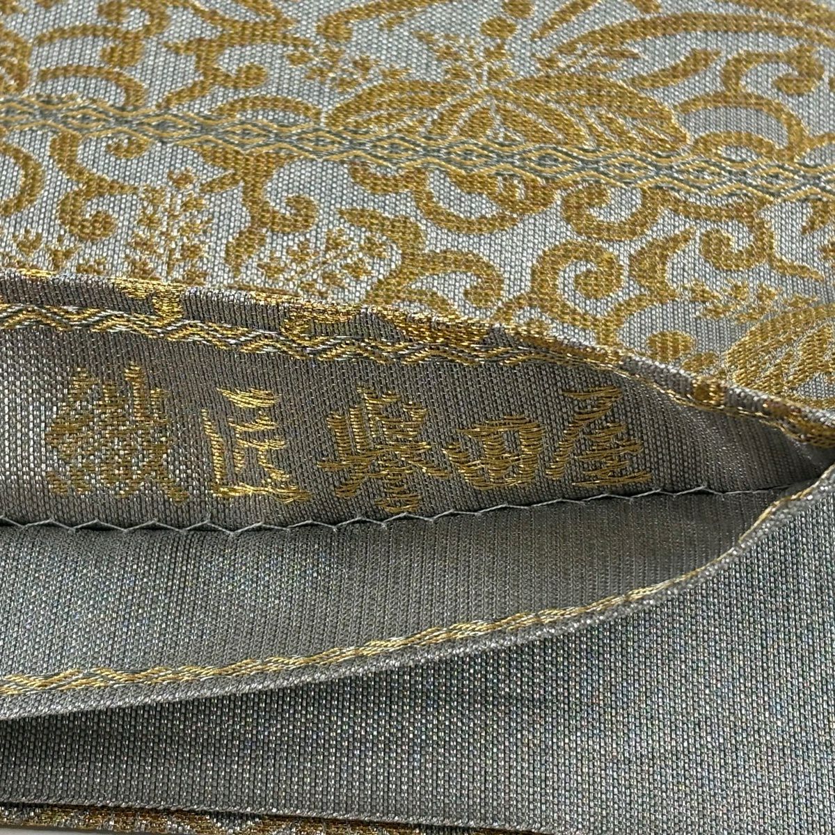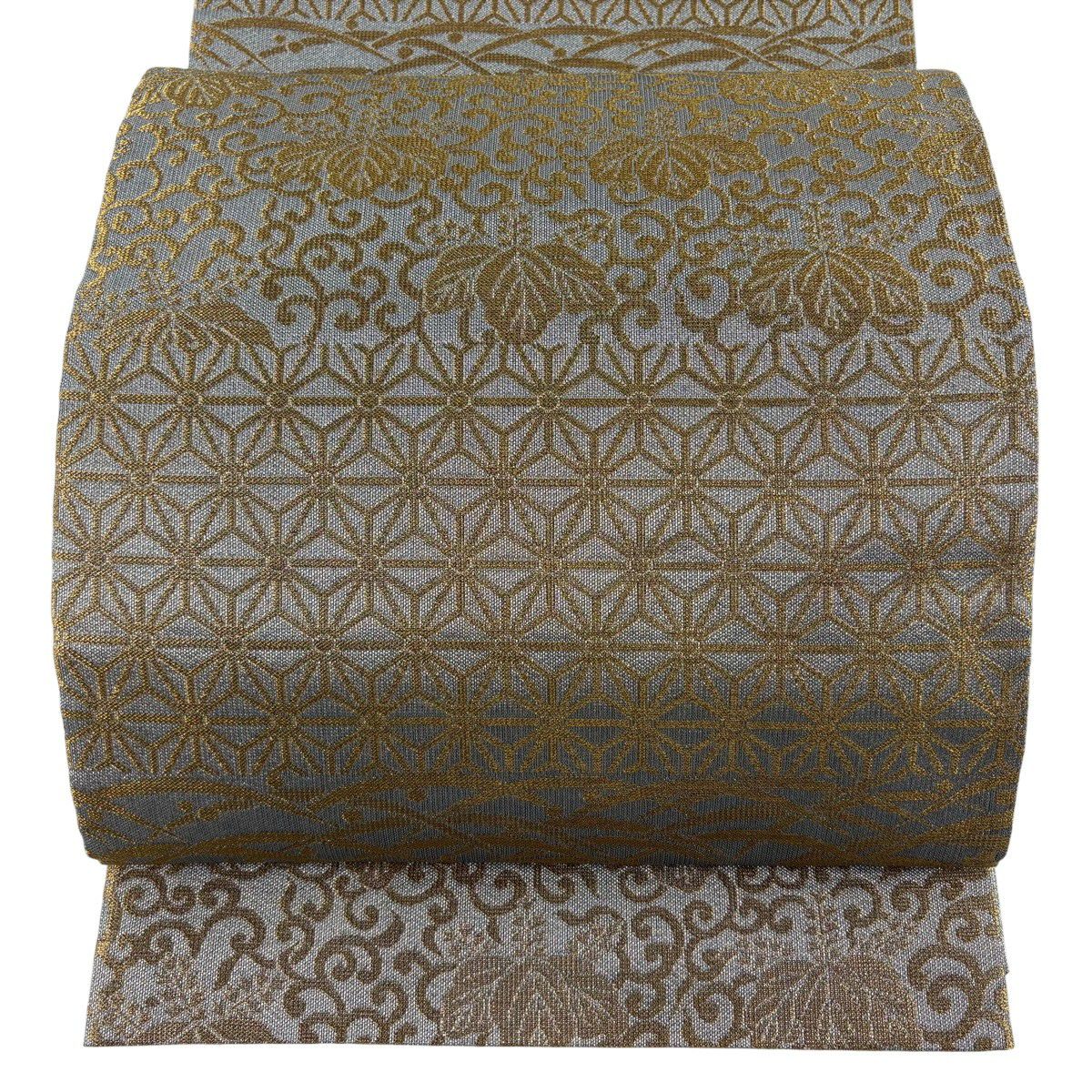 【美品】 袋帯 逸品 誉田屋源兵衛 落款あり 純白金 東照宮 麻の葉 露芝 金銀糸 箔 銀色 六通 正絹