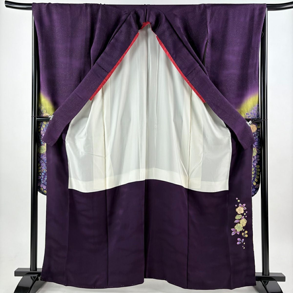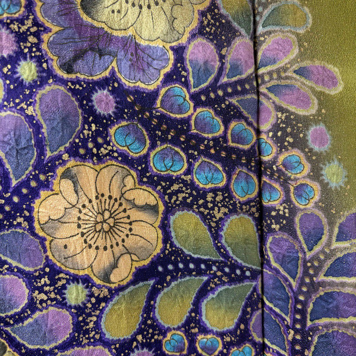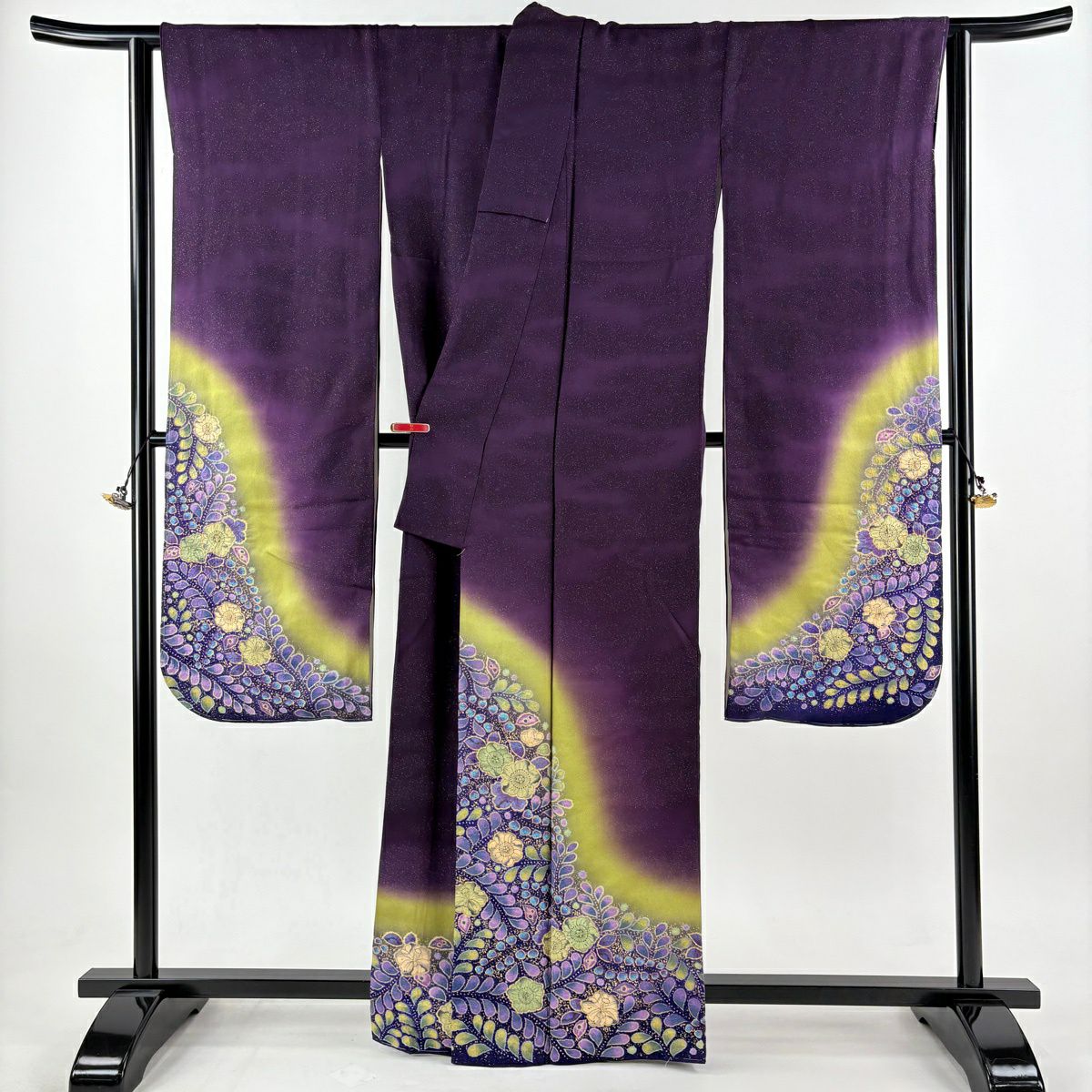 振袖 身丈163.5cm 裄丈68cm L 袷 翠山工房 落款あり 辻が花 銀通し 金彩 濃紫 正絹 逸品