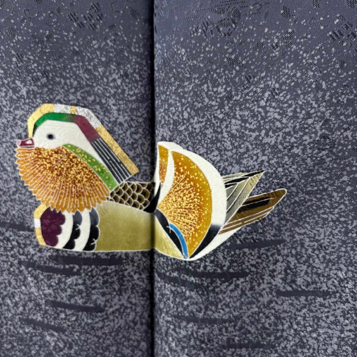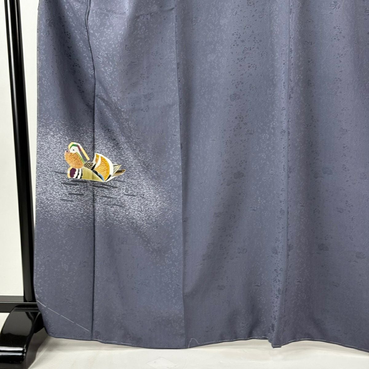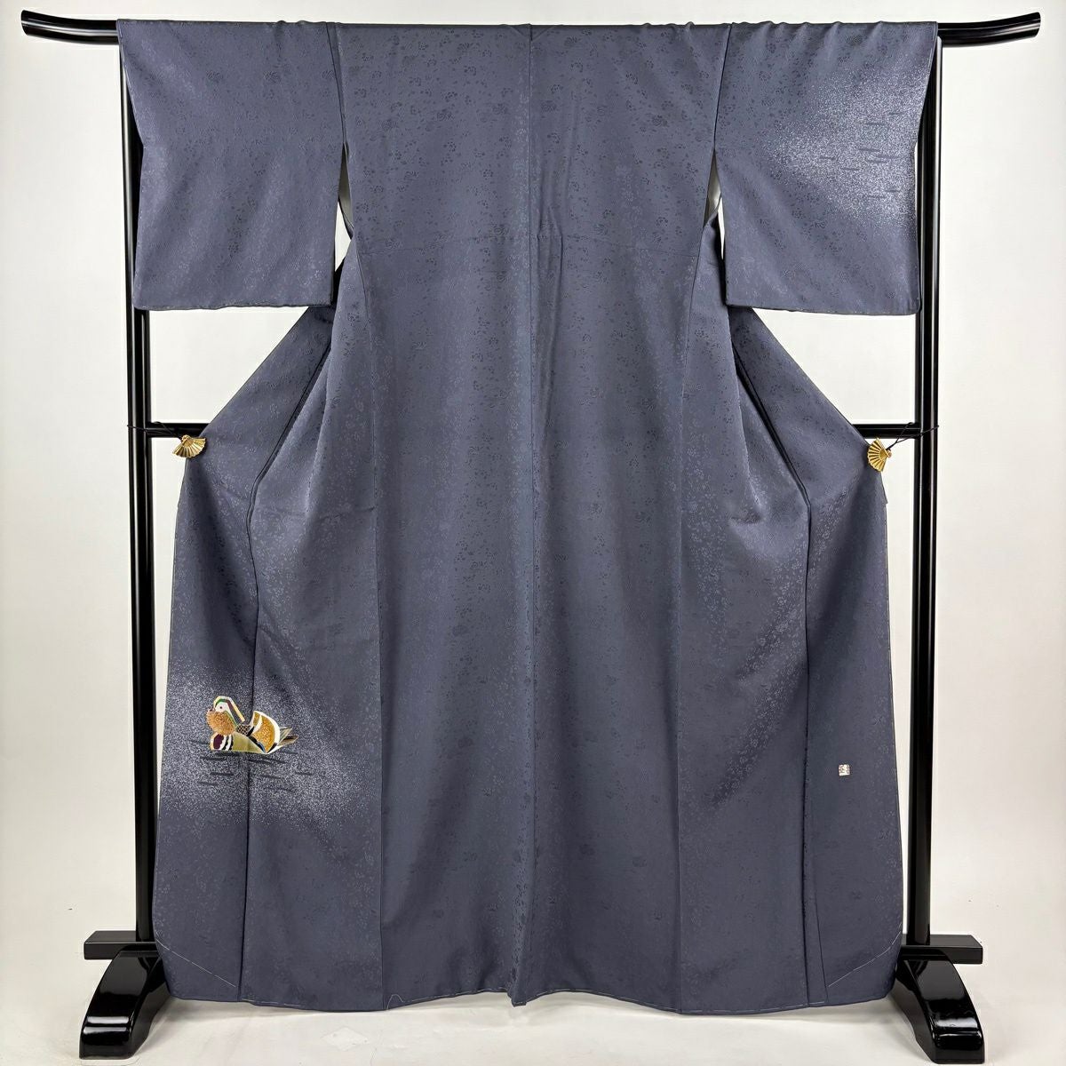 付下げ 身丈165cm 裄丈65.5cm M 袷 羽田登喜 落款あり 鴛鴦 水面 金銀彩 青灰色 正絹 逸品