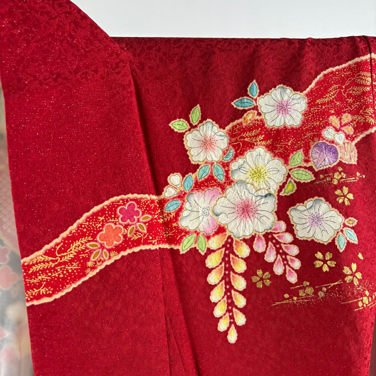 振袖 身丈158.5cm 裄丈68.5cm L 袷 翠山工房 落款あり 辻が花 霞 銀通し 金彩 赤 正絹 逸品