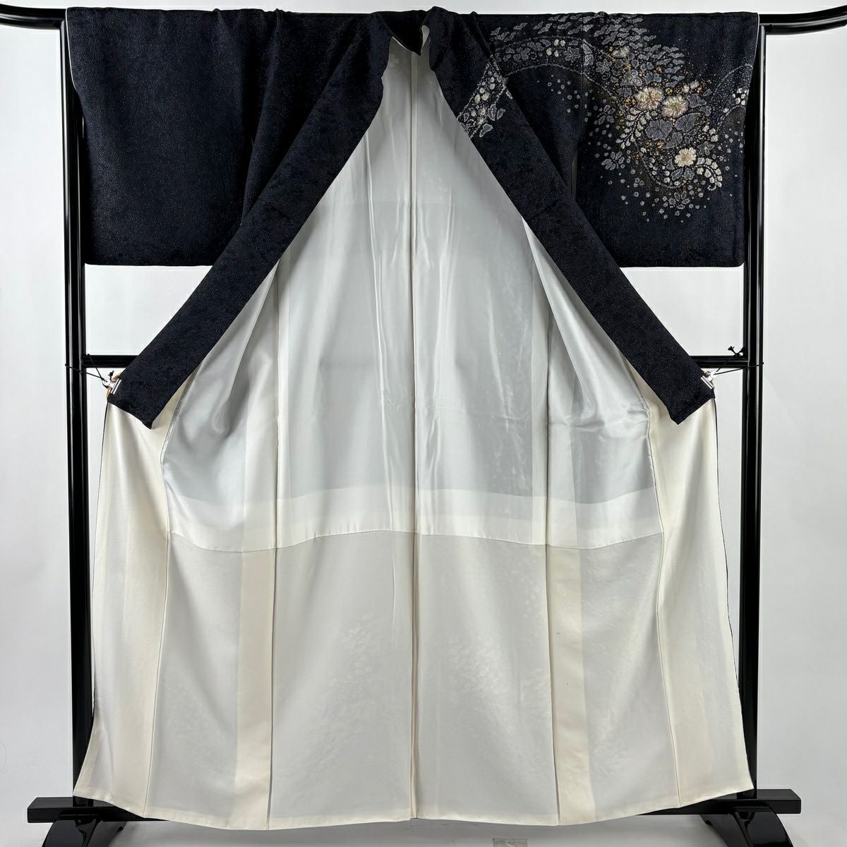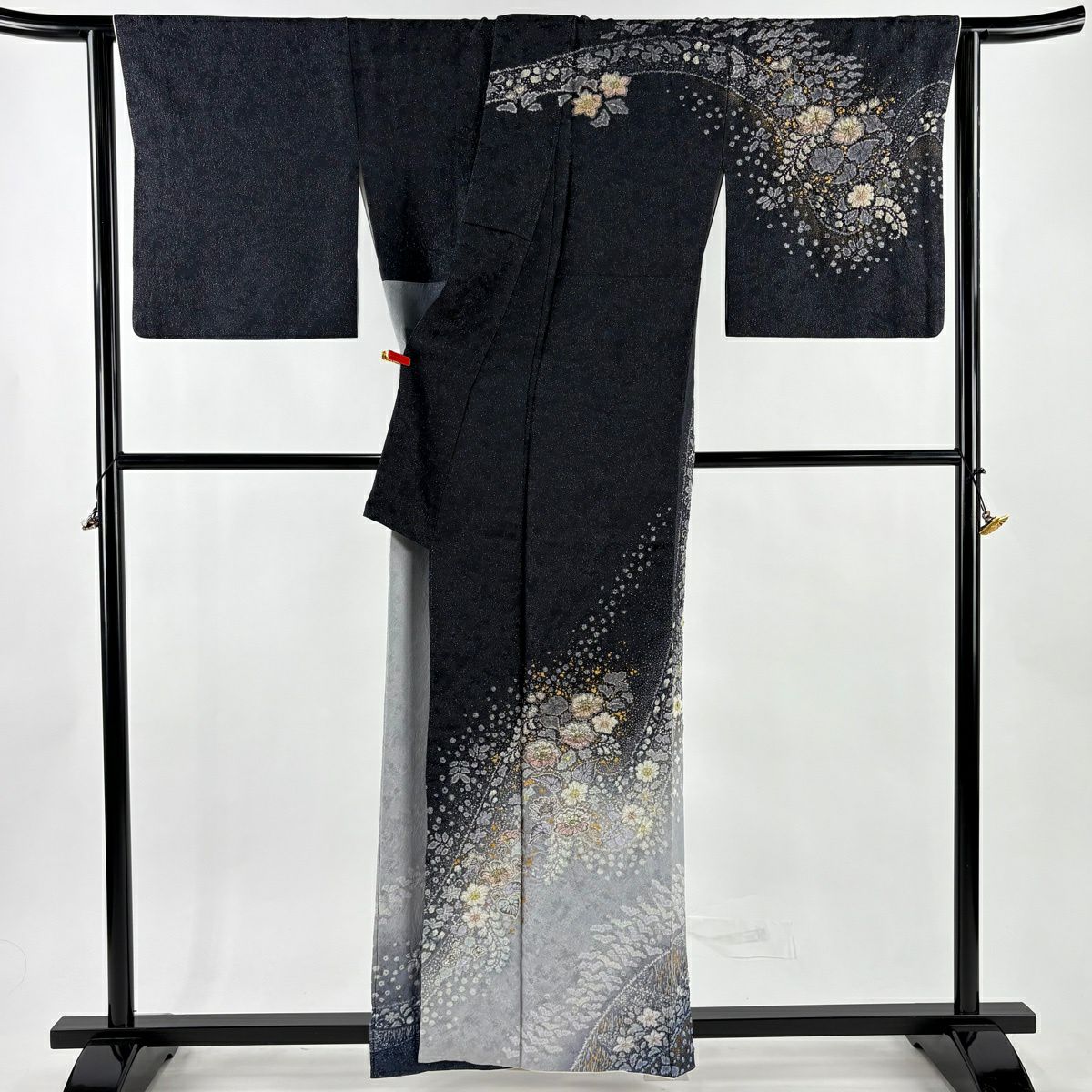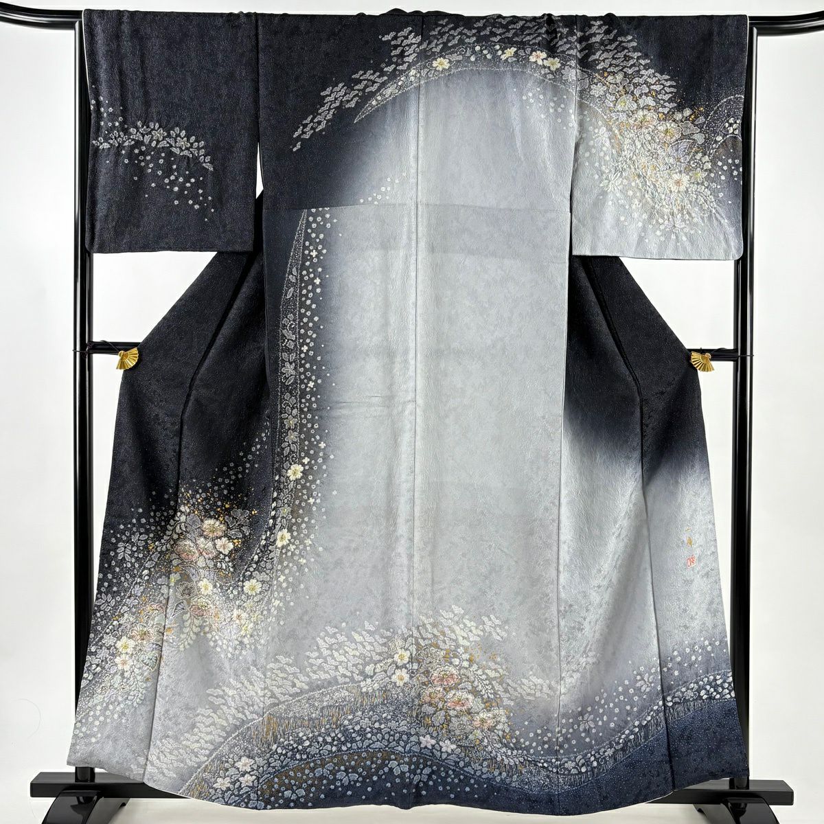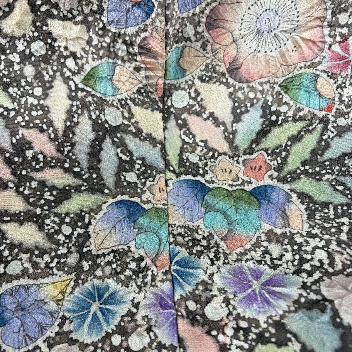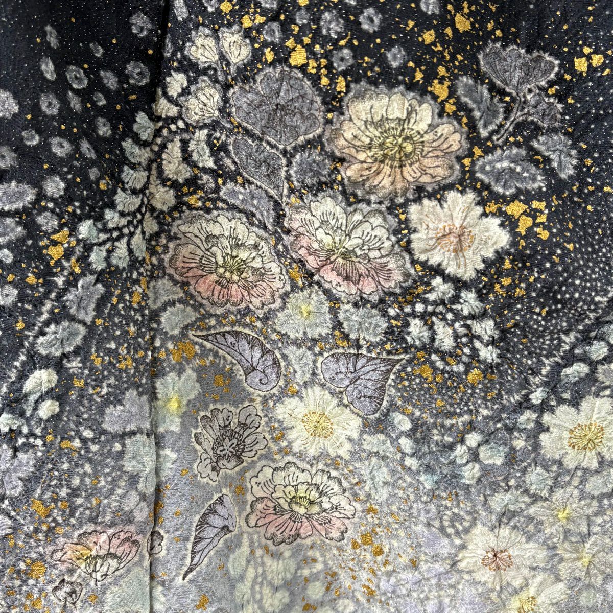 訪問着 身丈161cm 裄丈66.5cm M 袷 吉乃一廉 落款あり 辻が花 銀通し 金彩 黒 正絹 逸品