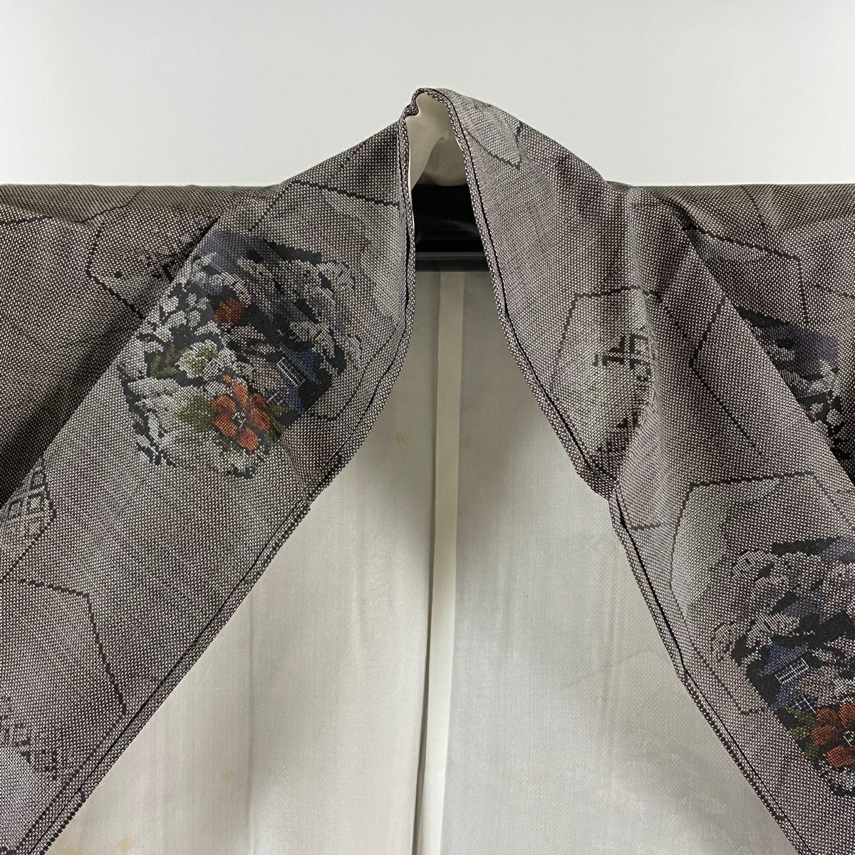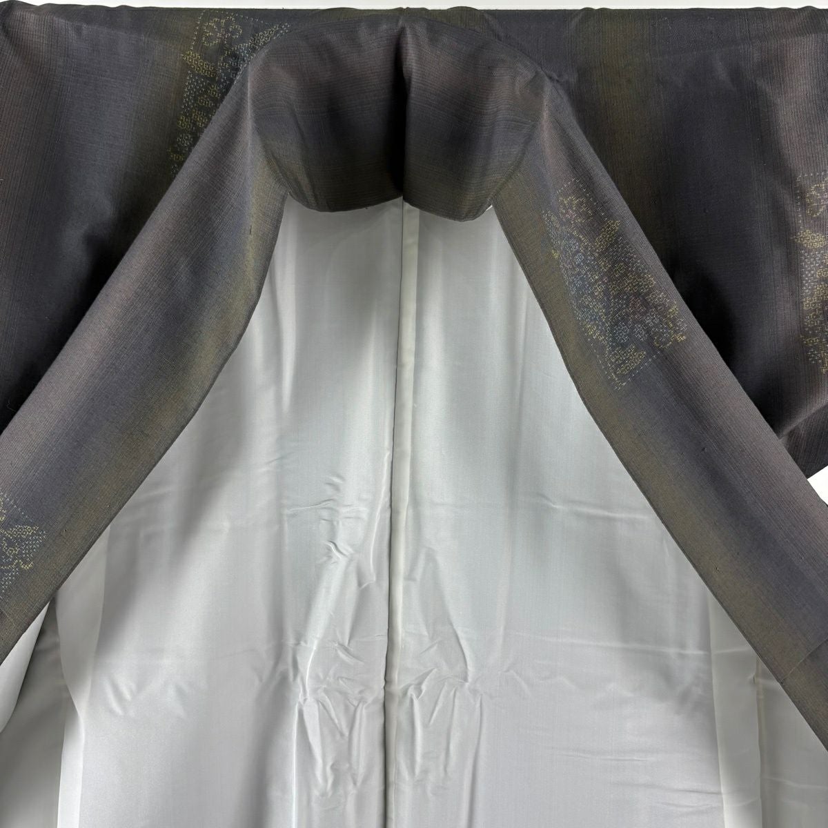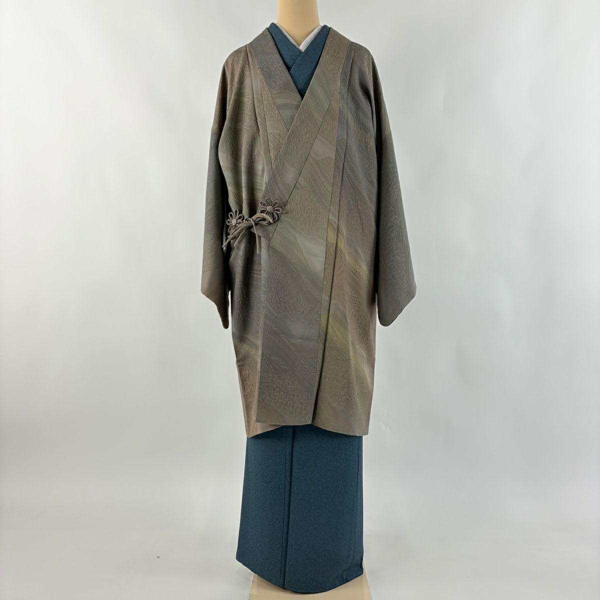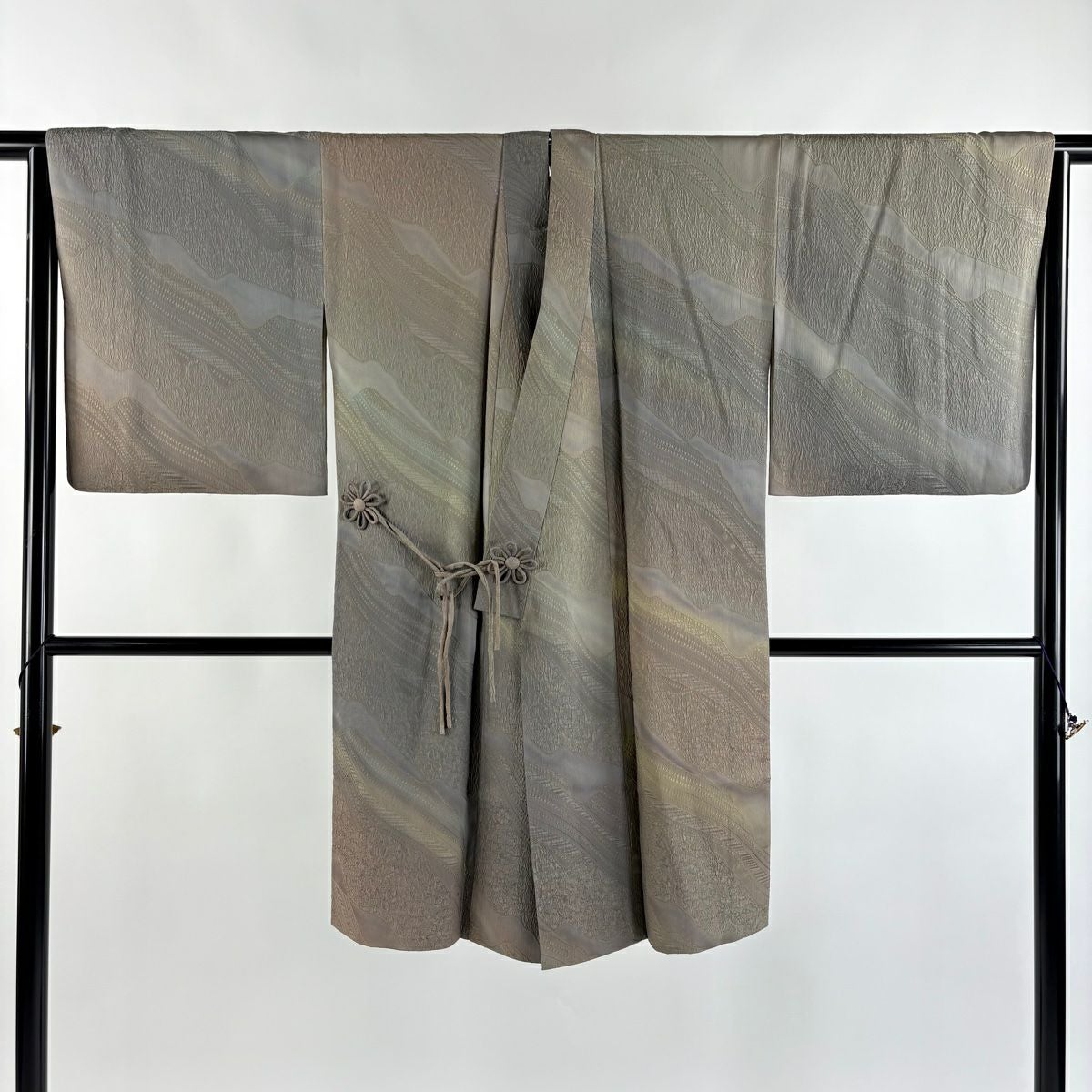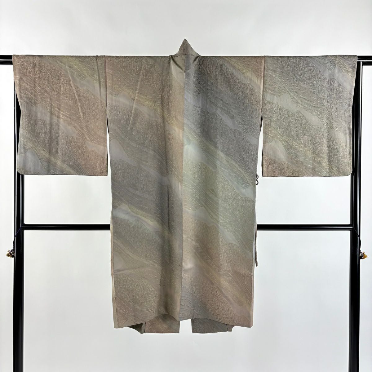 【美品】 道中着 身丈103.5cm 裄丈69cm L 和装コート 着物衿 地紋 ぼかし 灰茶 正絹 逸品