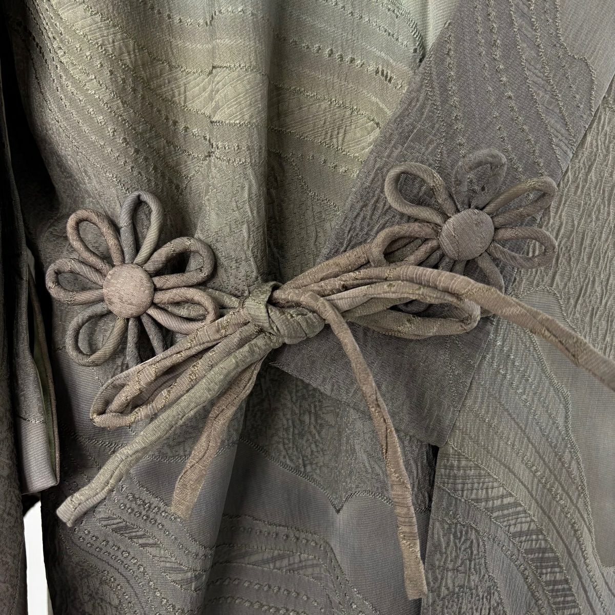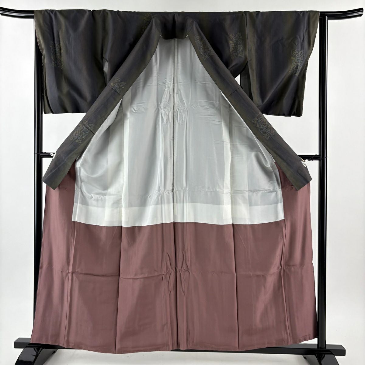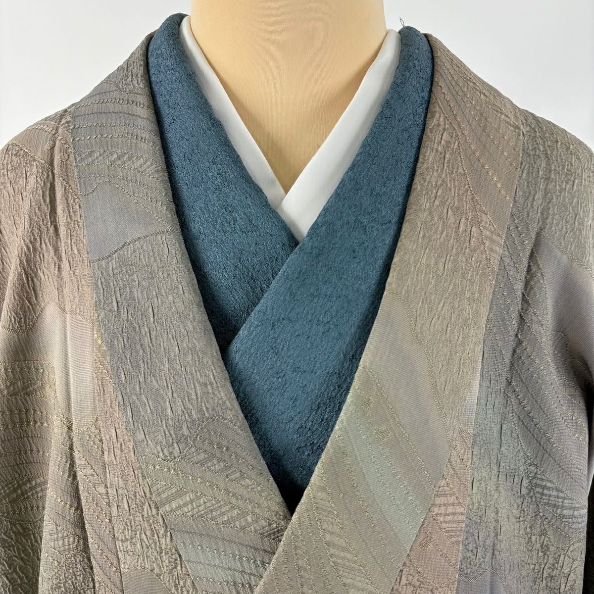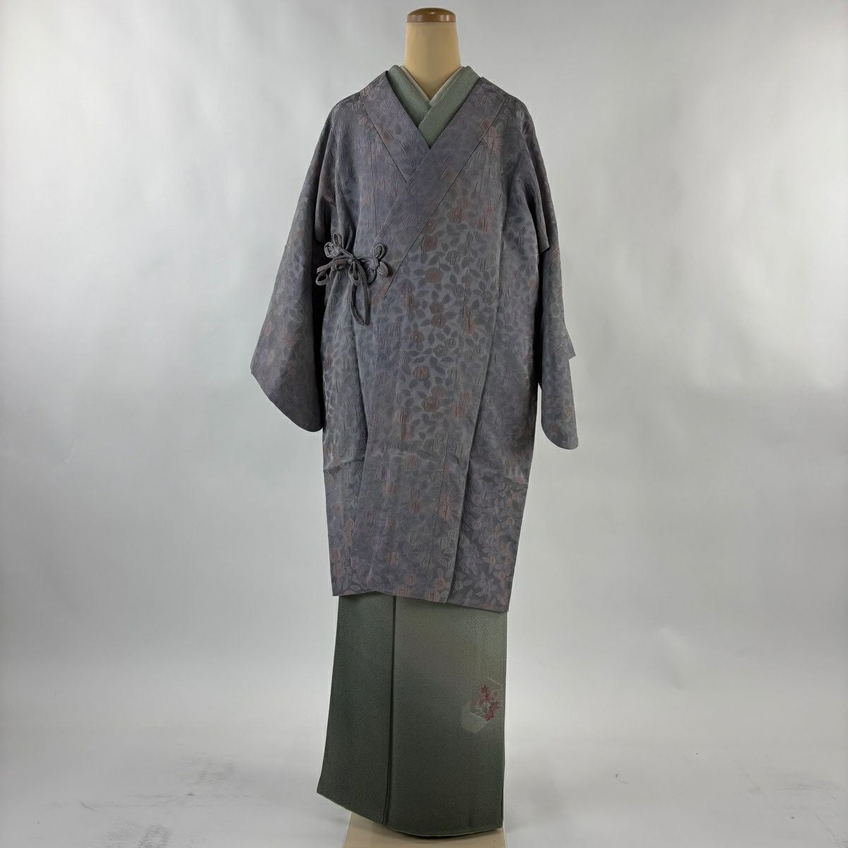 【美品】 道中着 身丈103.5cm 裄丈69cm L 和装コート 着物衿 地紋 ぼかし 灰茶 正絹 逸品