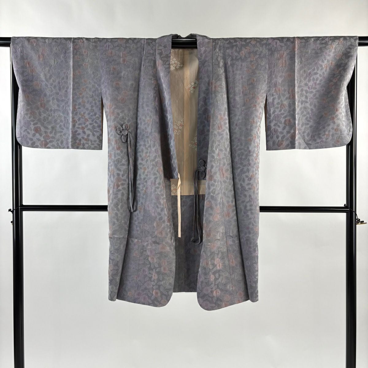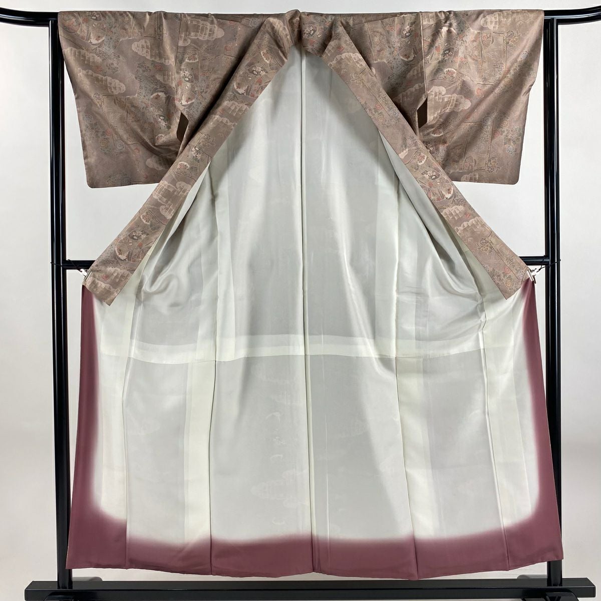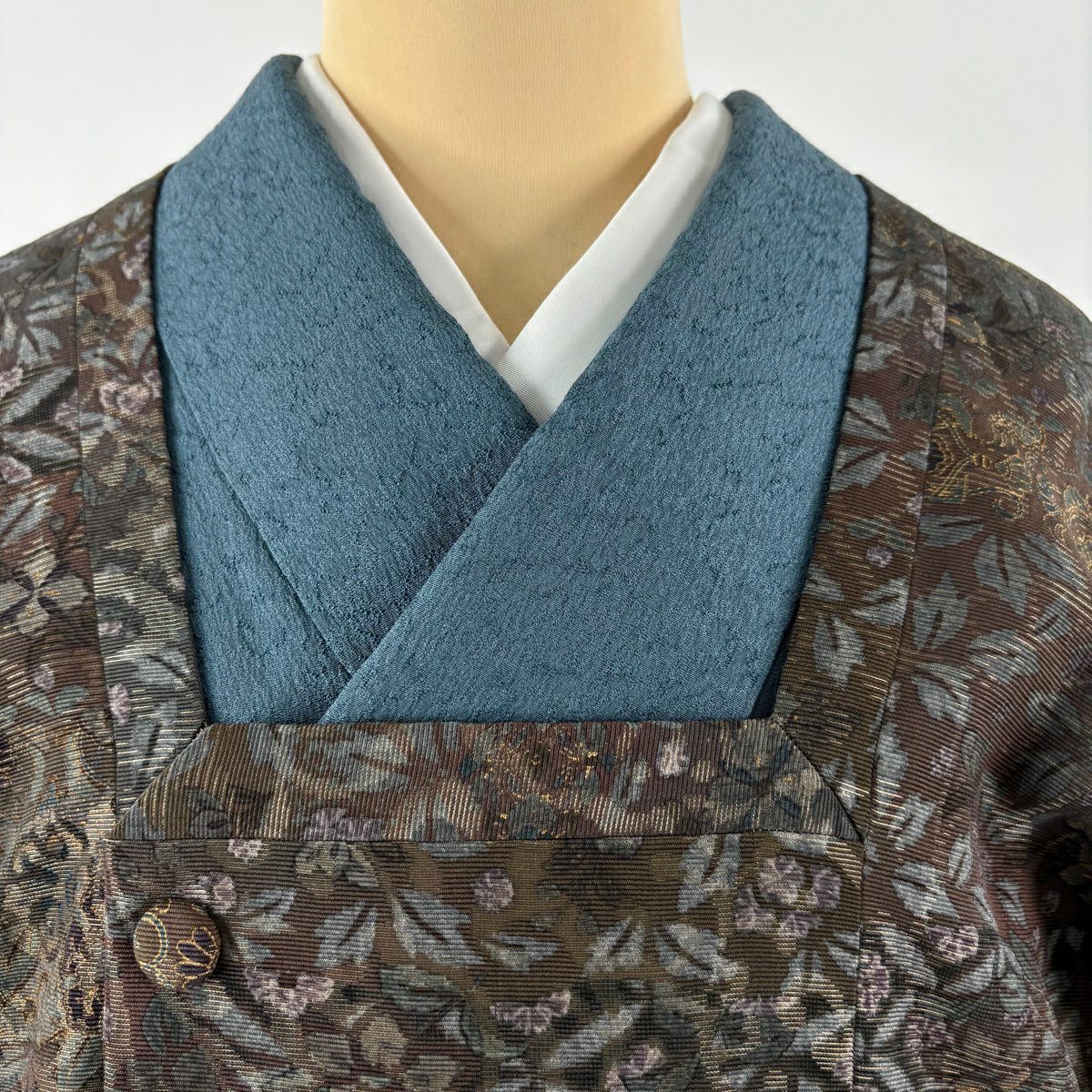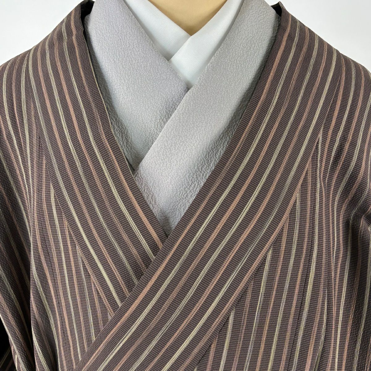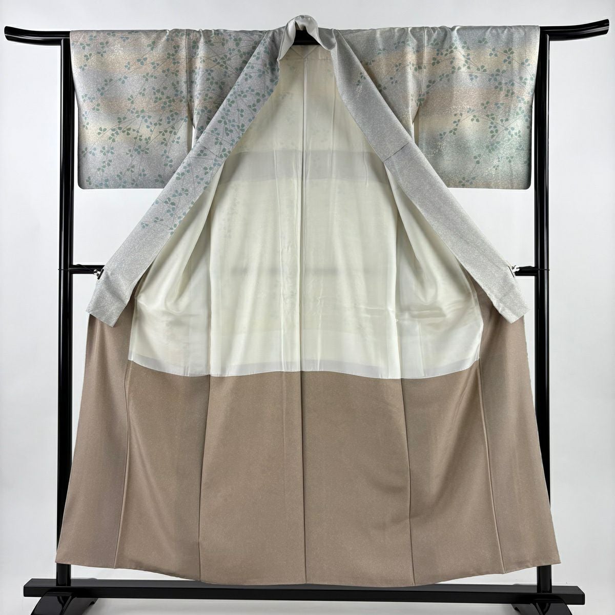 【美品】 道中着 身丈103.5cm 裄丈69cm L 和装コート 着物衿 地紋 ぼかし 灰茶 正絹 逸品