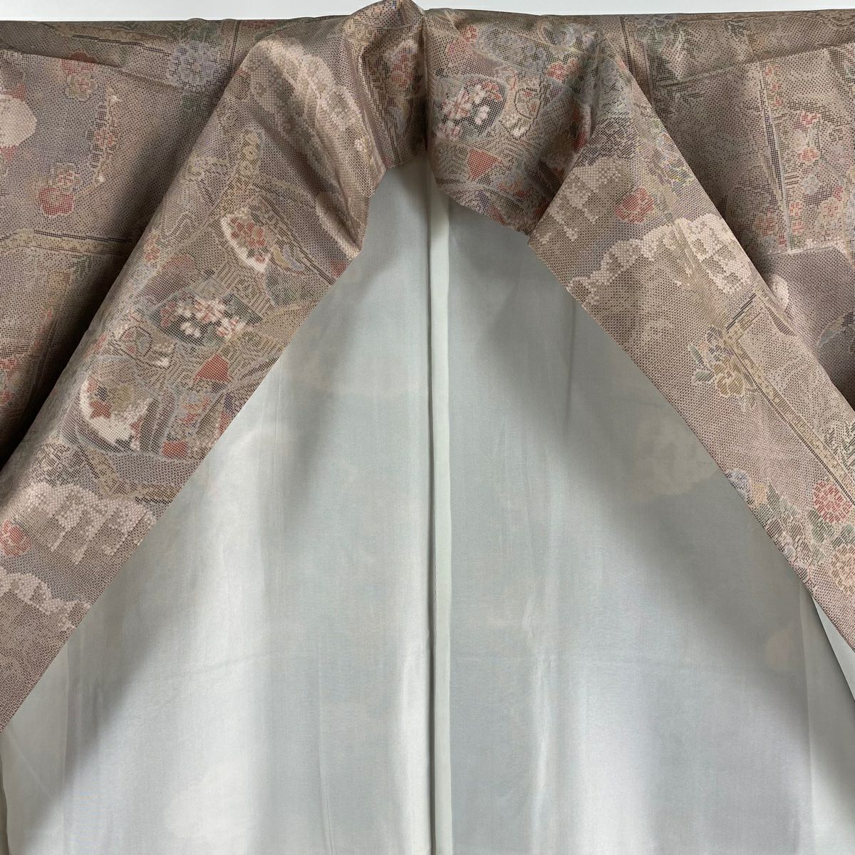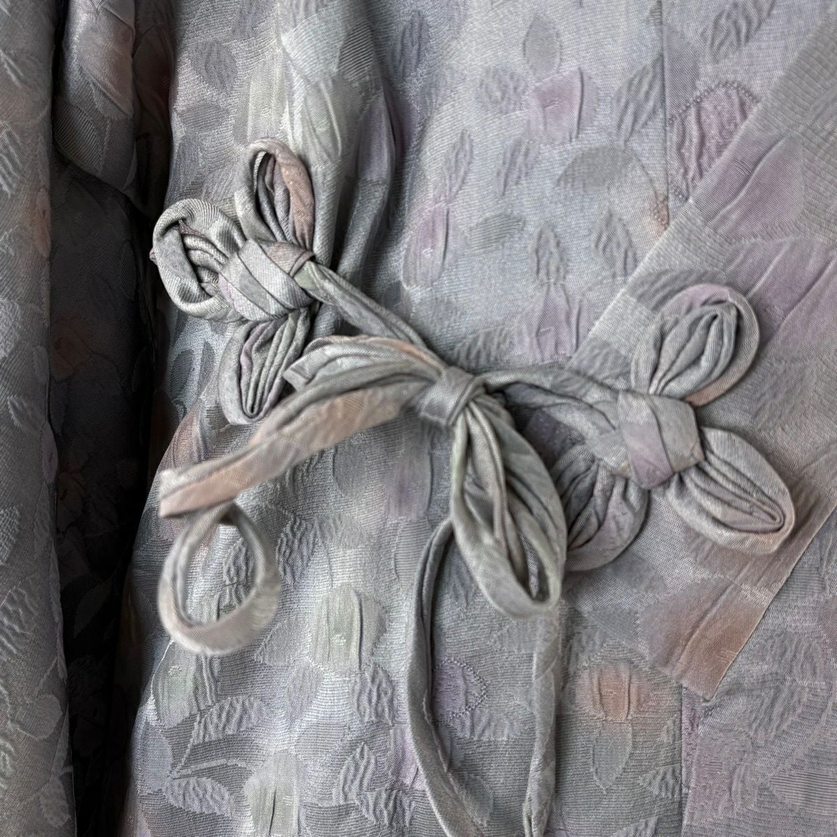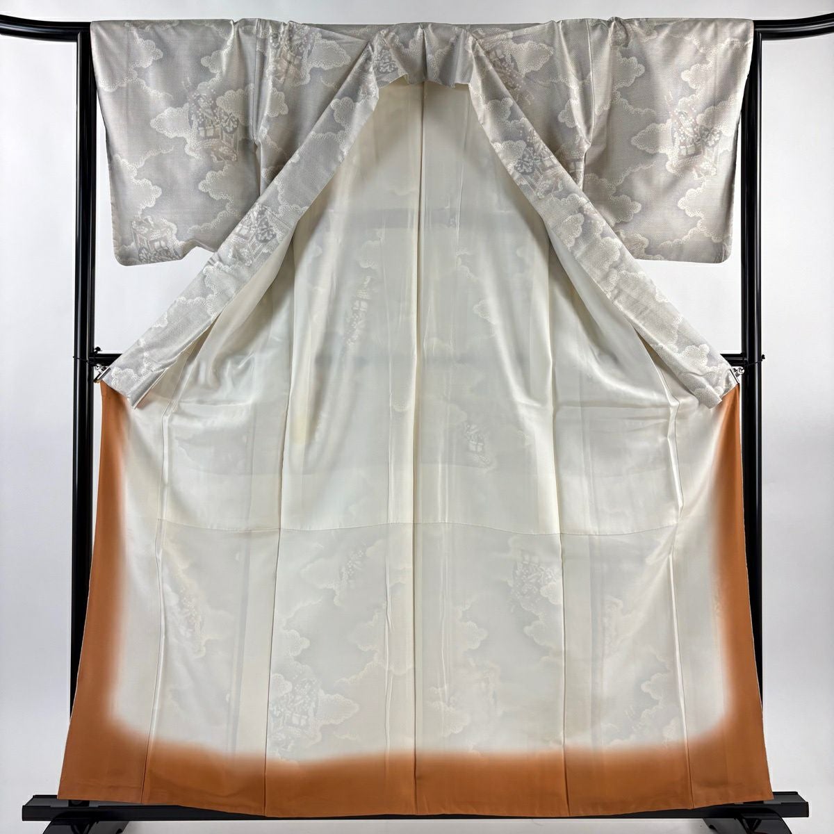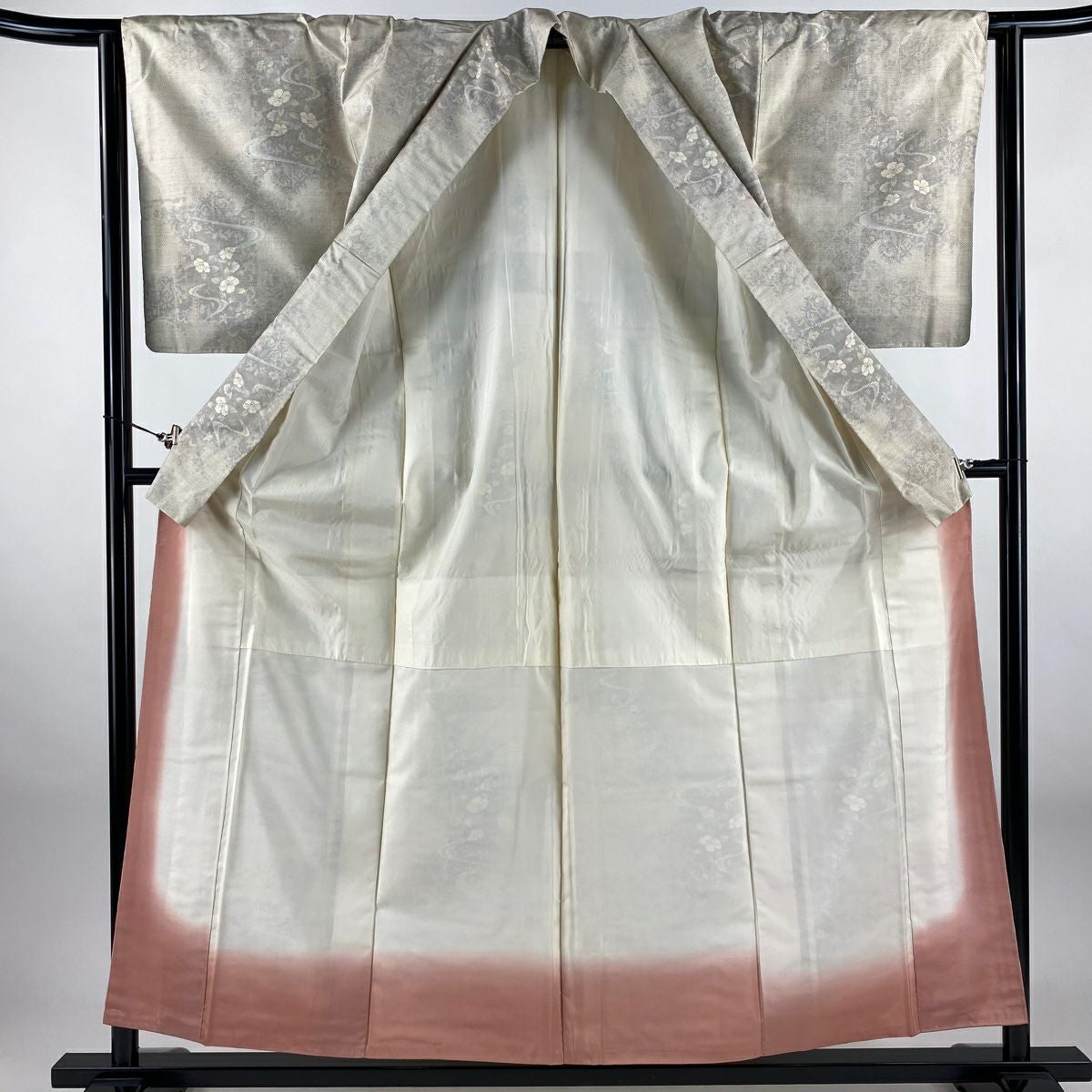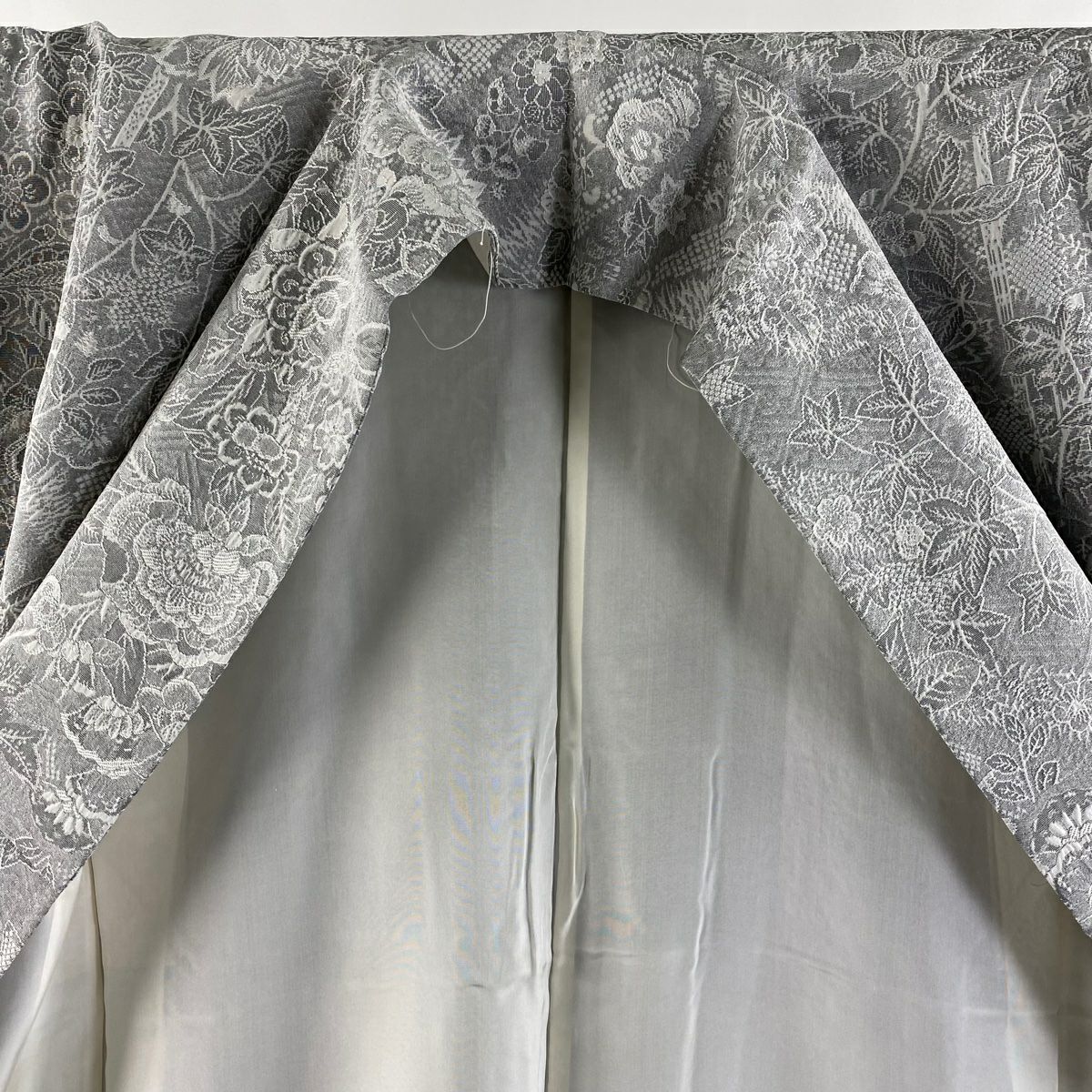 【美品】 道中着 身丈103.5cm 裄丈69cm L 和装コート 着物衿 地紋 ぼかし 灰茶 正絹 逸品