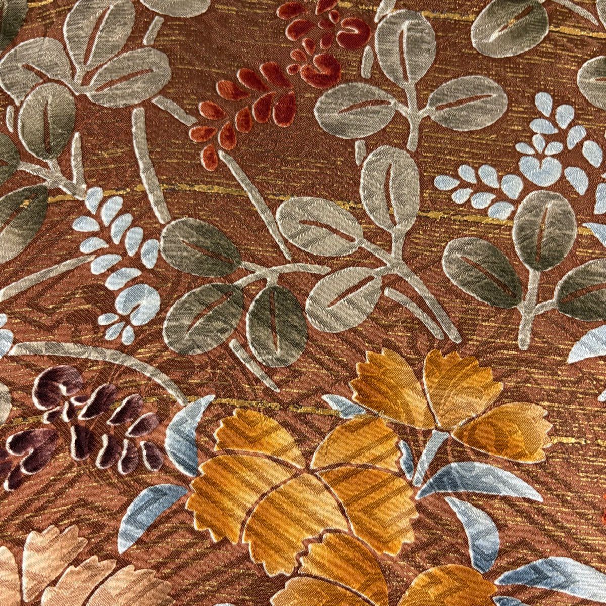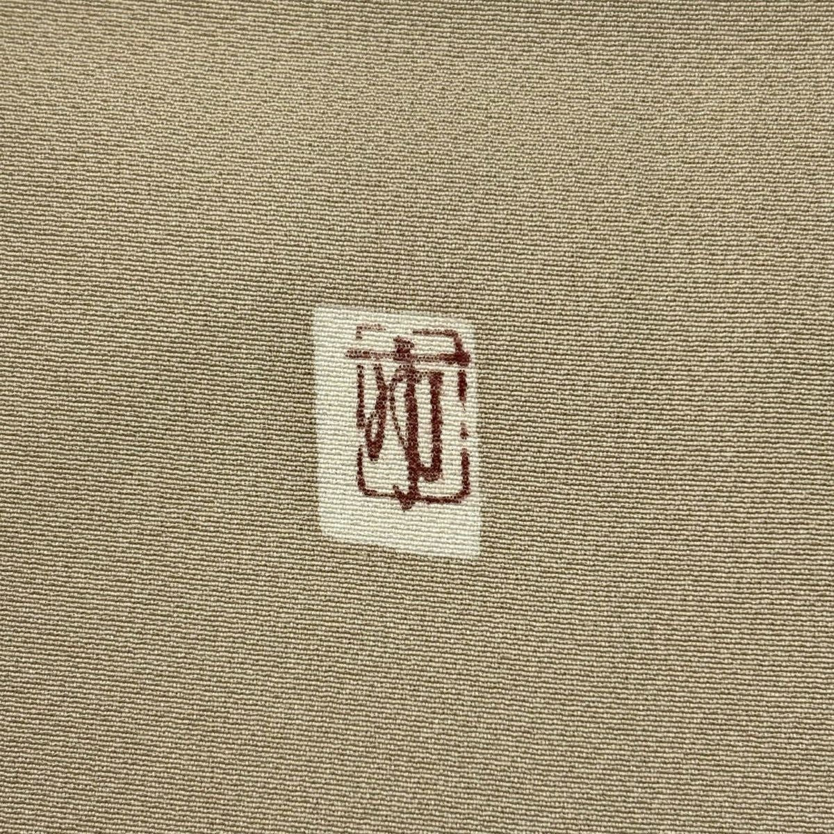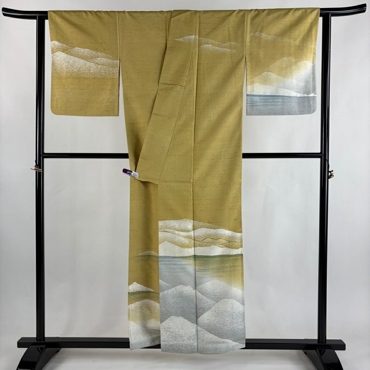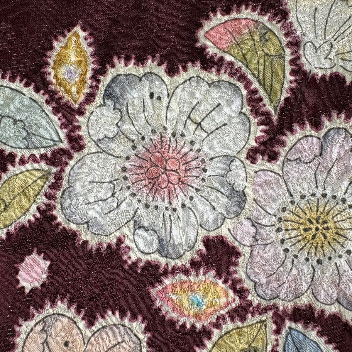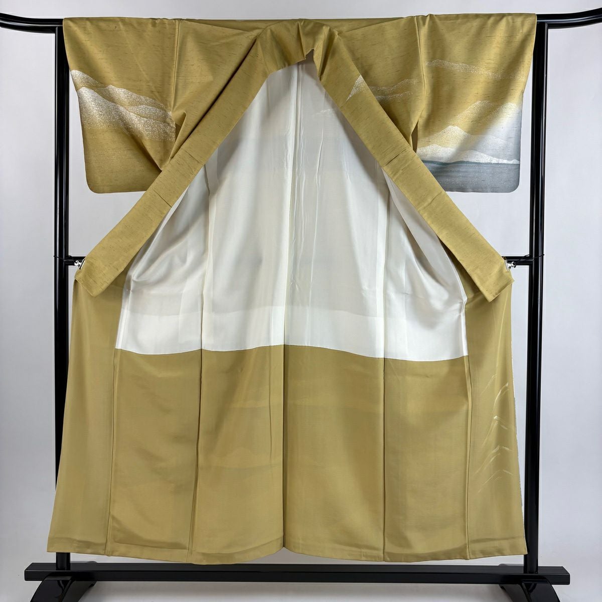訪問着 身丈158.5cm 裄丈66cm M 袷 菅有鬼一 落款あり 花 幾何学 金彩 焦茶色 正絹 逸品