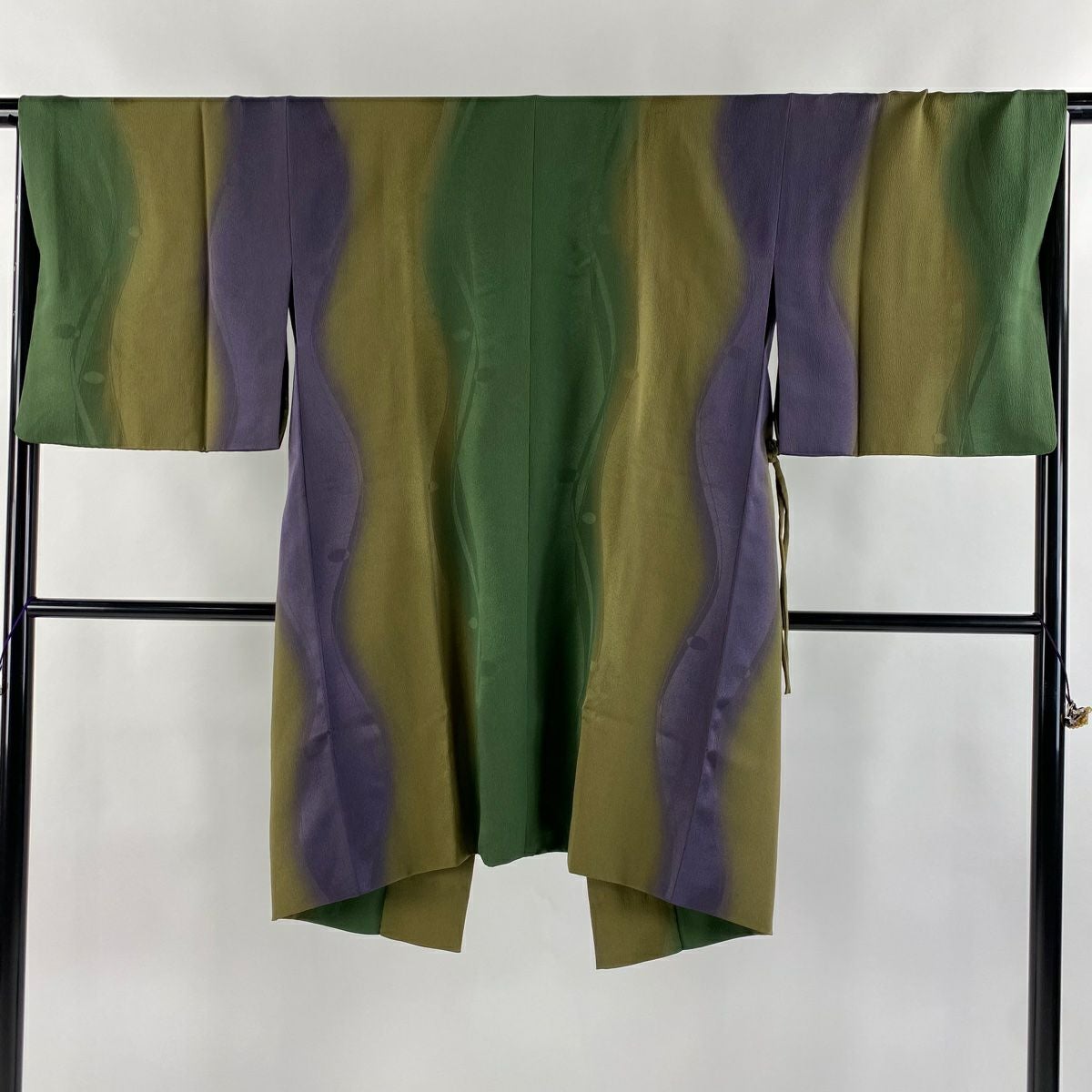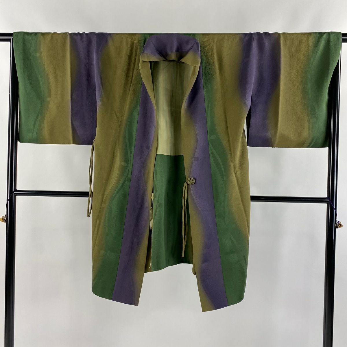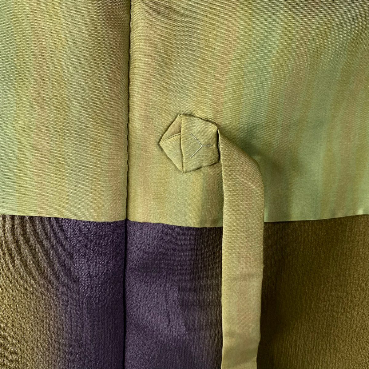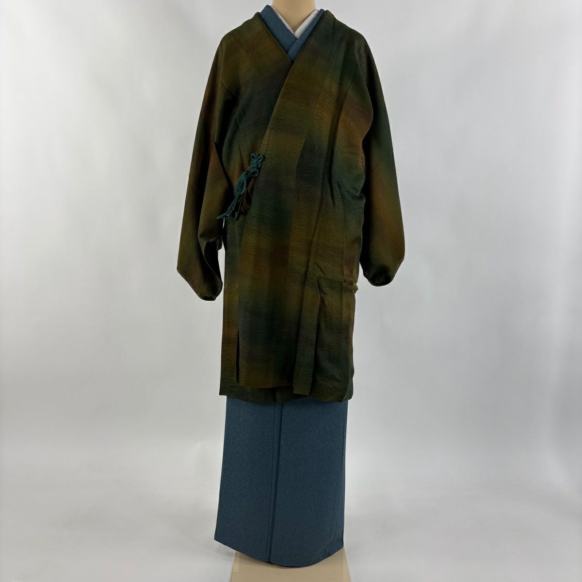 【美品】道中着 身丈99cm 裄丈65cm M 和装コート リバーシブル ぼかし柄 茶緑色 正絹 逸品