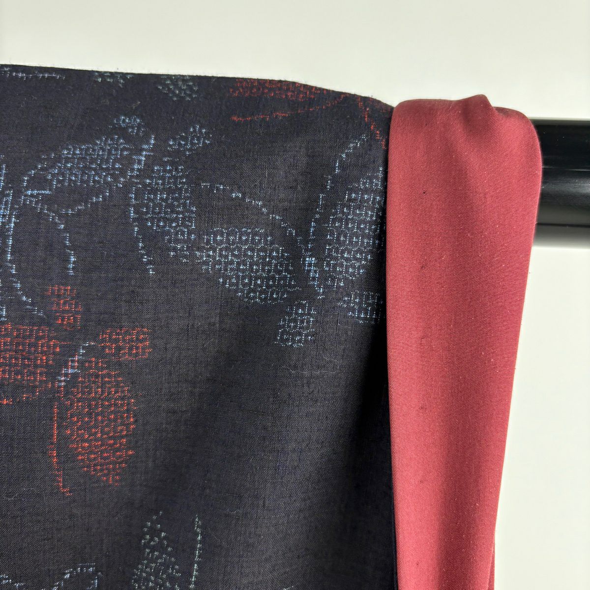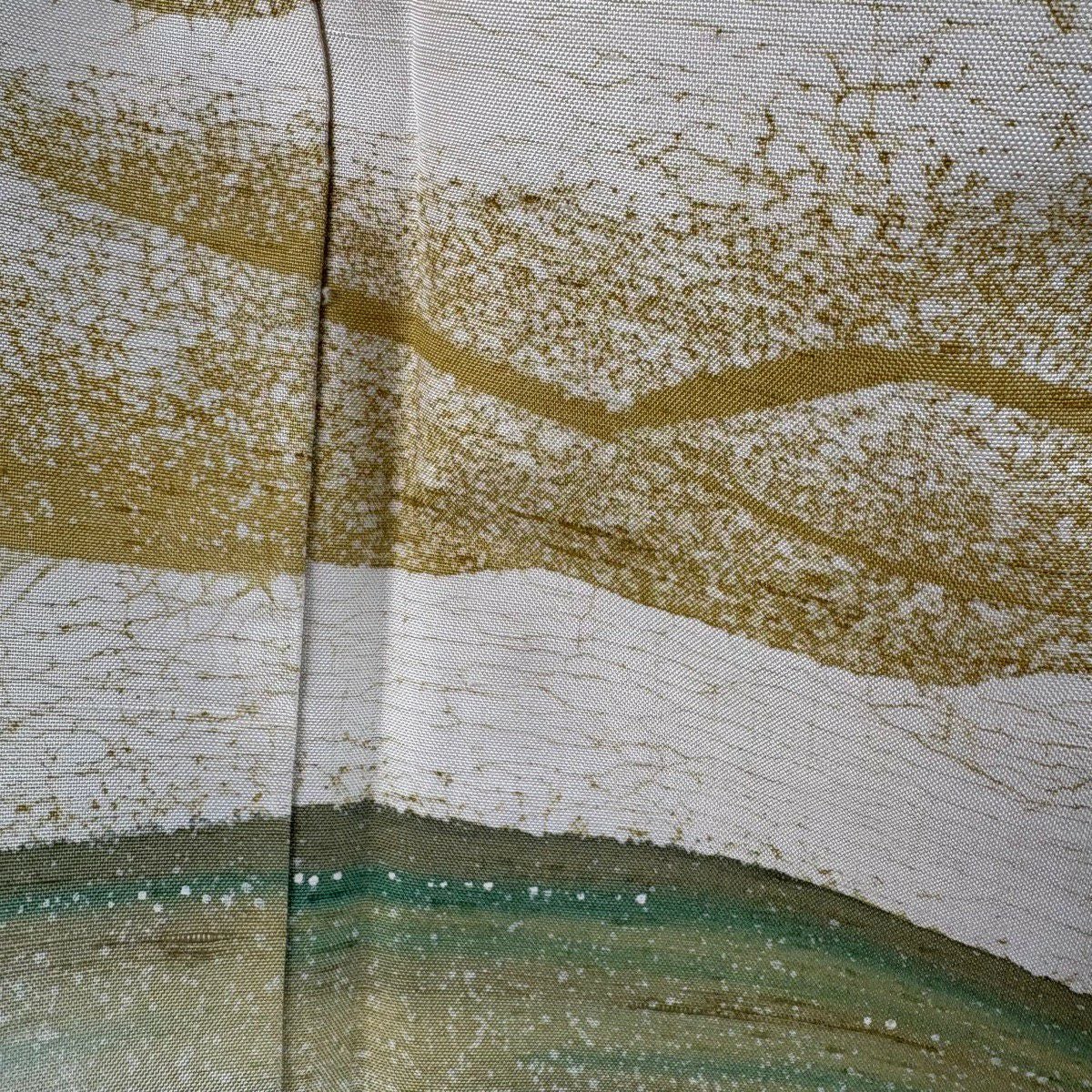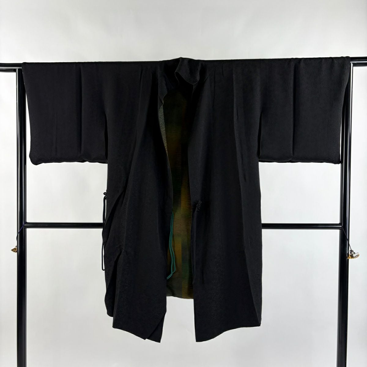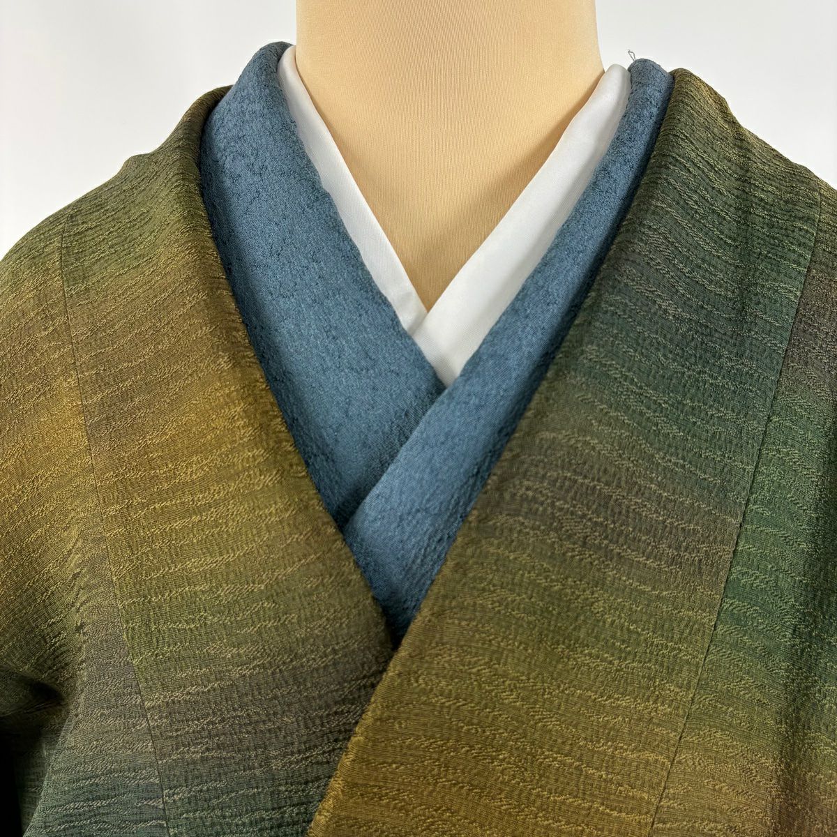 【美品】道中着 身丈99cm 裄丈65cm M 和装コート リバーシブル ぼかし柄 茶緑色 正絹 逸品
