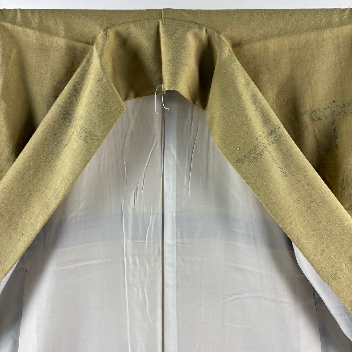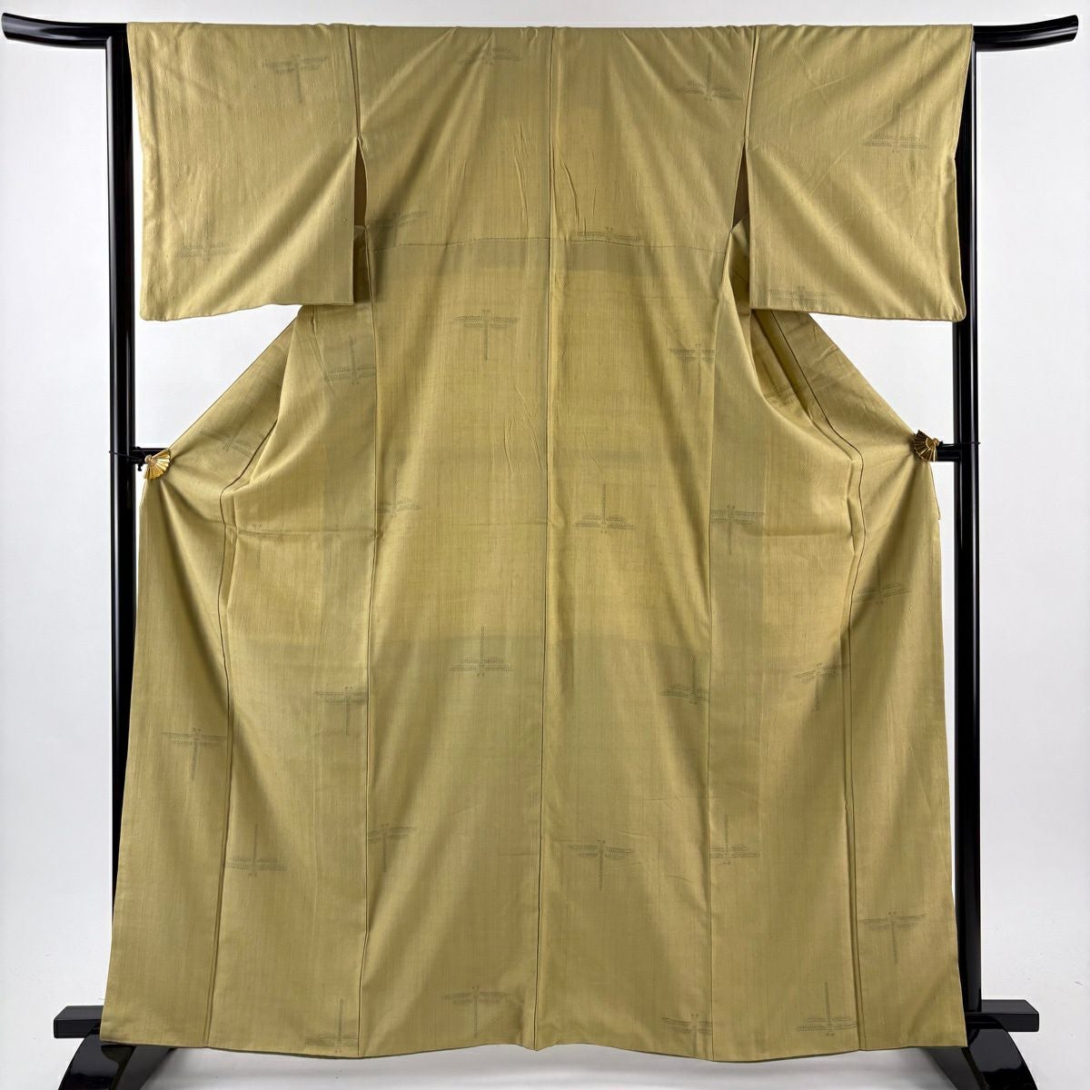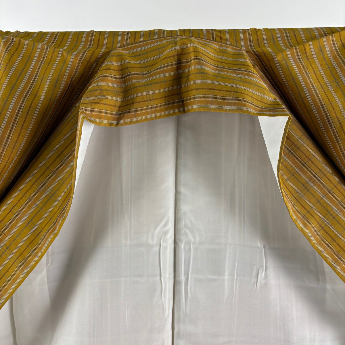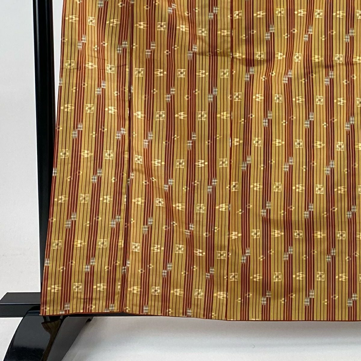 【美品】 紬 身丈159cm 裄丈62.5cm S 袷 黄八丈 証紙あり 格子 平織 山吹茶色 正絹 逸品