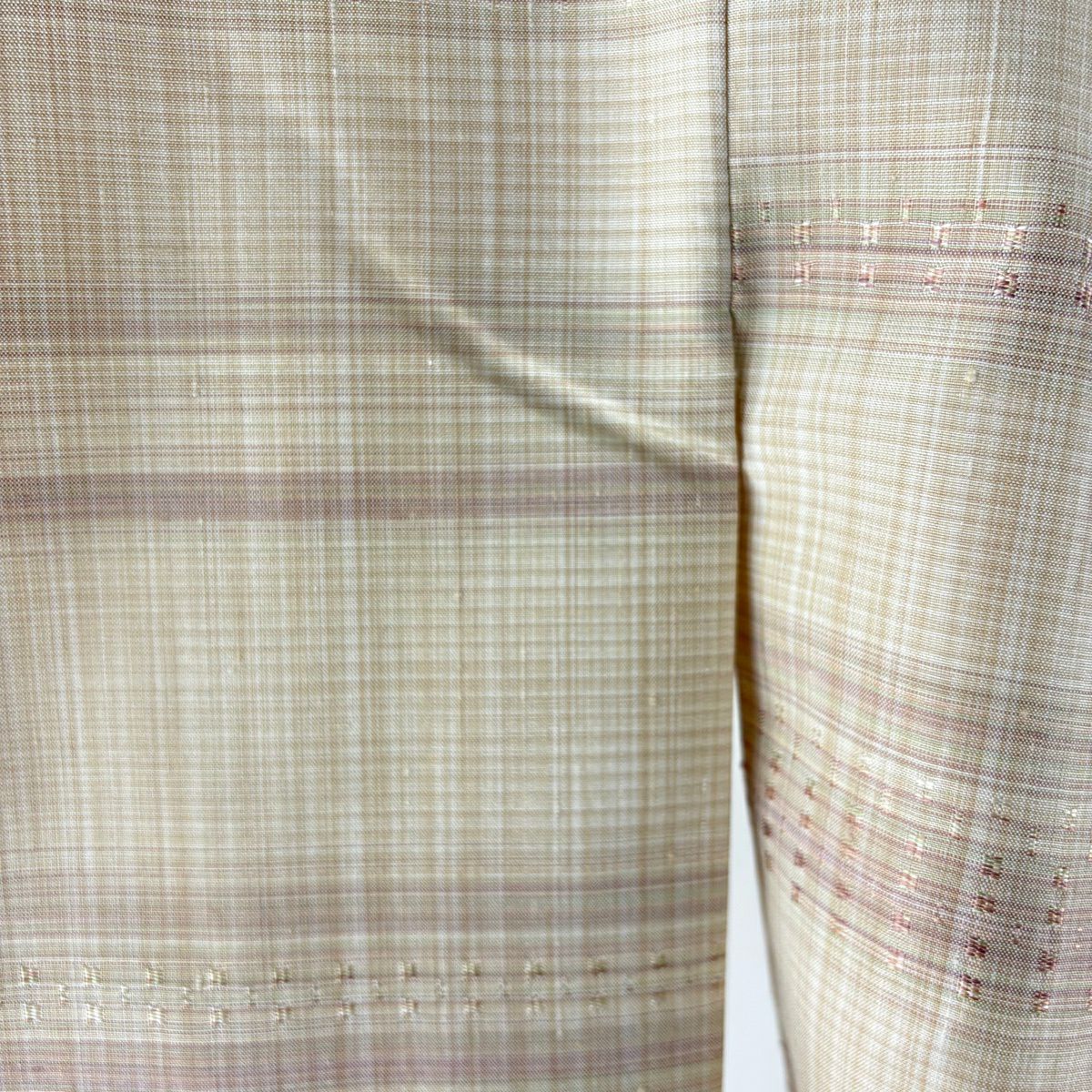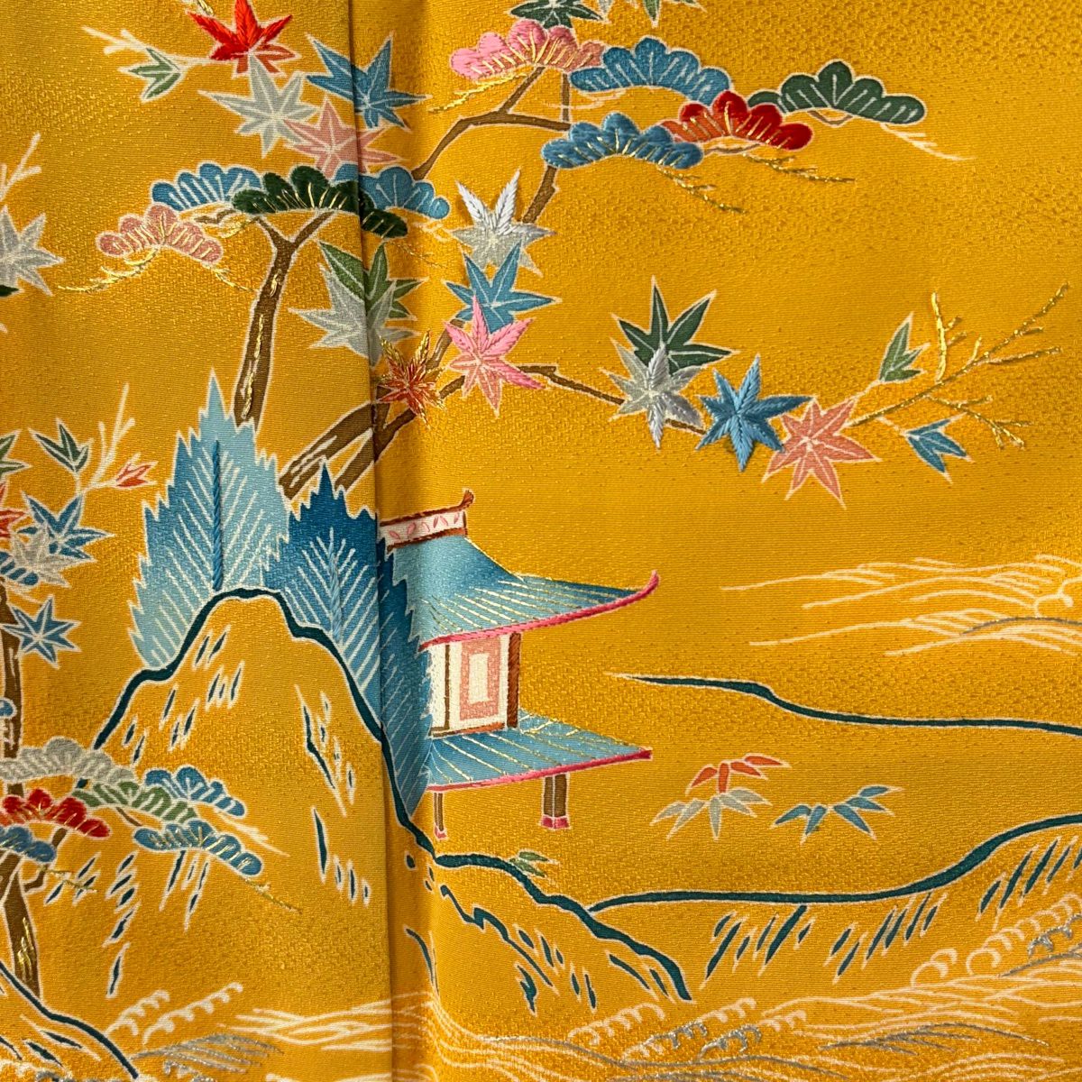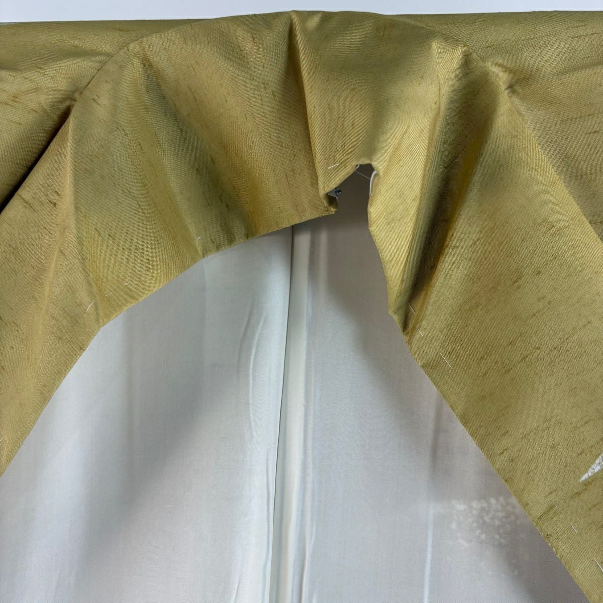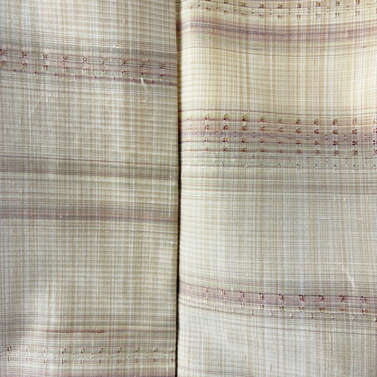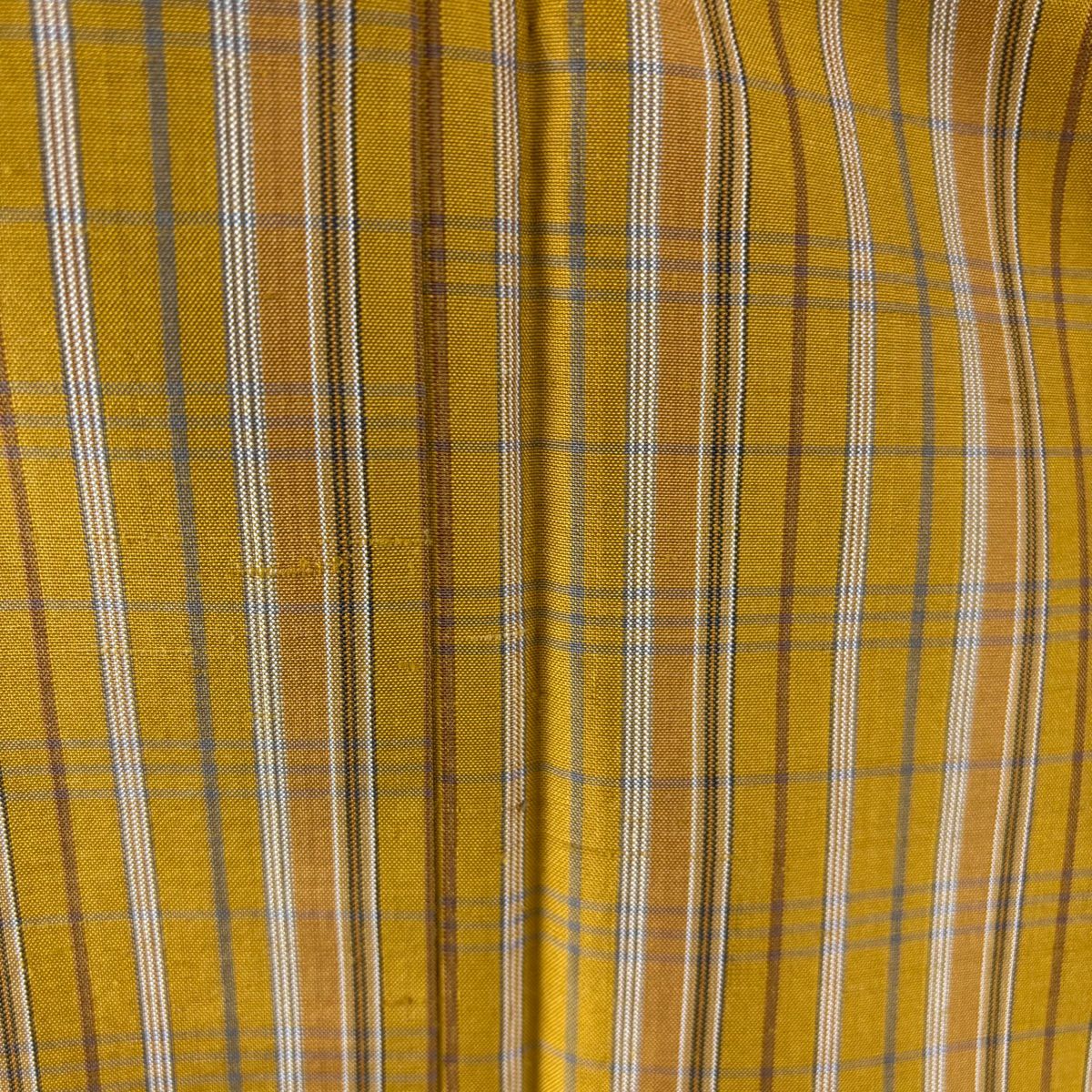 【美品】 紬 身丈159cm 裄丈62.5cm S 袷 黄八丈 証紙あり 格子 平織 山吹茶色 正絹 逸品