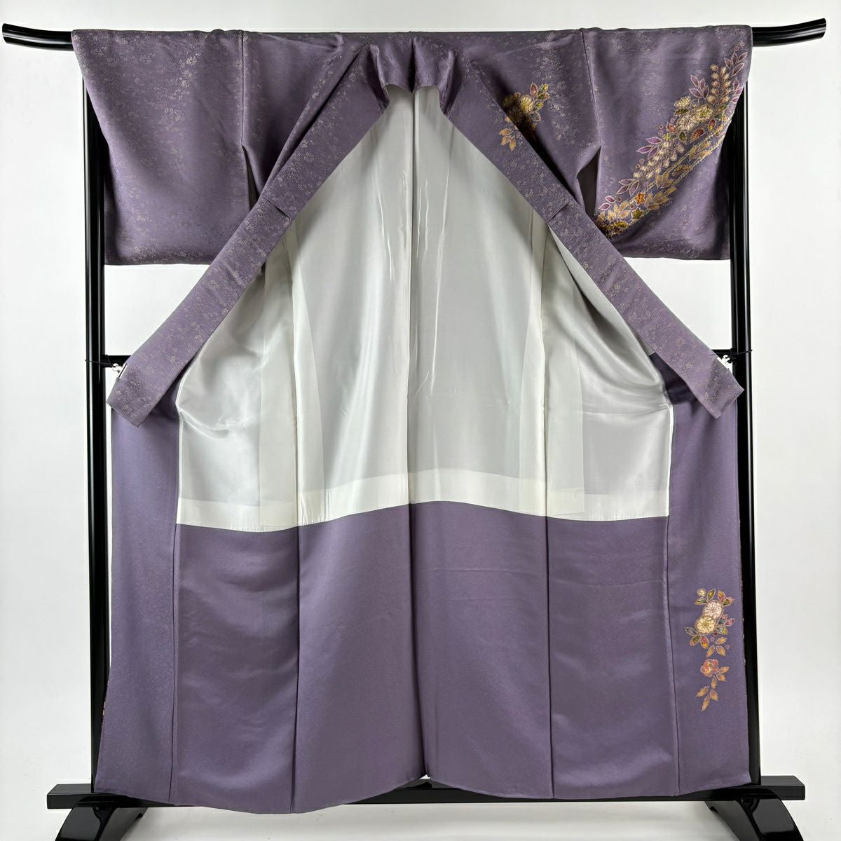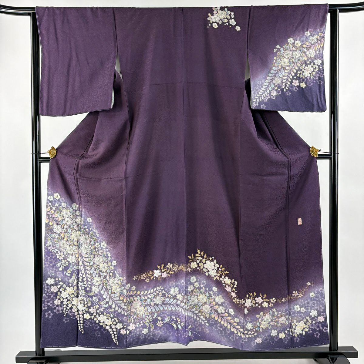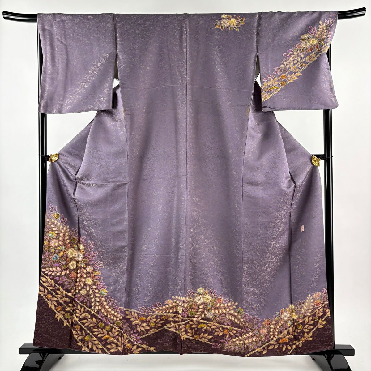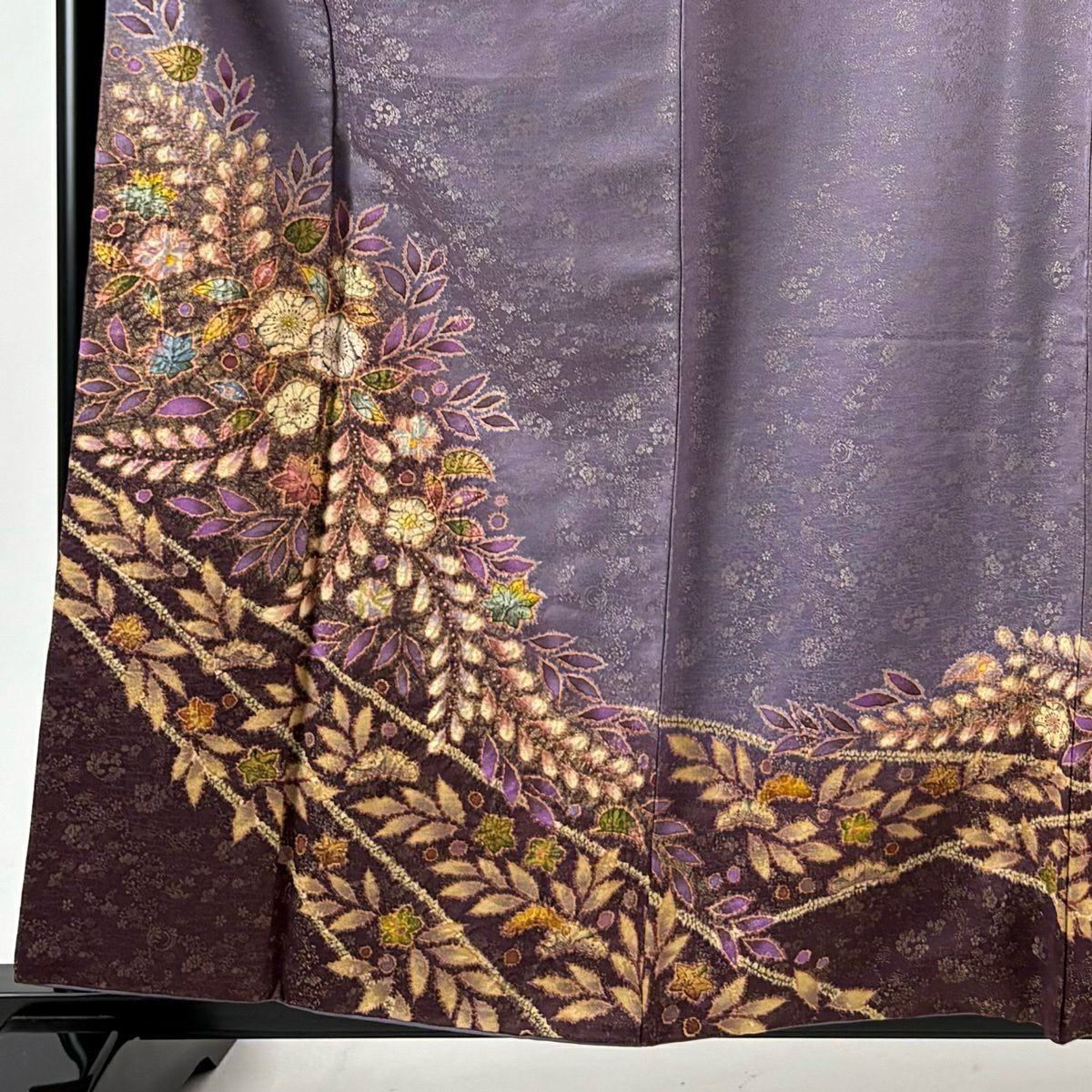 訪問着 身丈159cm 裄丈68.5cm L 袷 徳永憲峯 落款あり 辻が花 金通し 金彩 灰紫 正絹 逸品