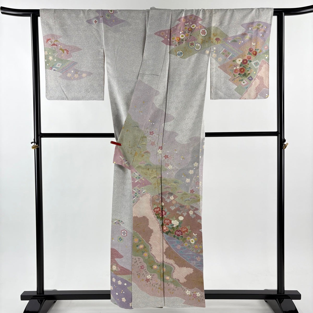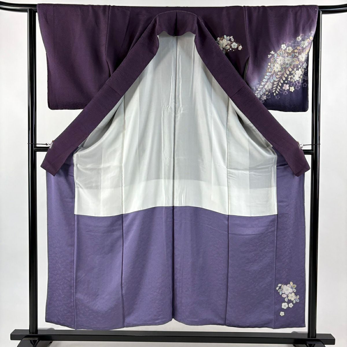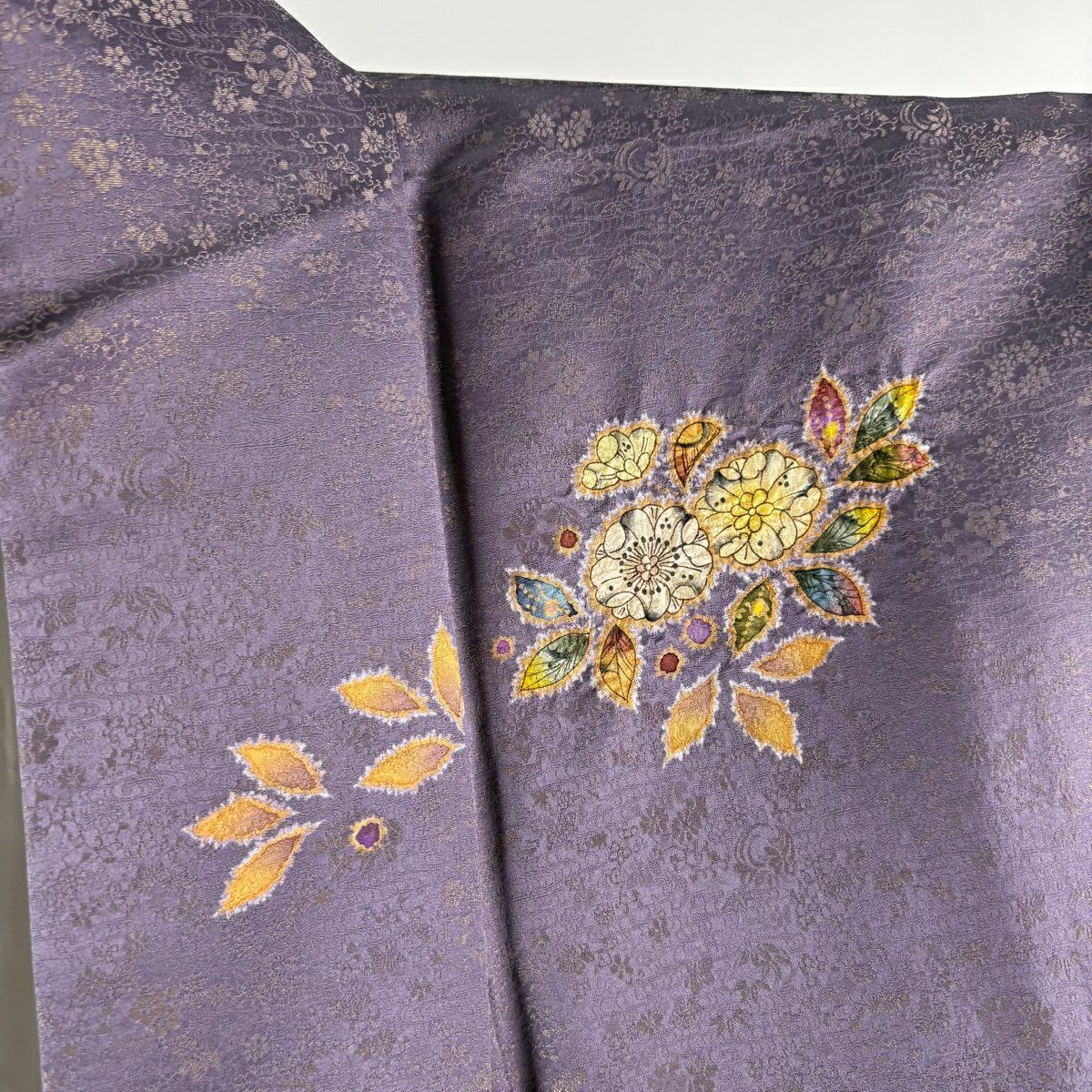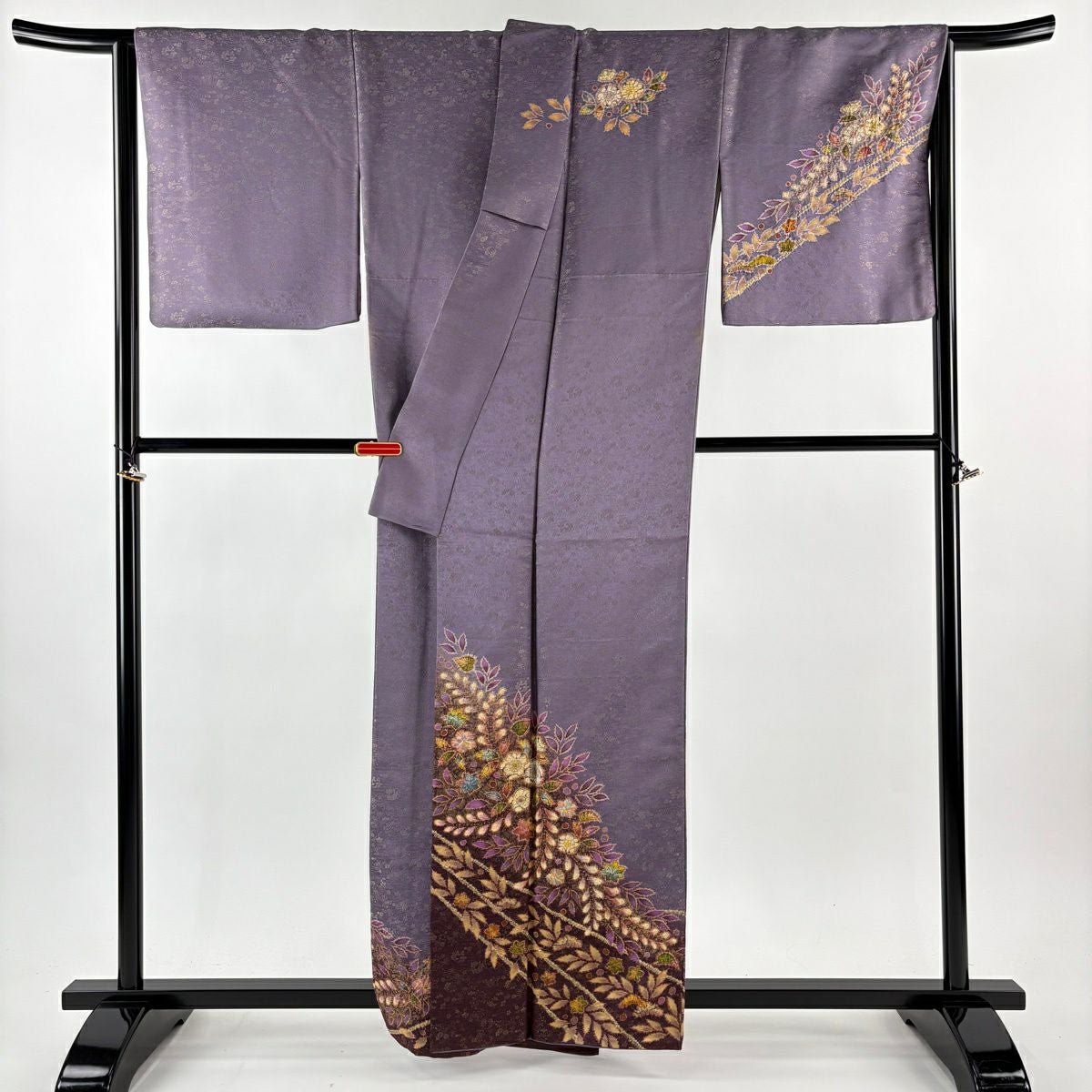 訪問着 身丈159cm 裄丈68.5cm L 袷 徳永憲峯 落款あり 辻が花 金通し 金彩 灰紫 正絹 逸品