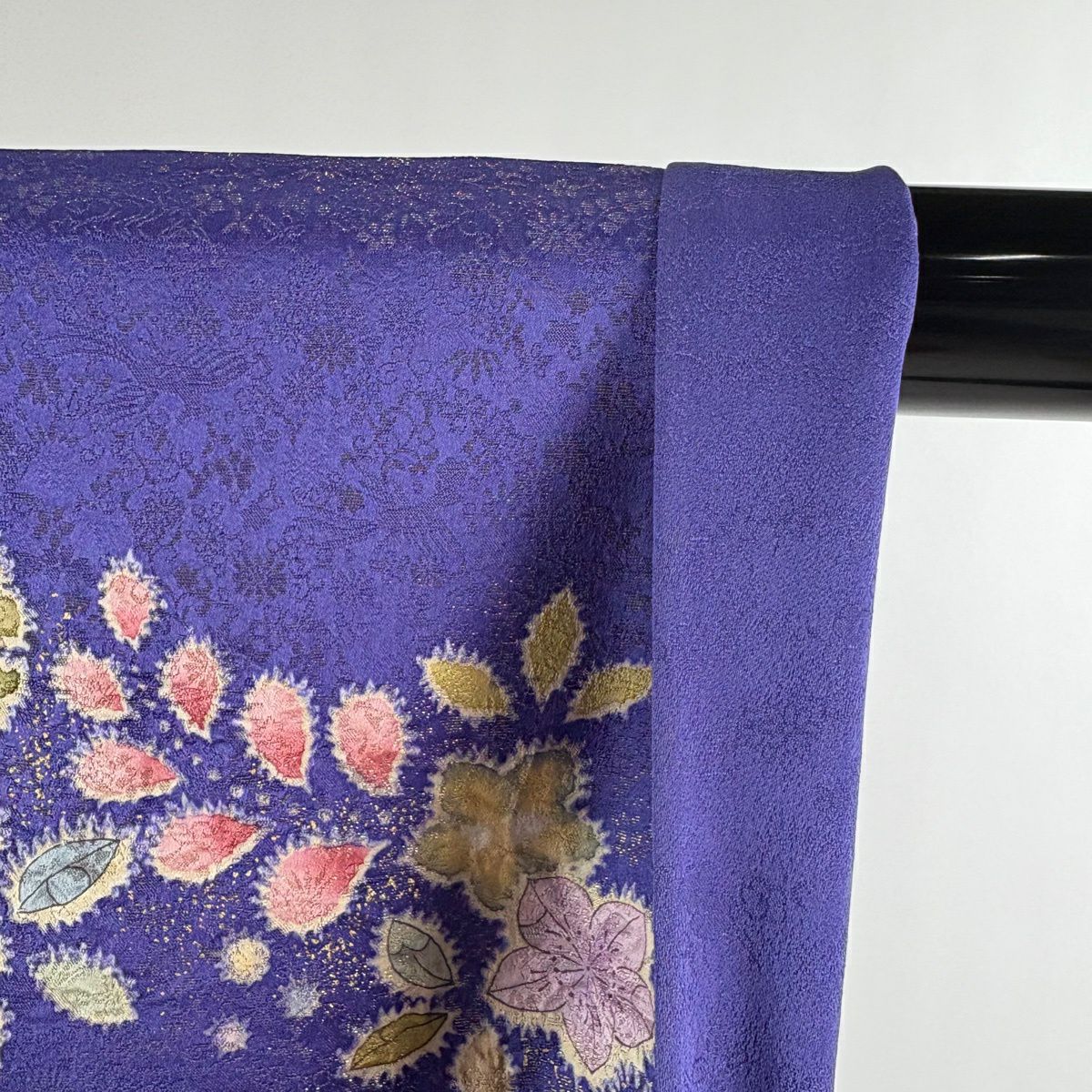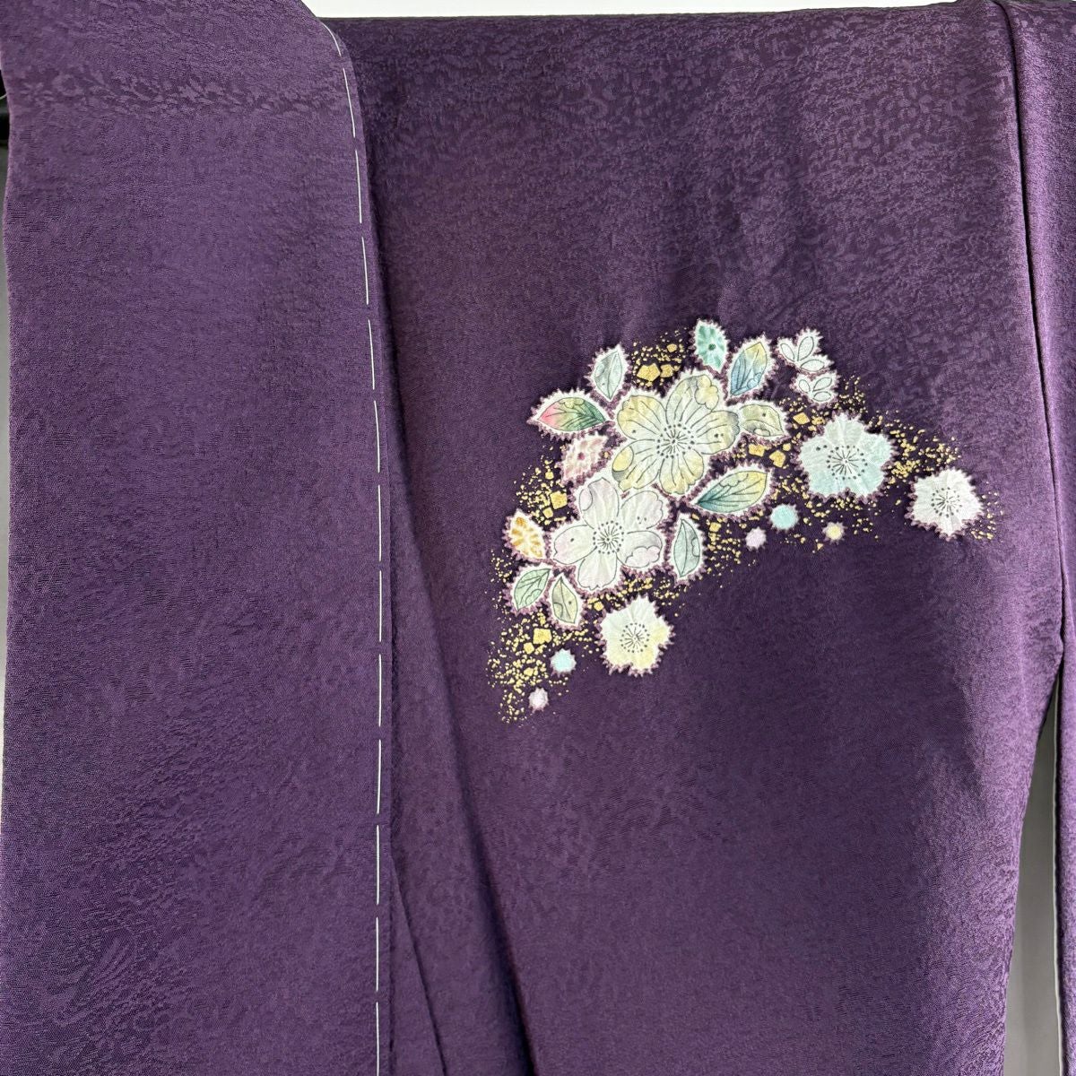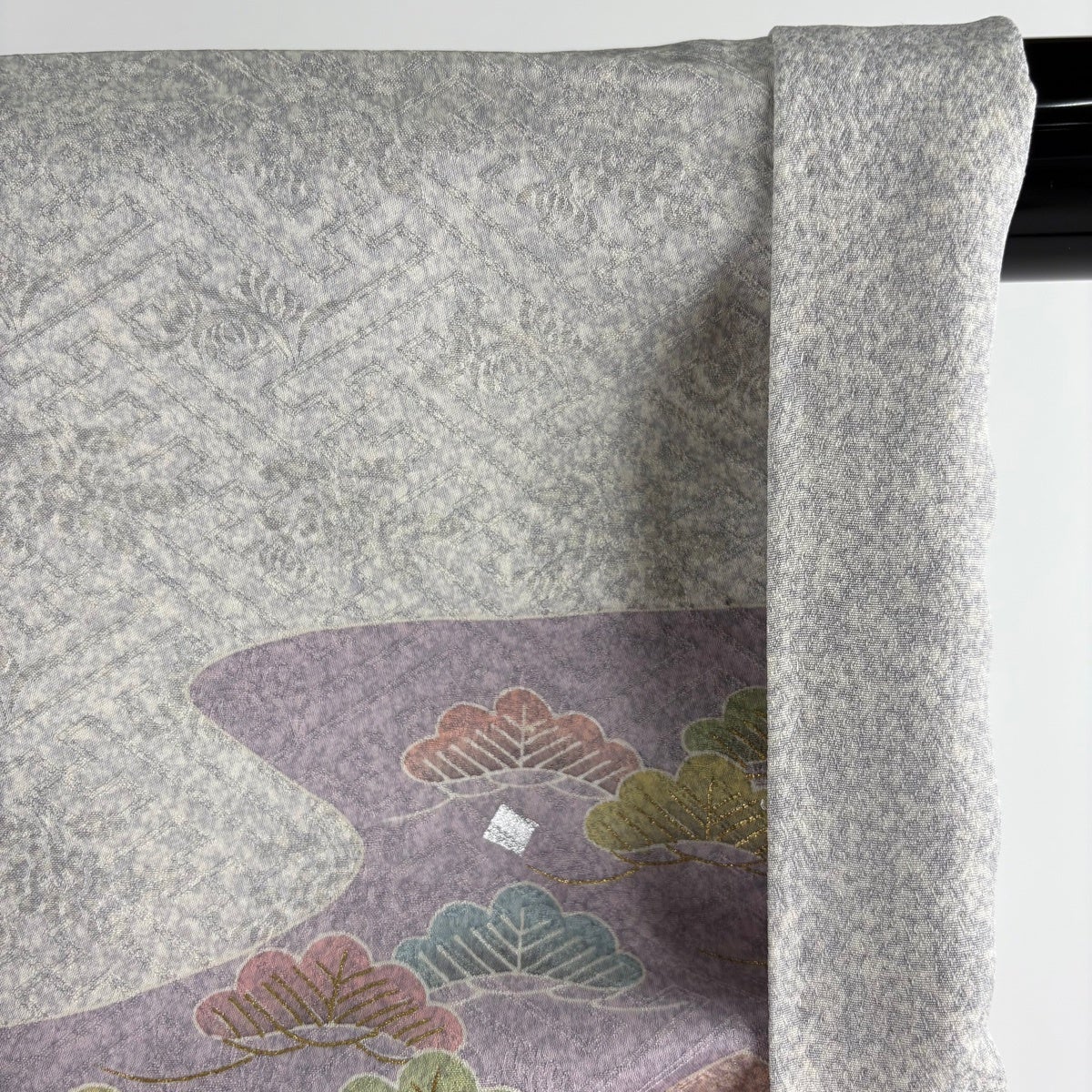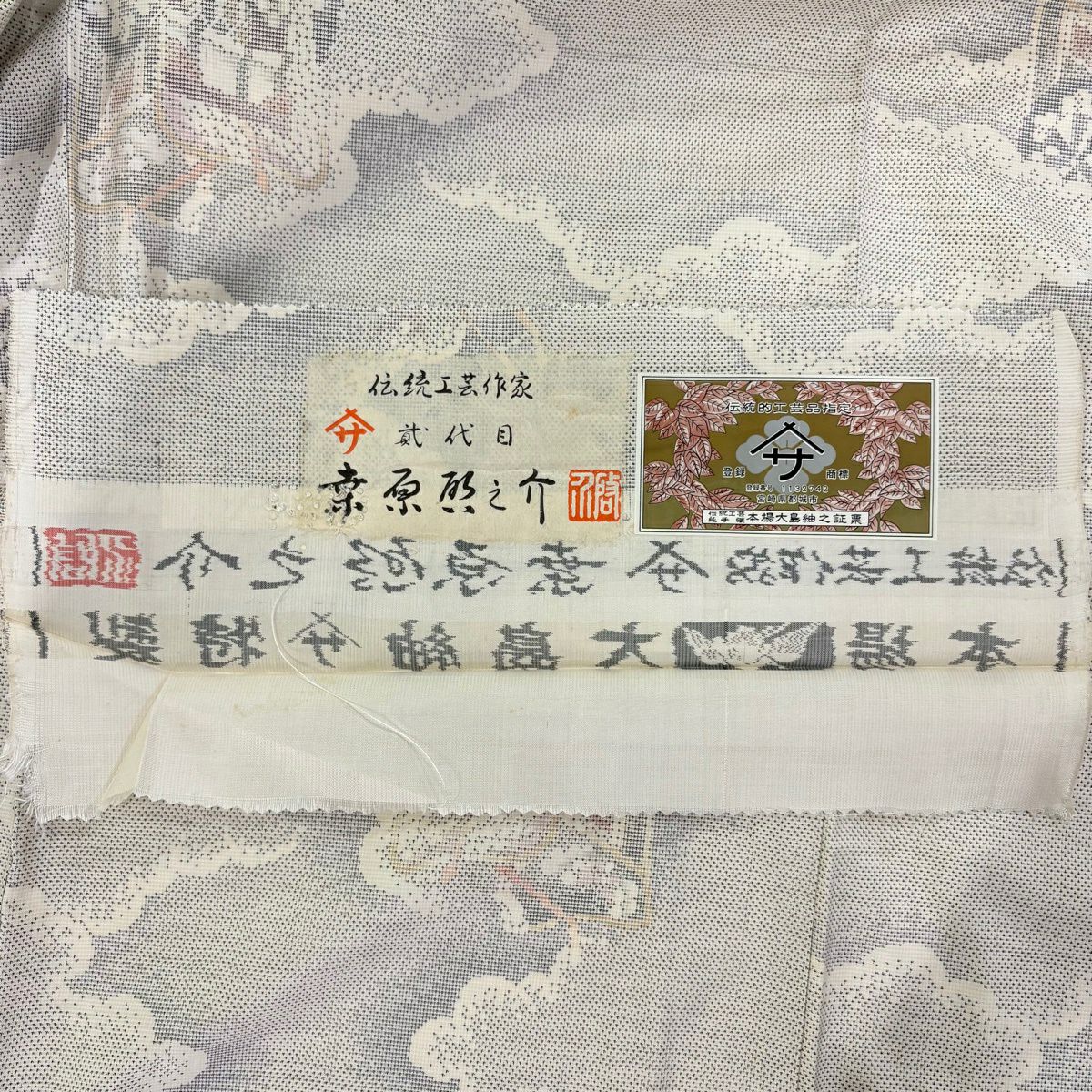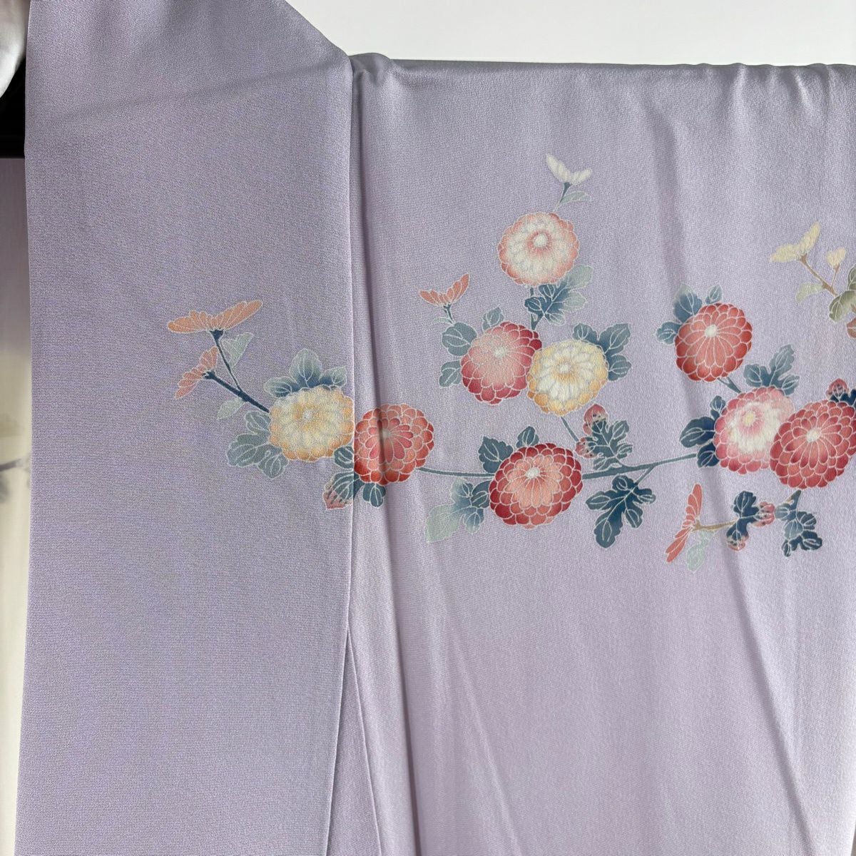 訪問着 身丈159cm 裄丈68.5cm L 袷 徳永憲峯 落款あり 辻が花 金通し 金彩 灰紫 正絹 逸品