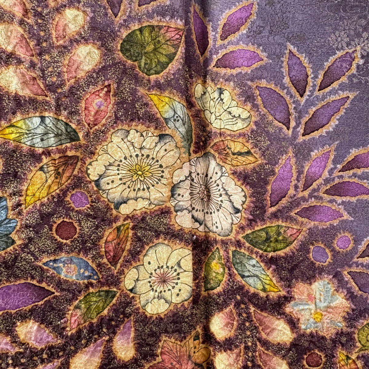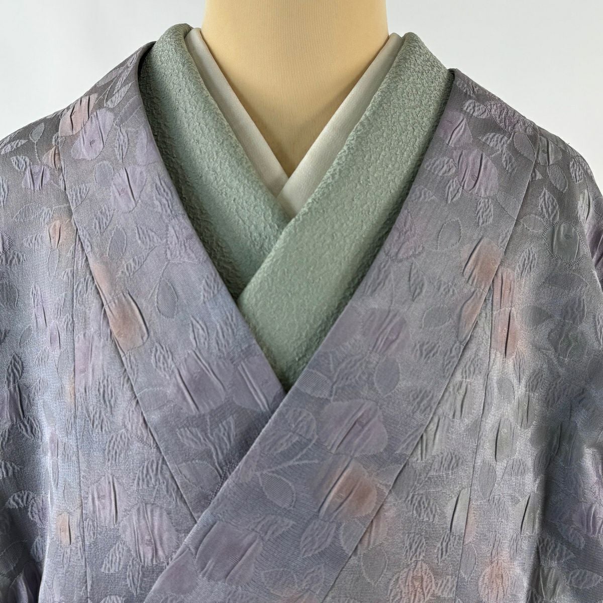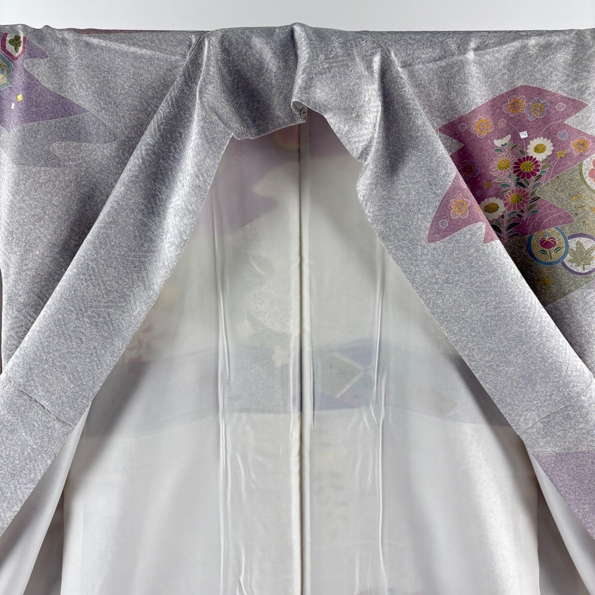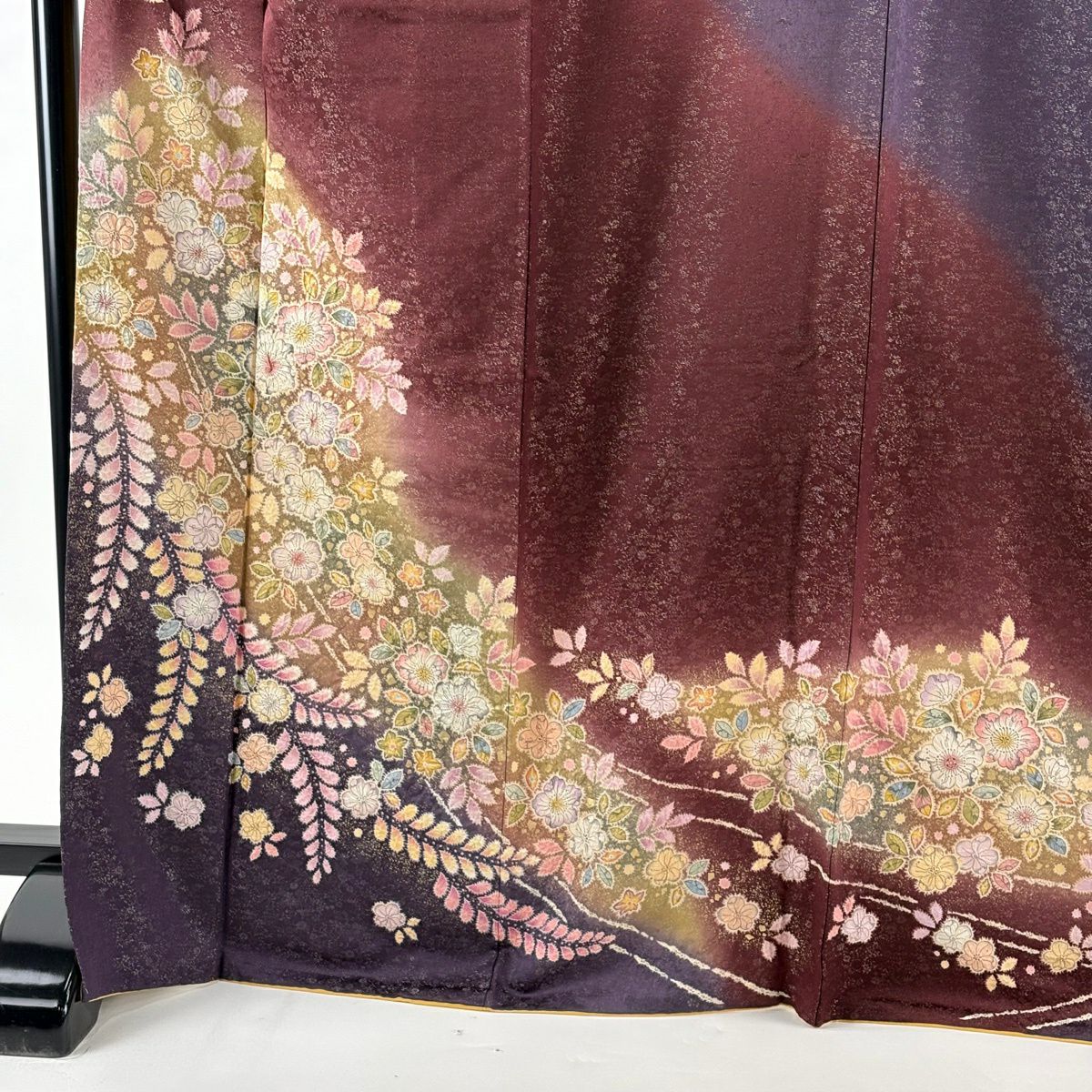 訪問着 身丈159cm 裄丈68.5cm L 袷 徳永憲峯 落款あり 辻が花 金通し 金彩 灰紫 正絹 逸品