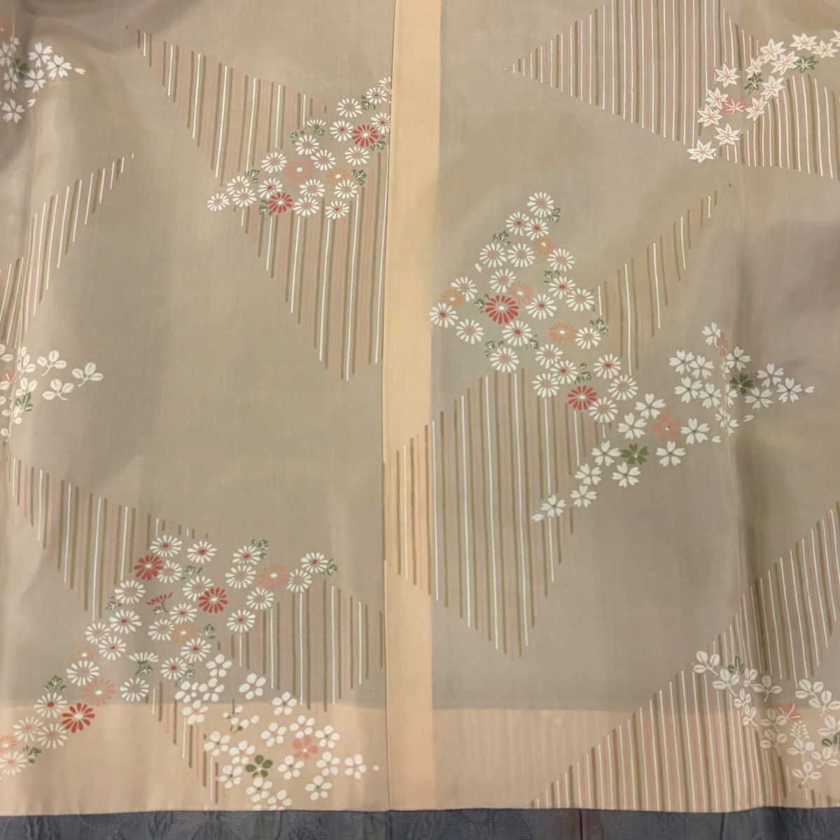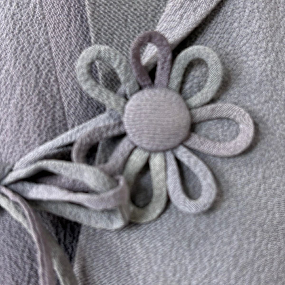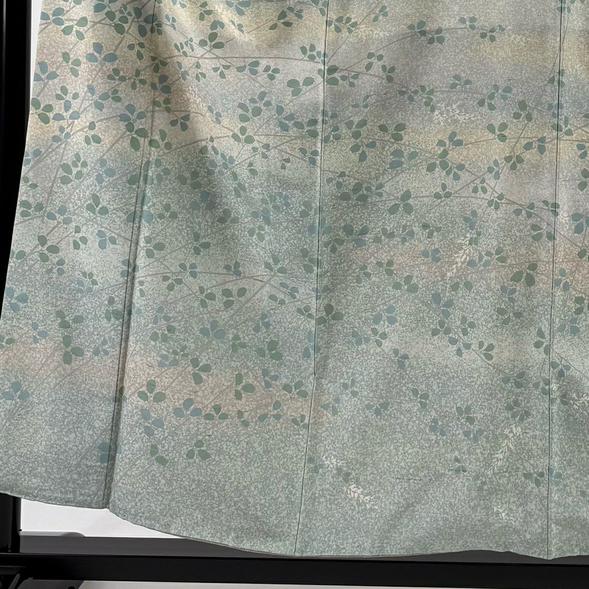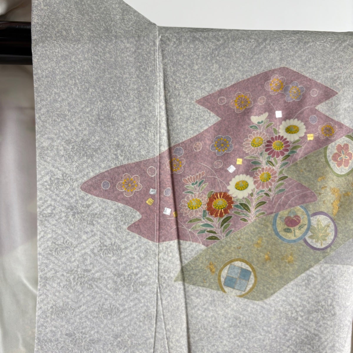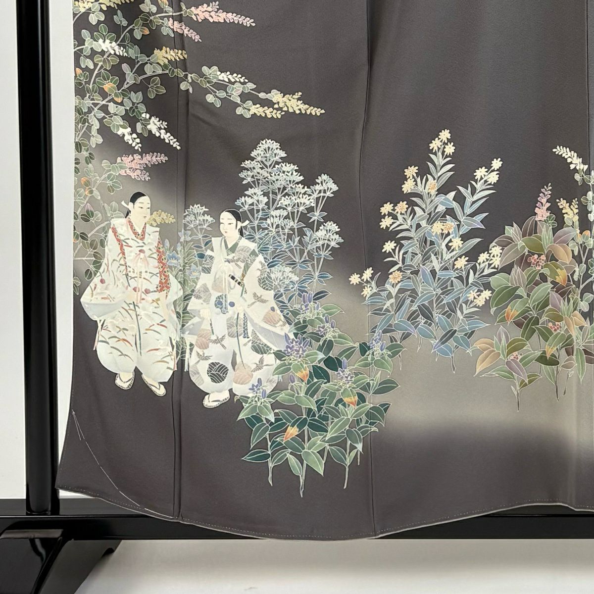 【在庫一掃】 小紋 身丈155cm 裄丈65cm M 袷 山岡古都 紋意匠 落款あり 草花 灰色 正絹 逸品