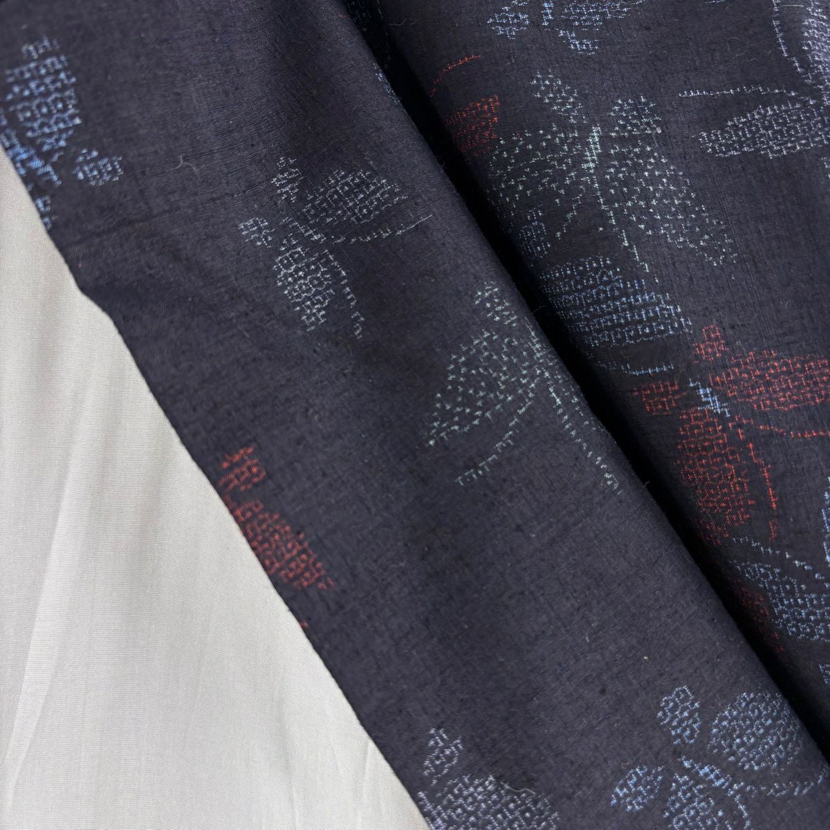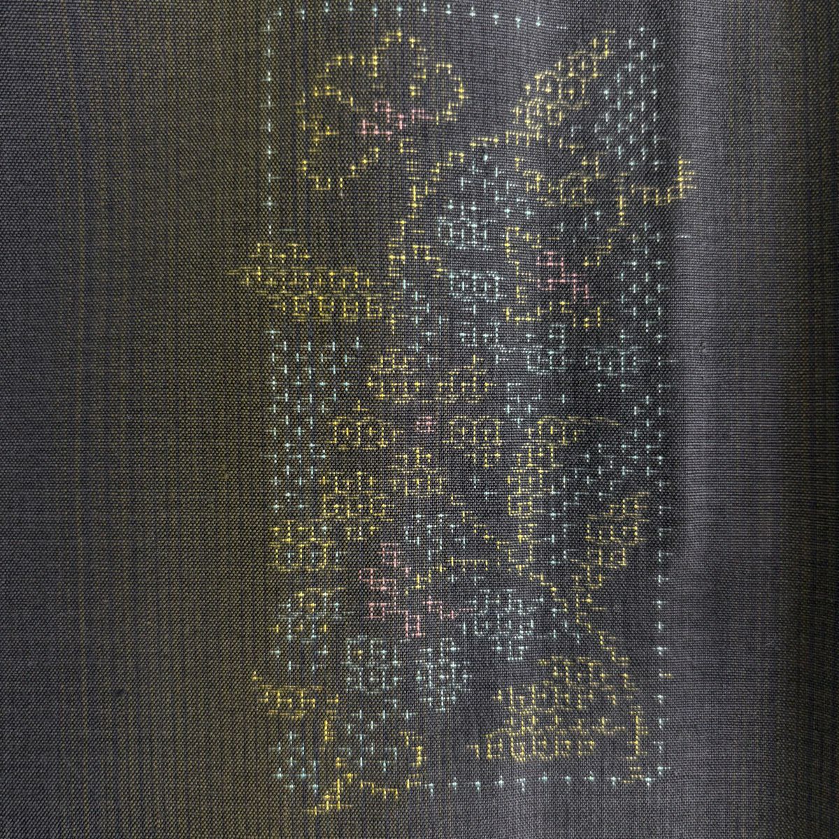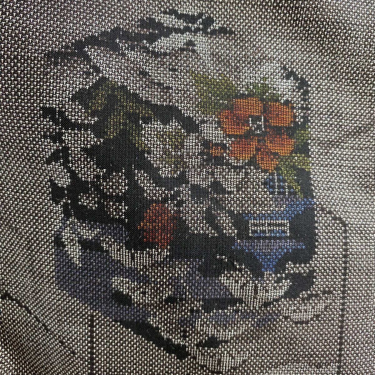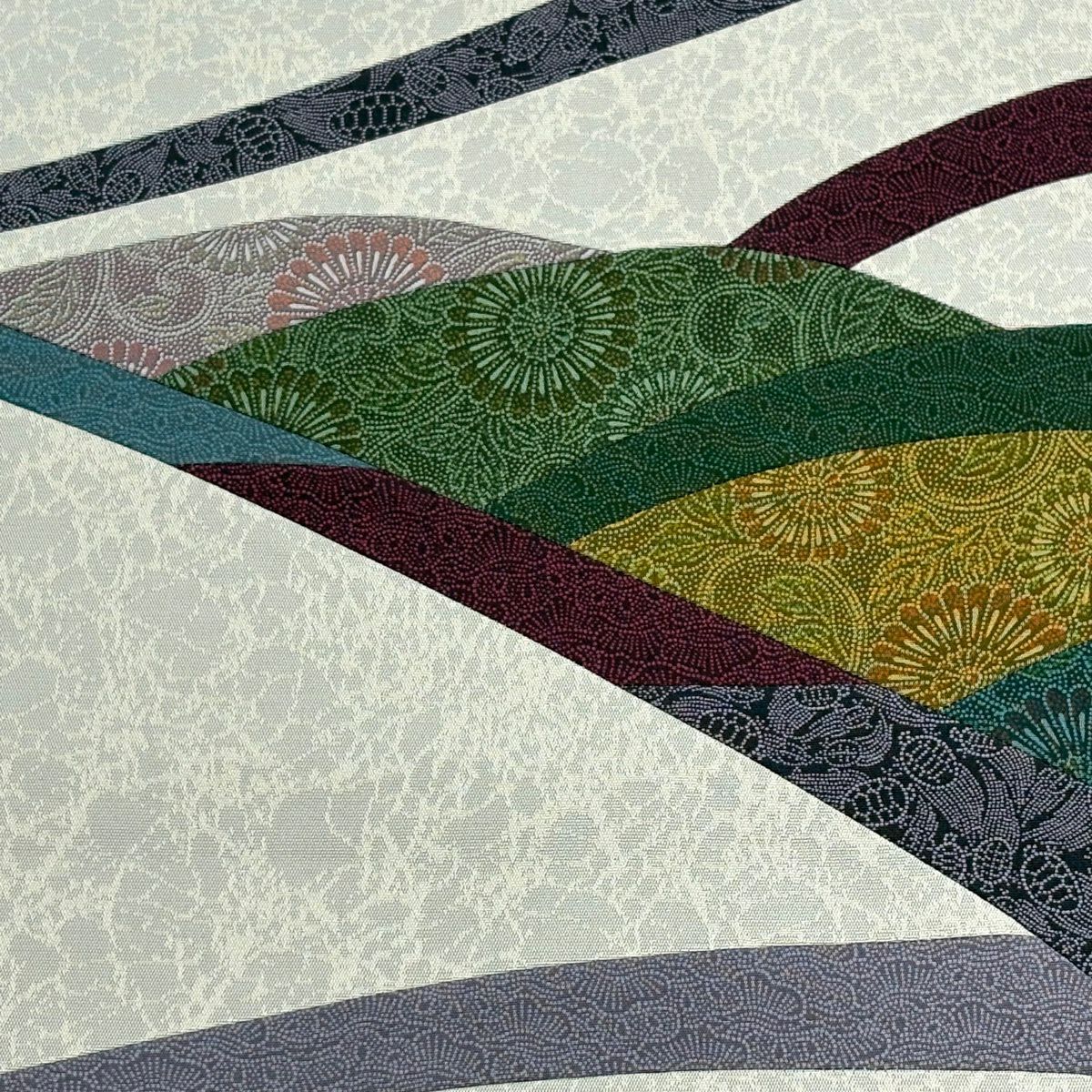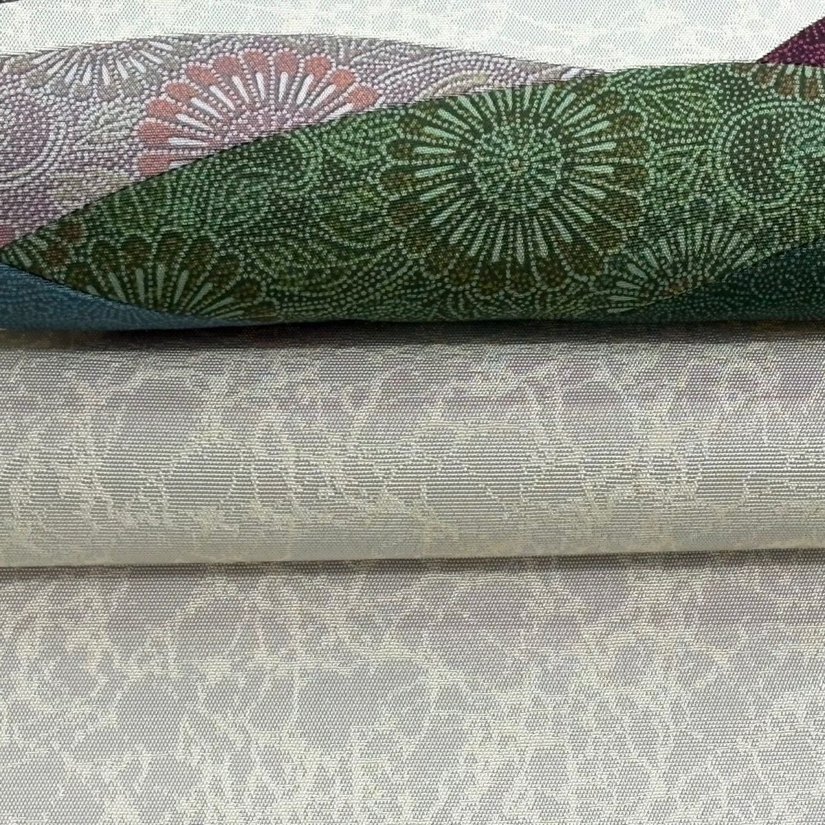 【在庫一掃】 小紋 身丈155cm 裄丈65cm M 袷 山岡古都 紋意匠 落款あり 草花 灰色 正絹 逸品