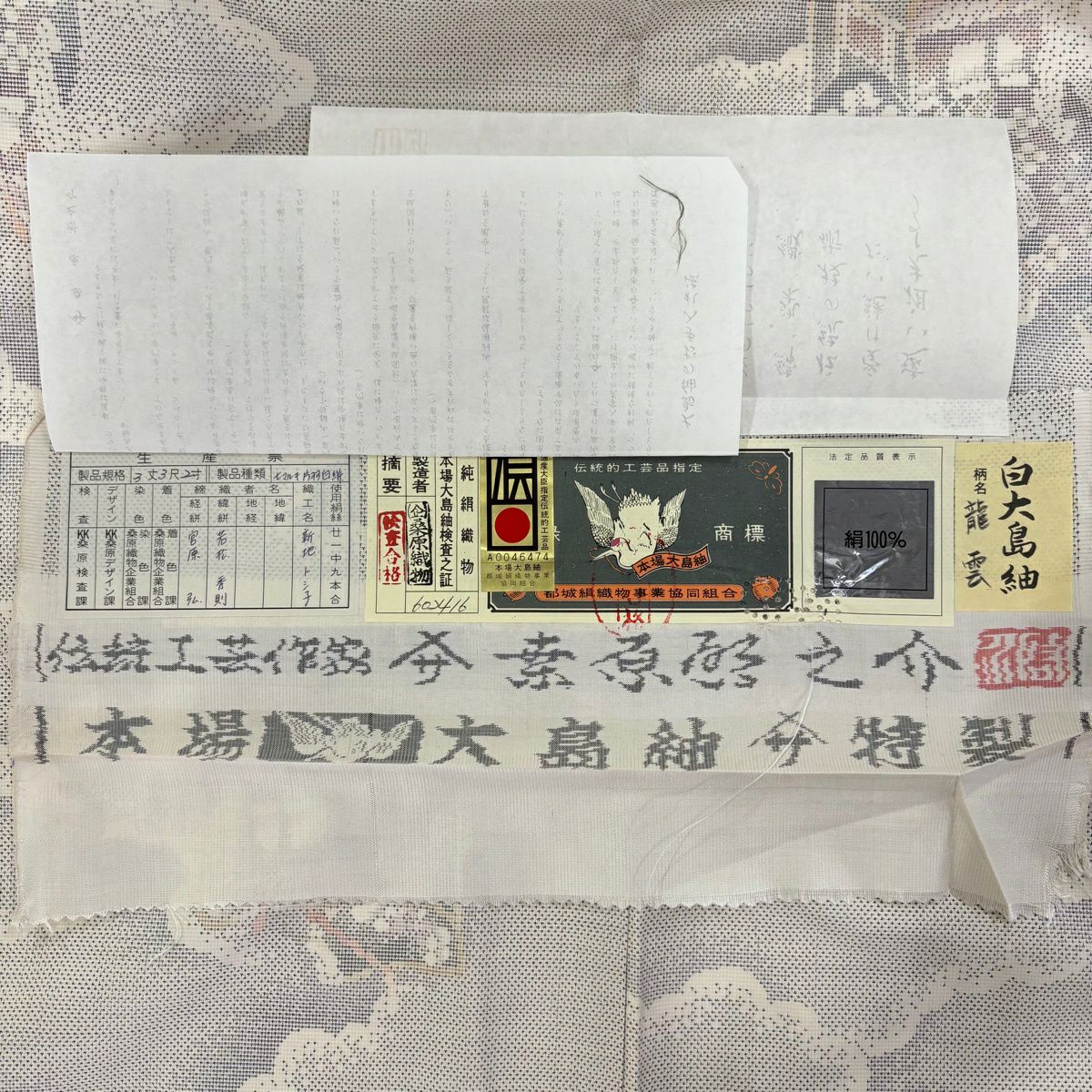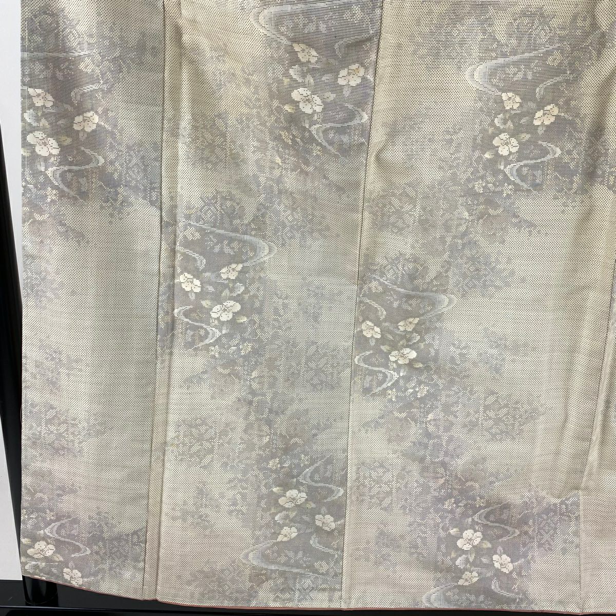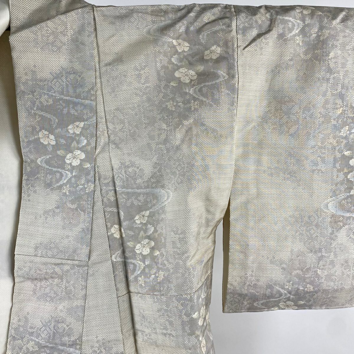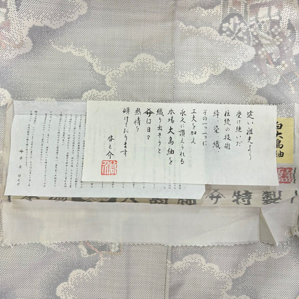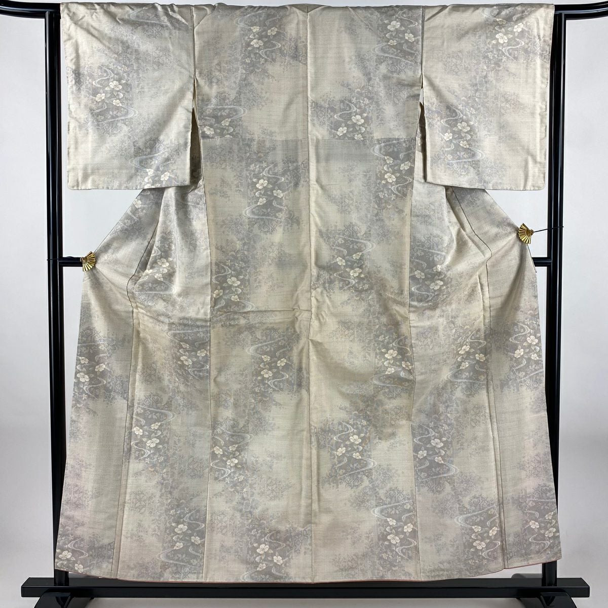 【在庫一掃】 大島紬 身丈157cm 裄丈63.5cm S 袷 証紙あり 草花 流水 クリーム 正絹 逸品