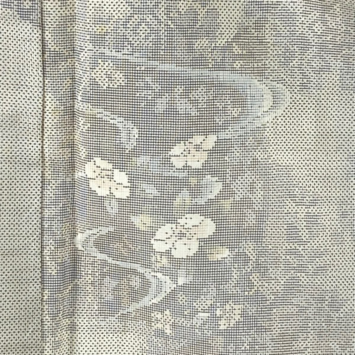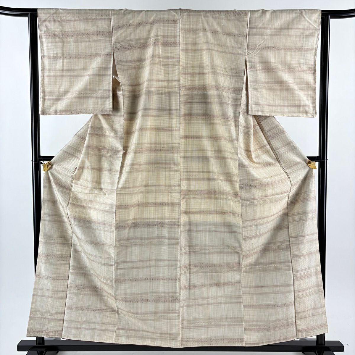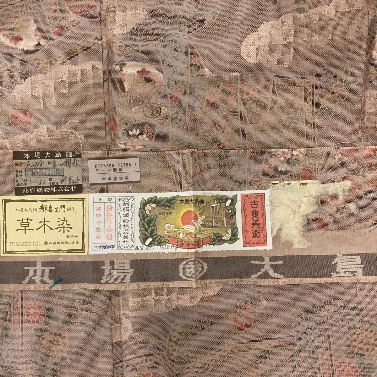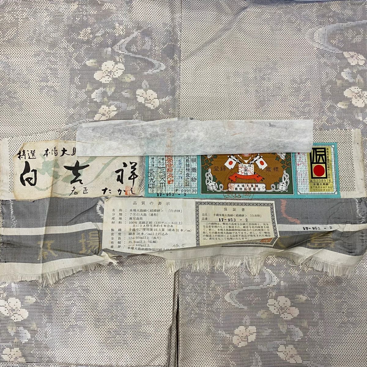 【在庫一掃】 大島紬 身丈157cm 裄丈63.5cm S 袷 証紙あり 草花 流水 クリーム 正絹 逸品