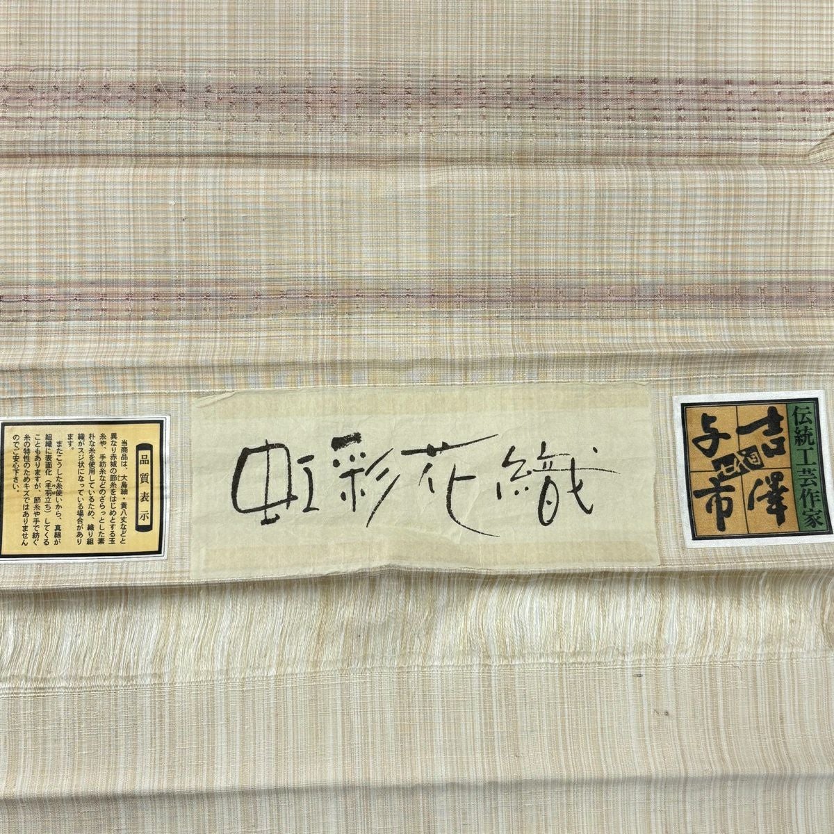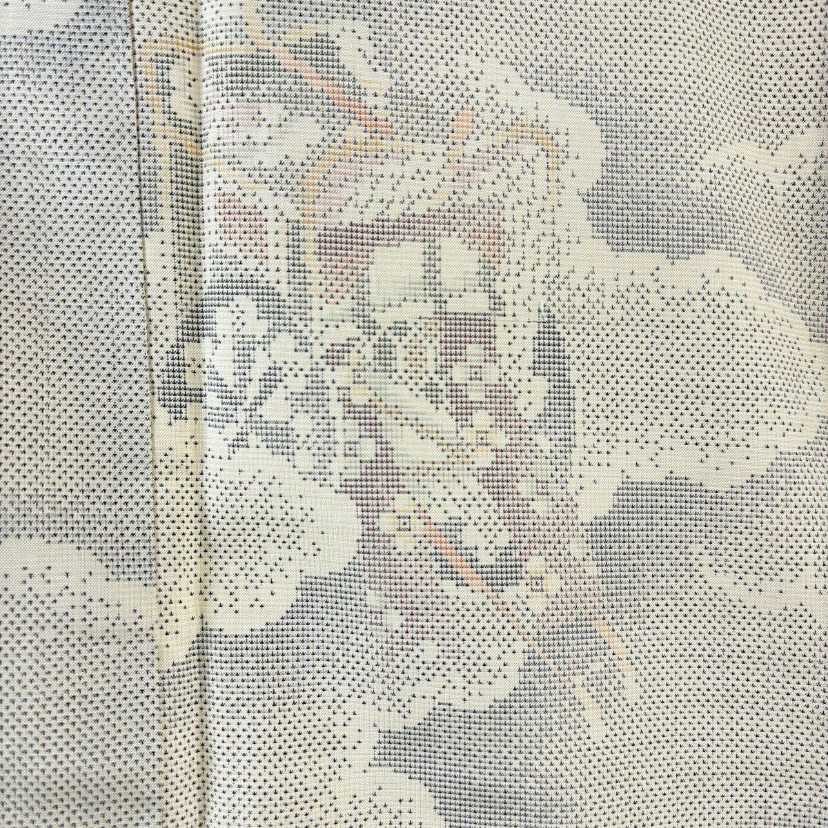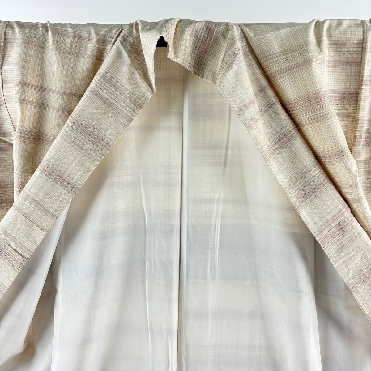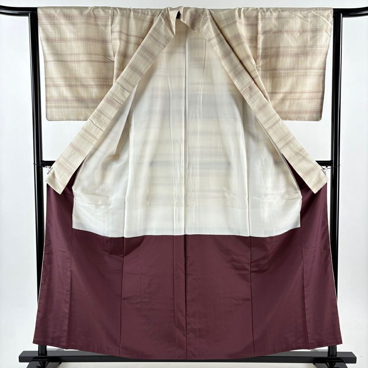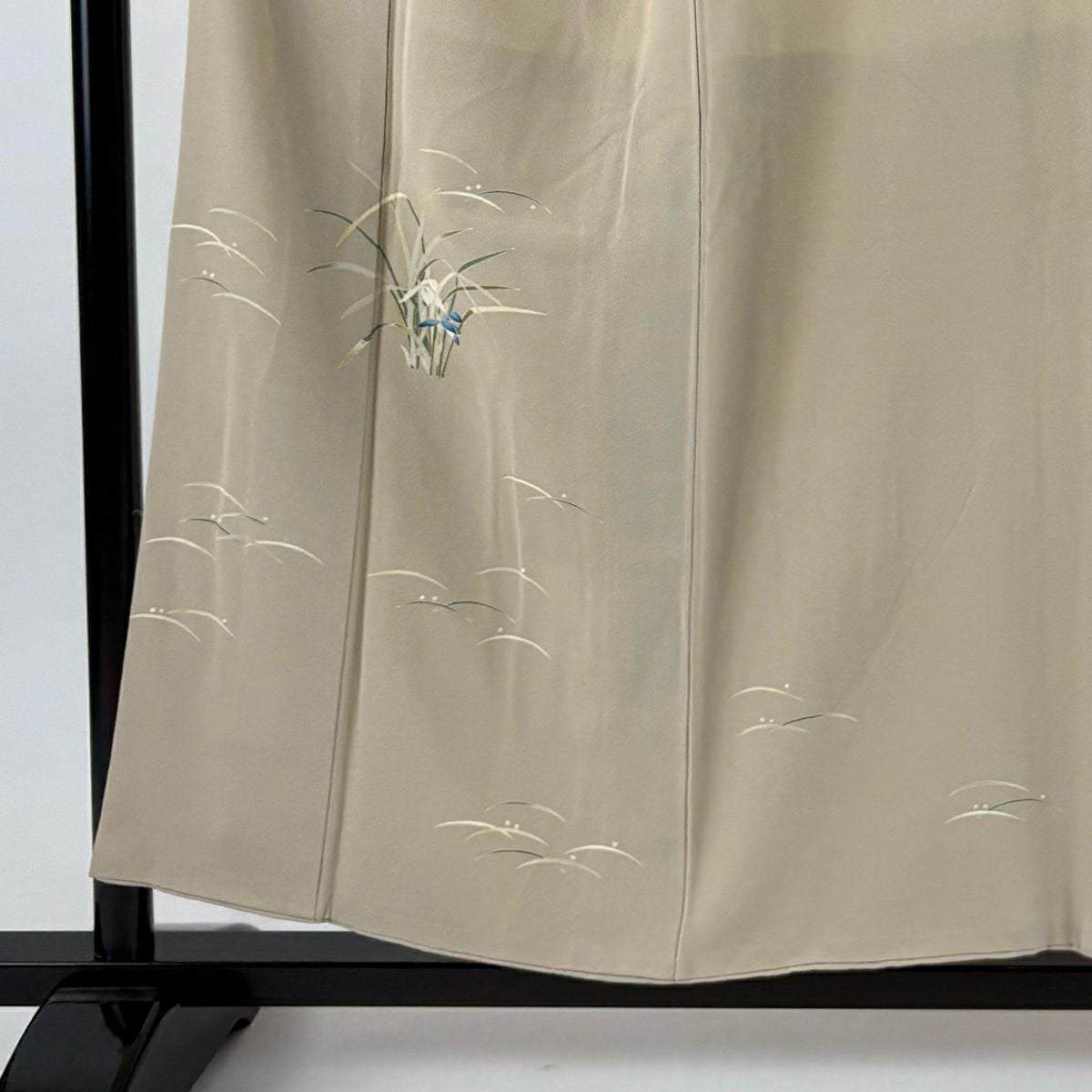 【在庫一掃】 大島紬 身丈157cm 裄丈63.5cm S 袷 証紙あり 草花 流水 クリーム 正絹 逸品
