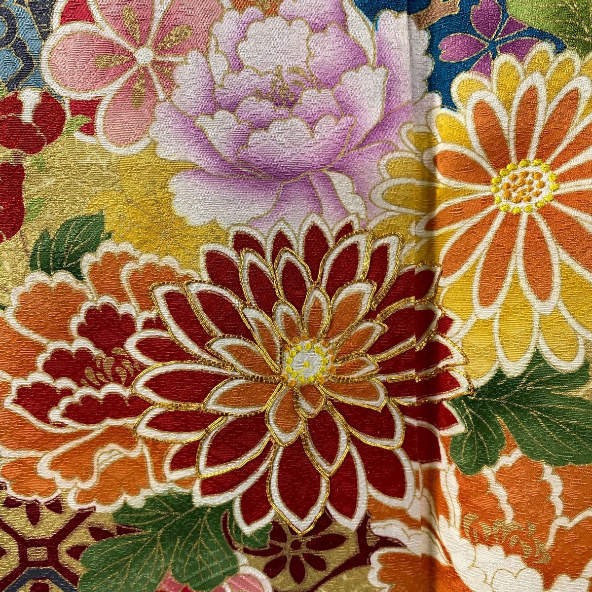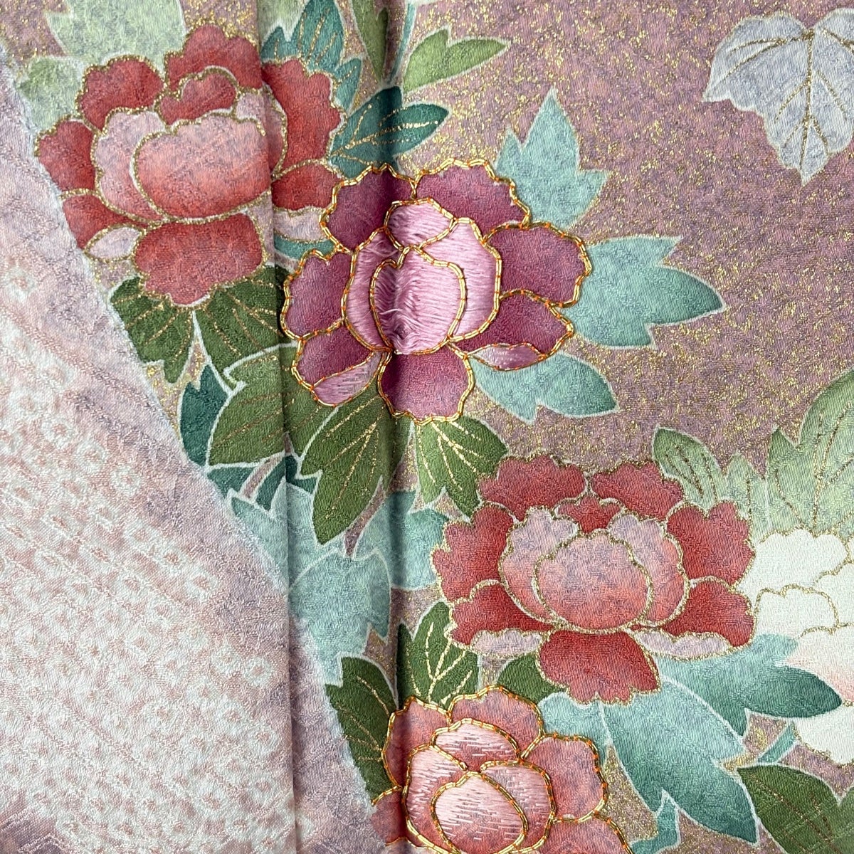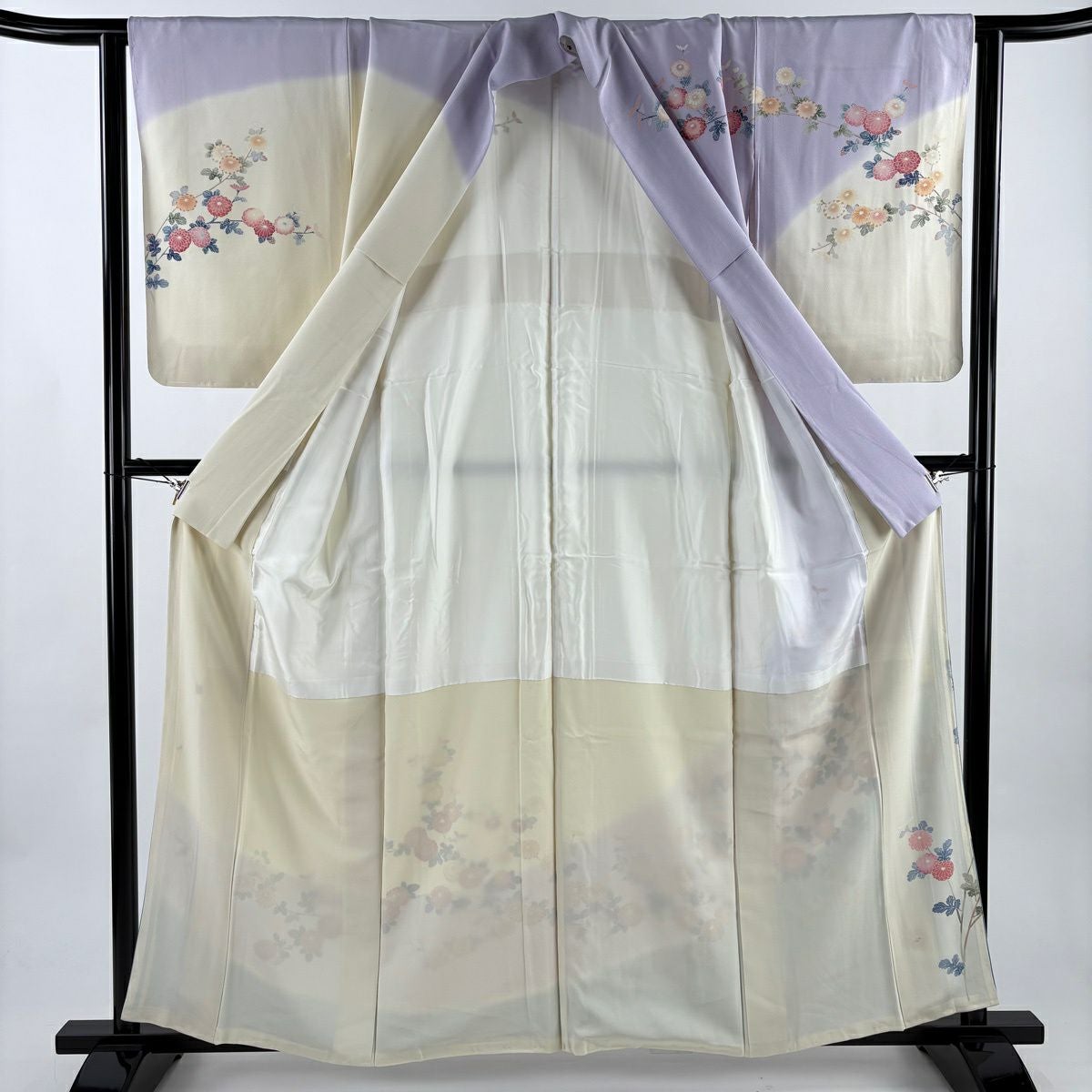 【在庫一掃】 振袖 身丈168.5cm 裄丈68cm L 袷 牡丹 菊 銀通し 刺繍 クリーム 正絹 逸品