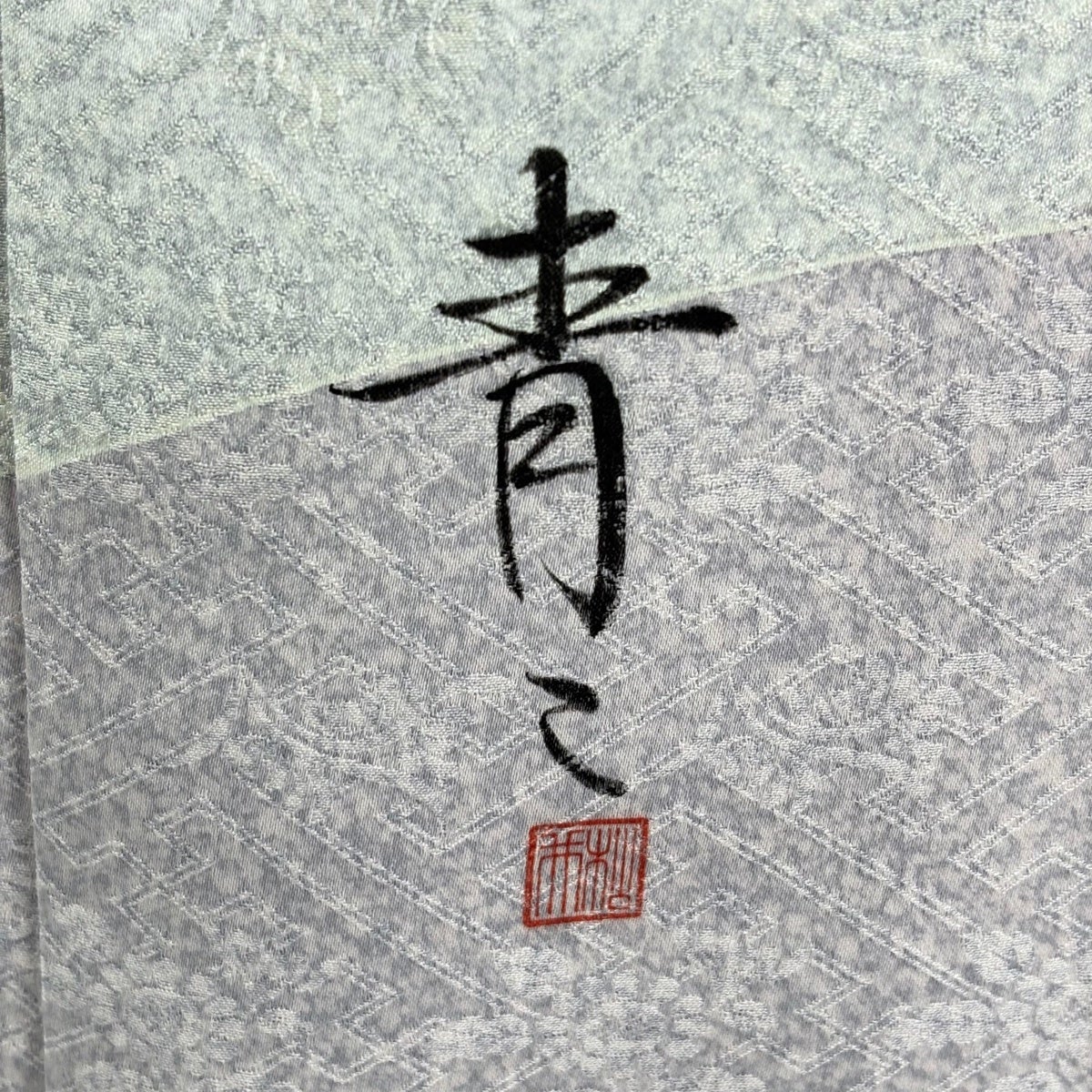 【在庫一掃】 【美品】 振袖 身丈170cm 裄丈69cm L 袷 菊 扇面 銀通し 金糸 青緑 正絹 逸品