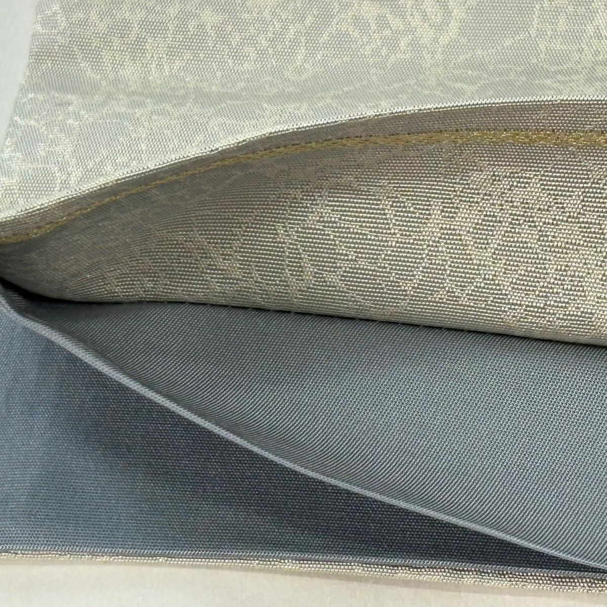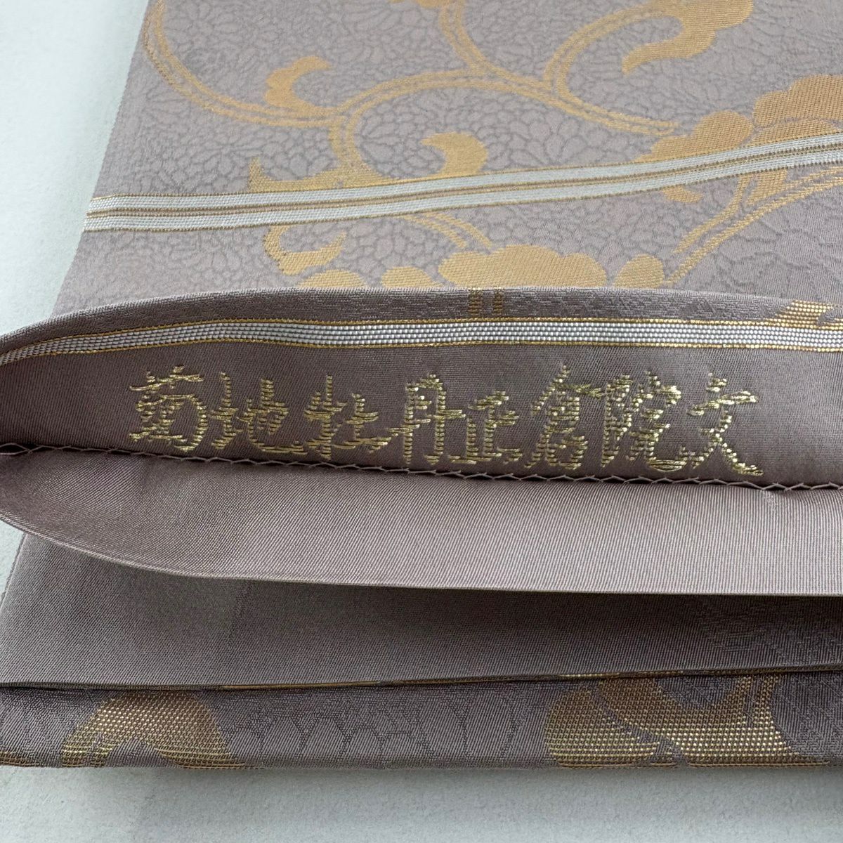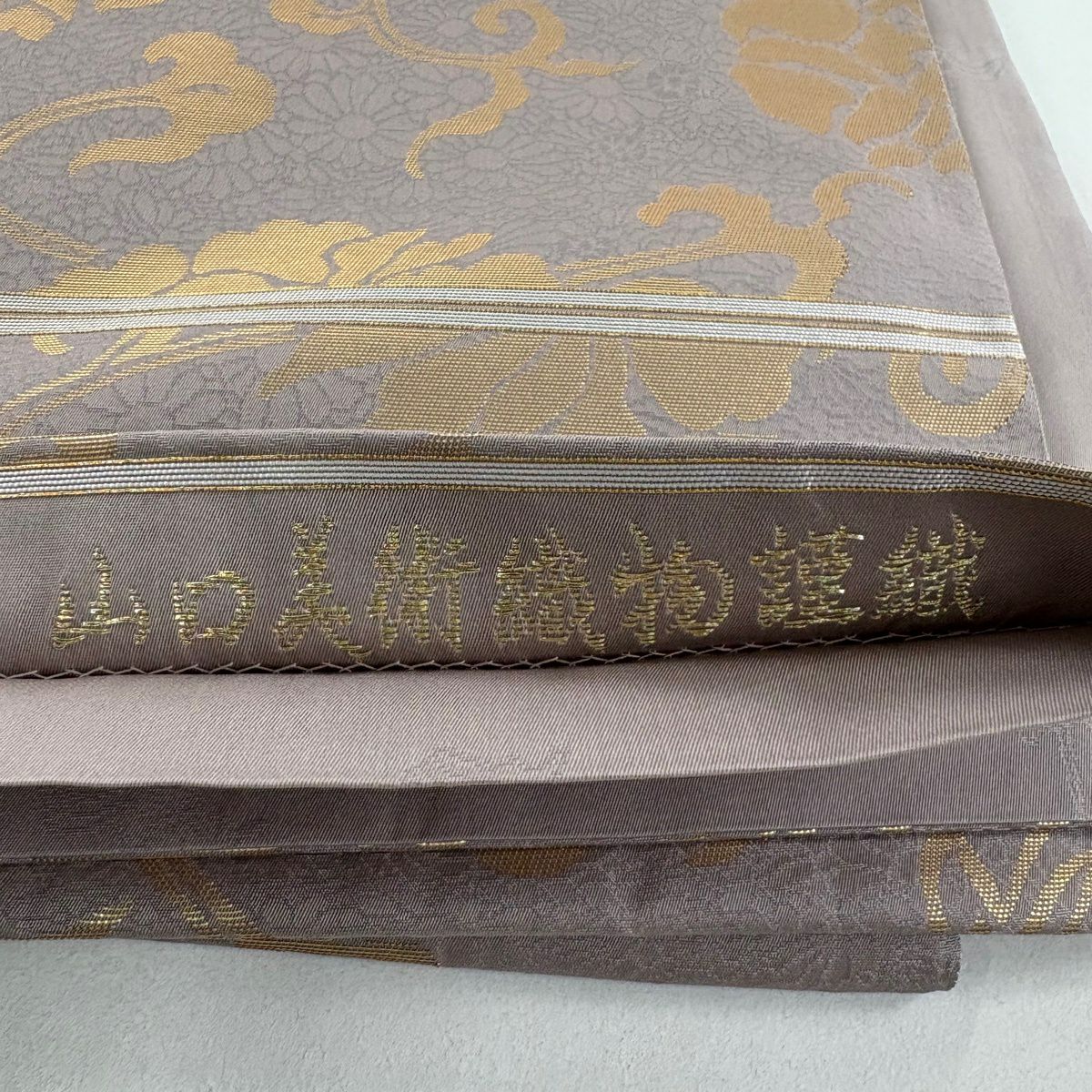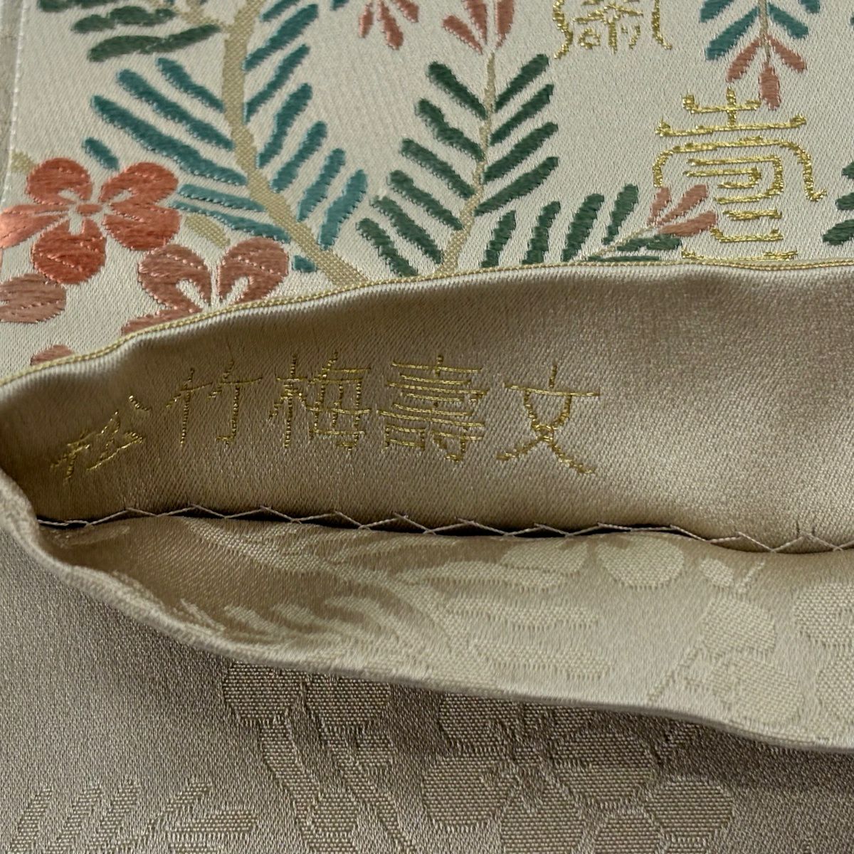 【在庫一掃】 【美品】 袋帯 逸品 落款あり やまと 草花 切り嵌め 金銀彩 ベージュ お太鼓柄 正絹