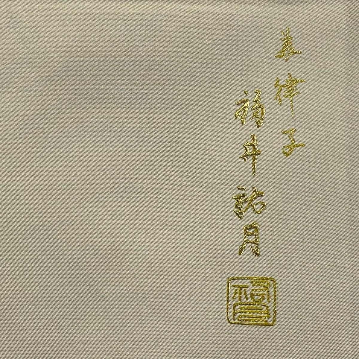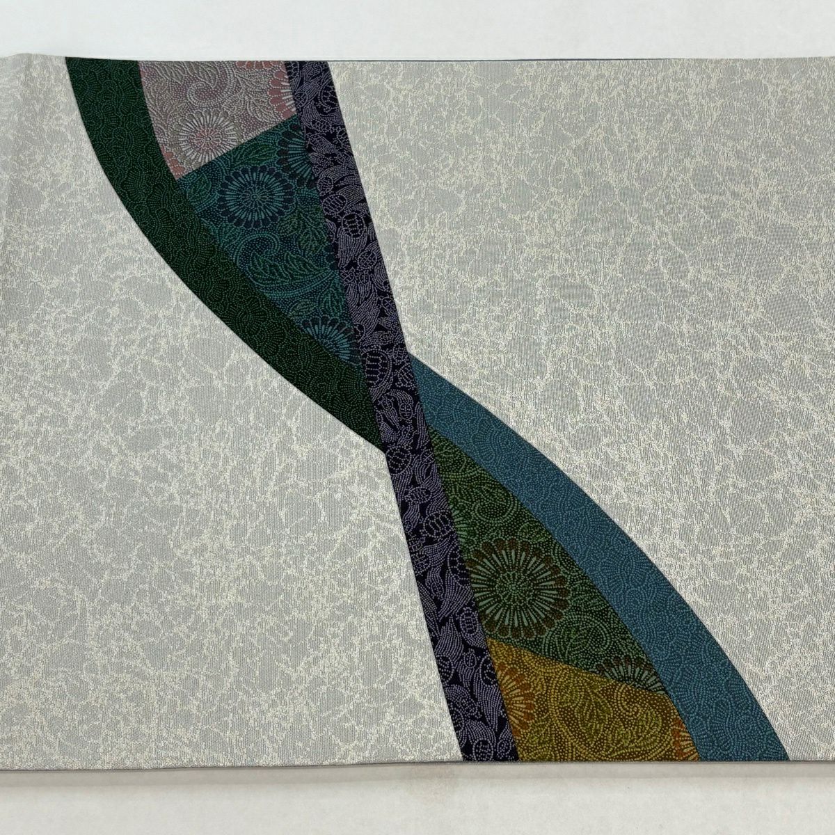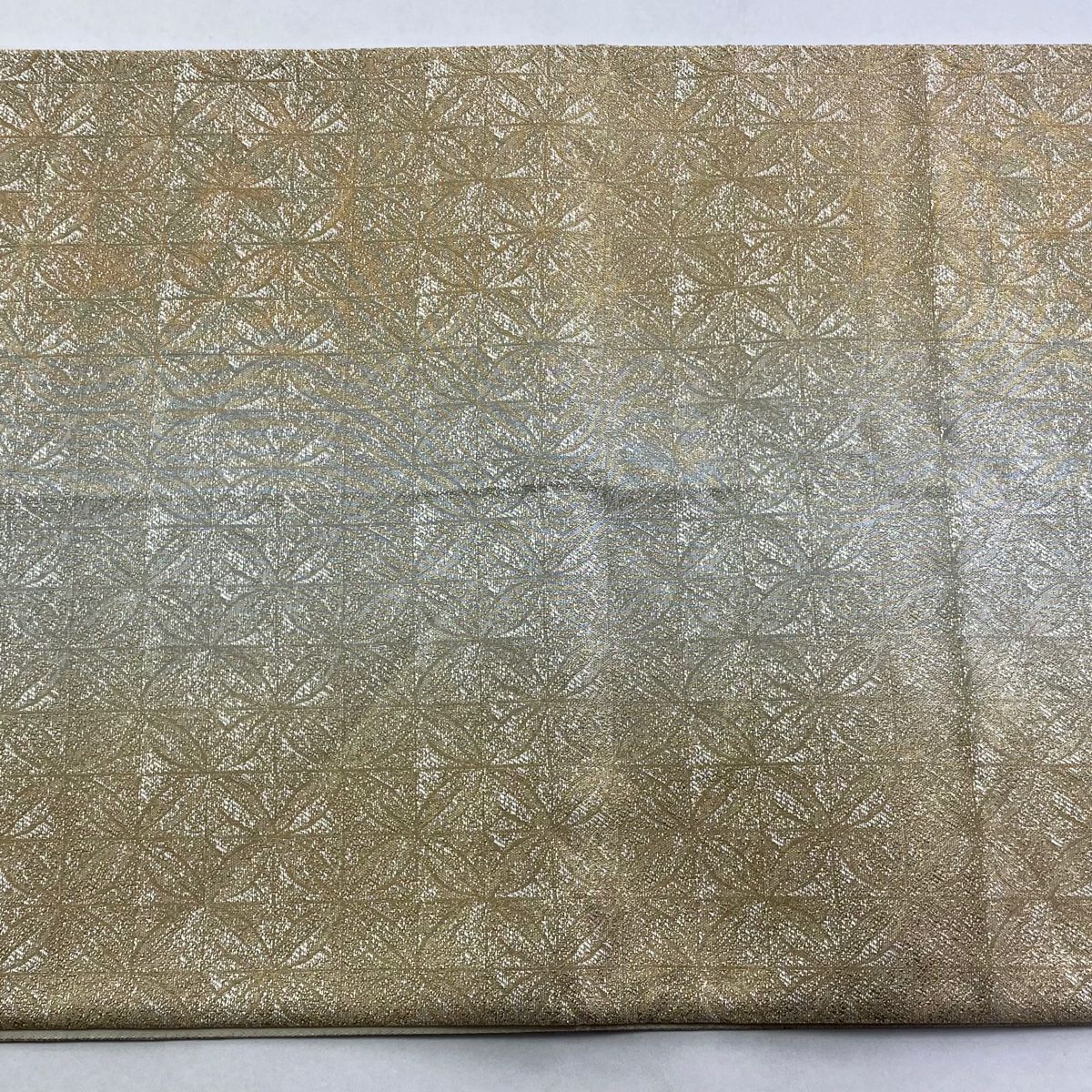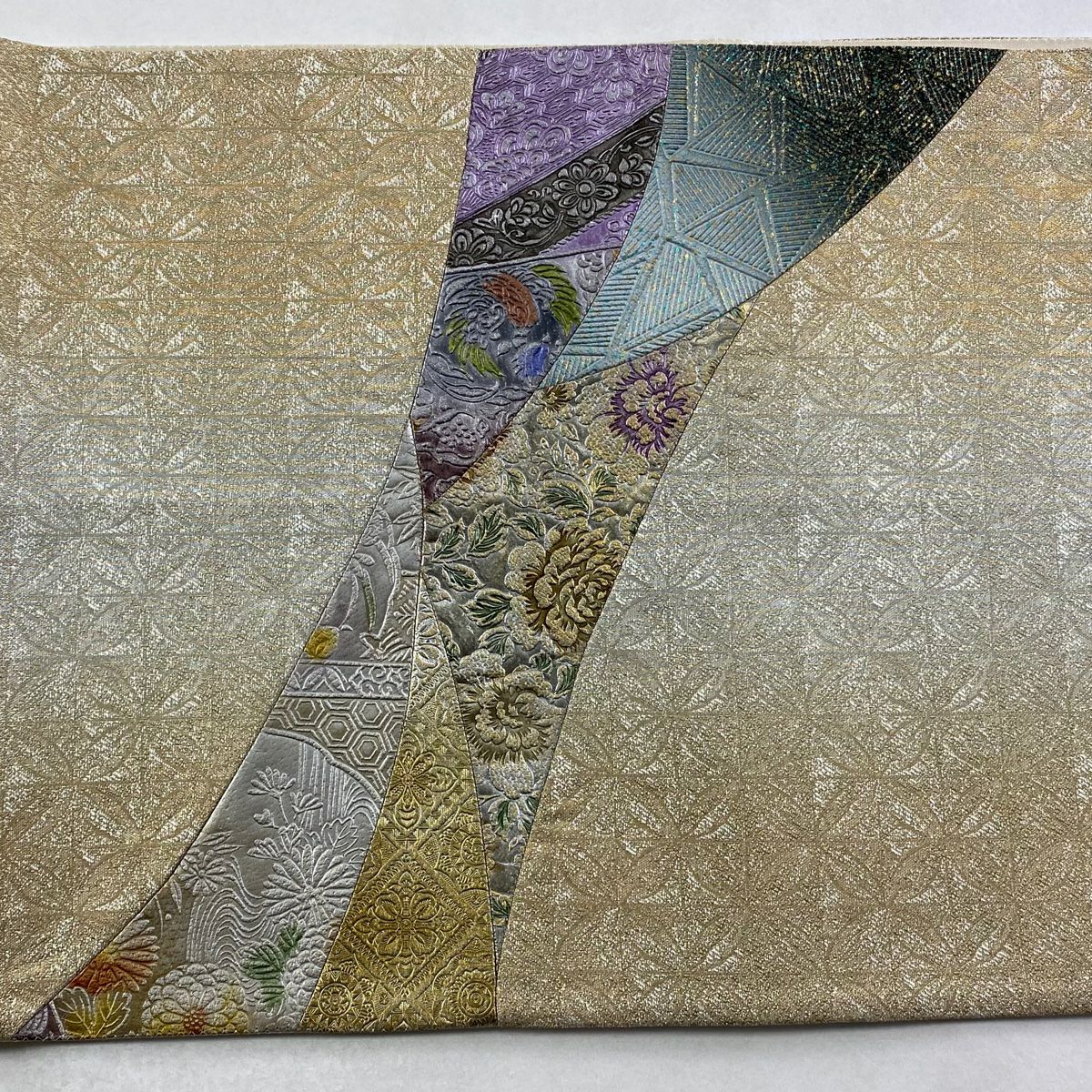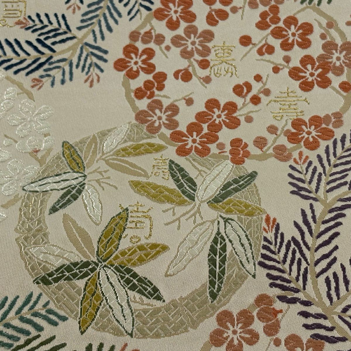 【在庫一掃】 【美品】 袋帯 逸品 落款あり やまと 草花 切り嵌め 金銀彩 ベージュ お太鼓柄 正絹