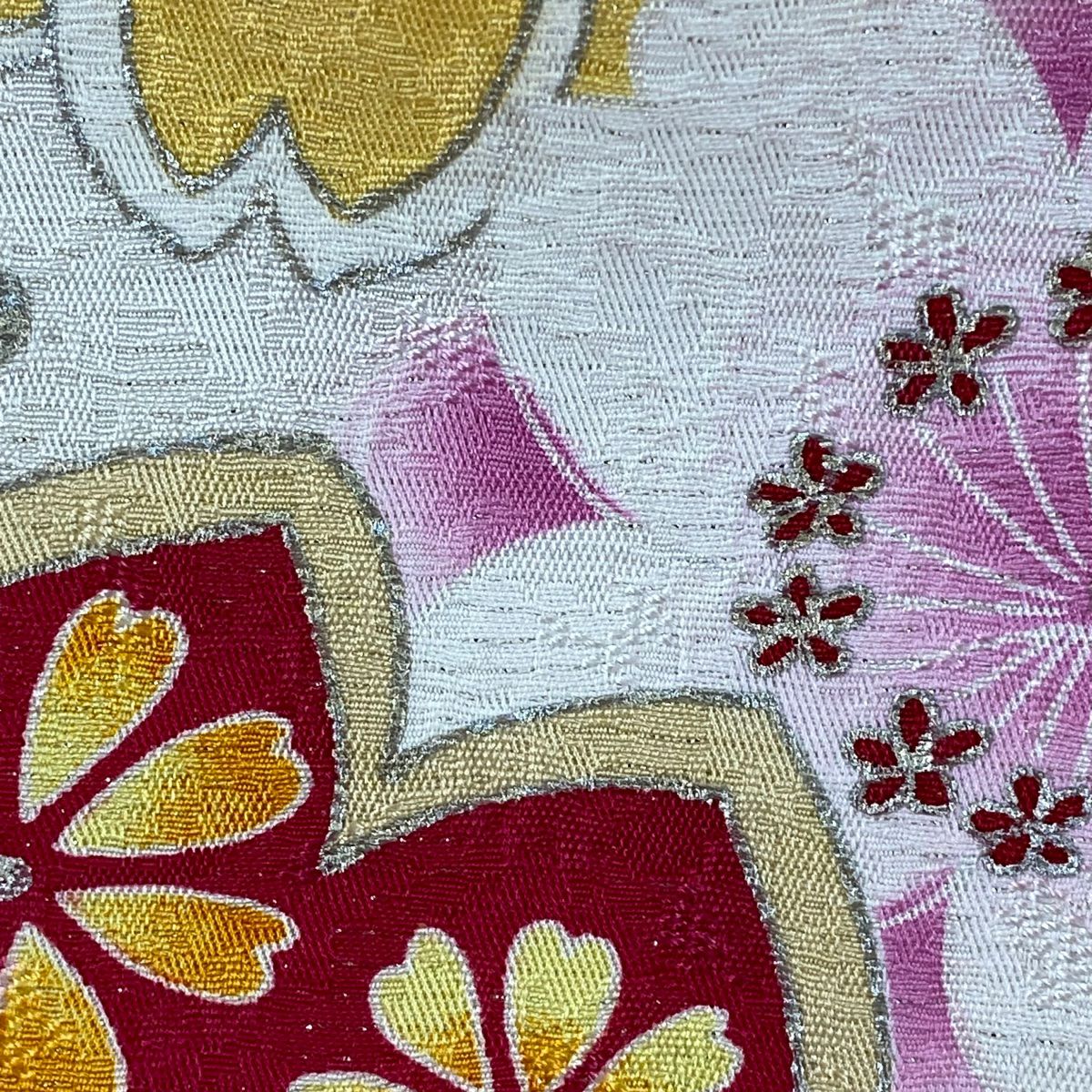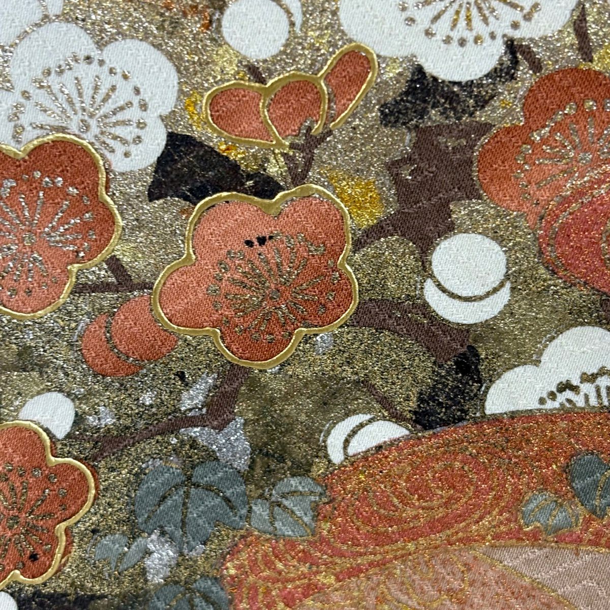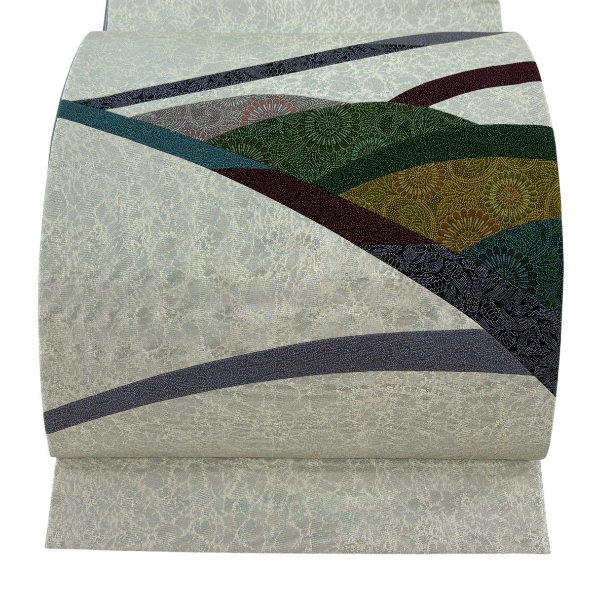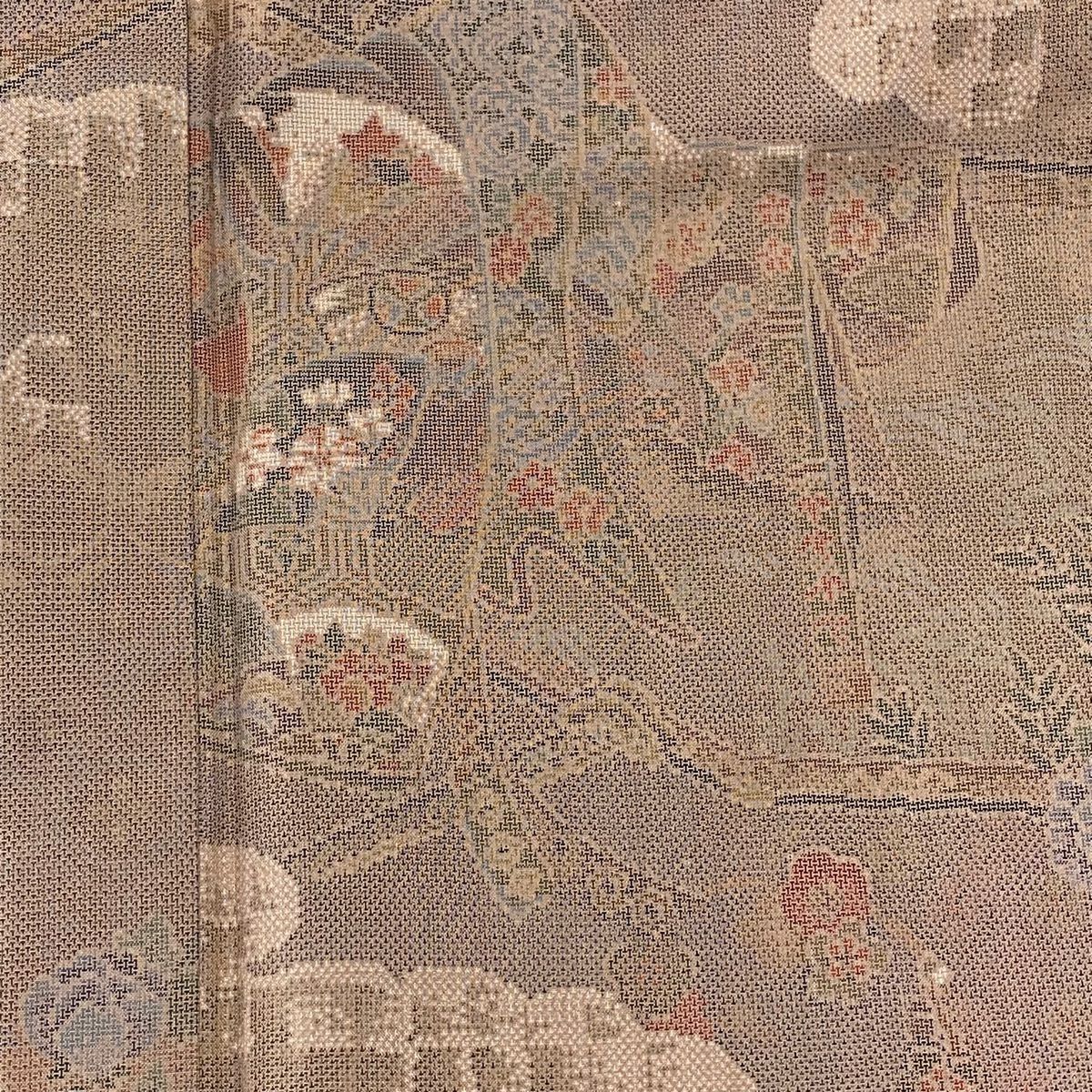 【在庫一掃】 【美品】 袋帯 逸品 落款あり やまと 草花 切り嵌め 金銀彩 ベージュ お太鼓柄 正絹