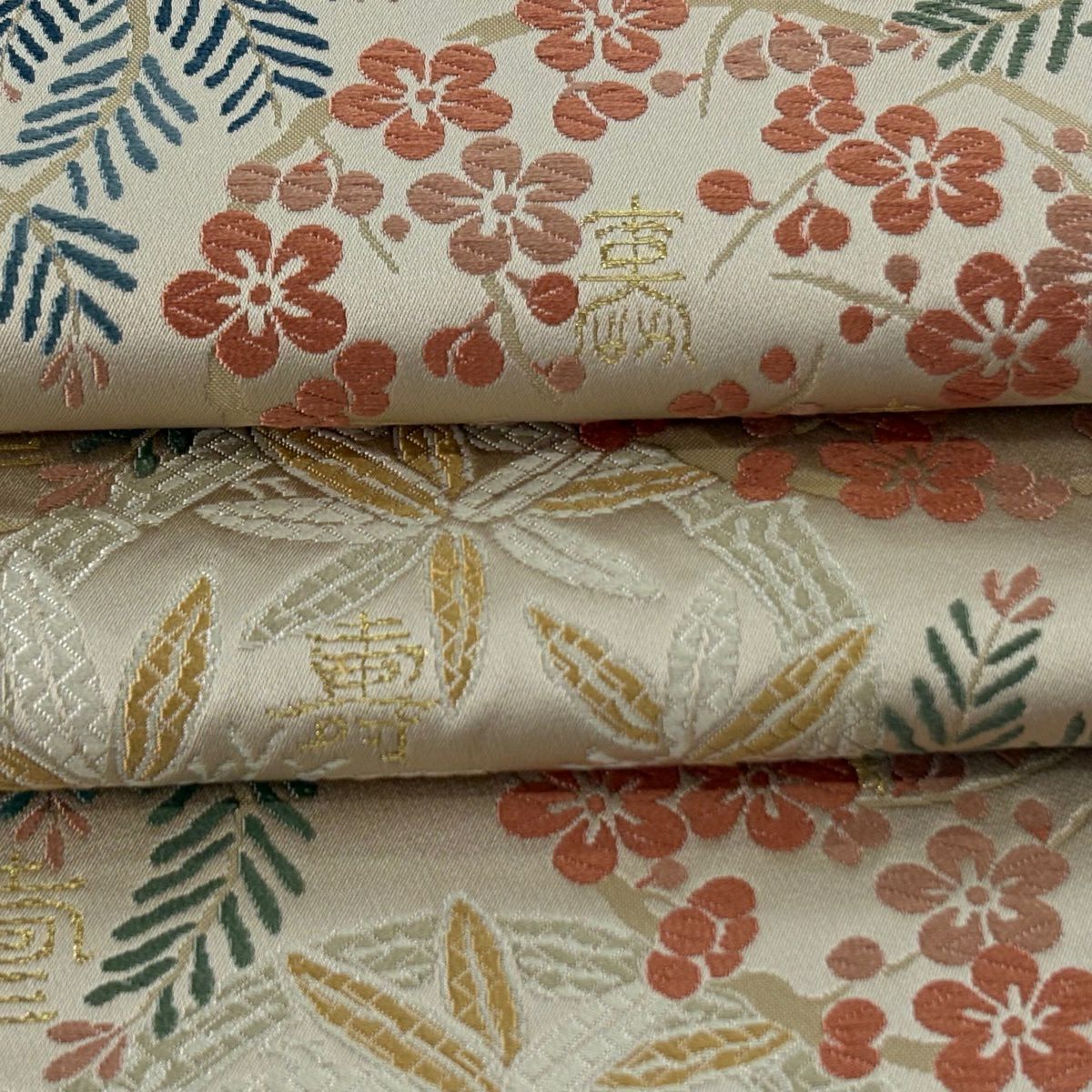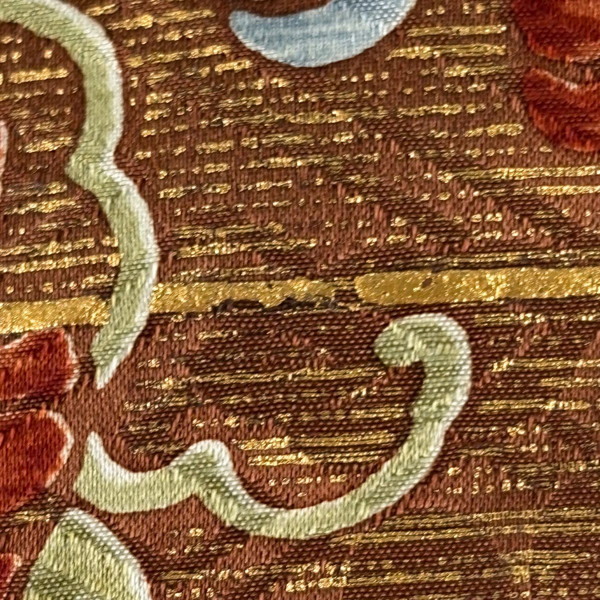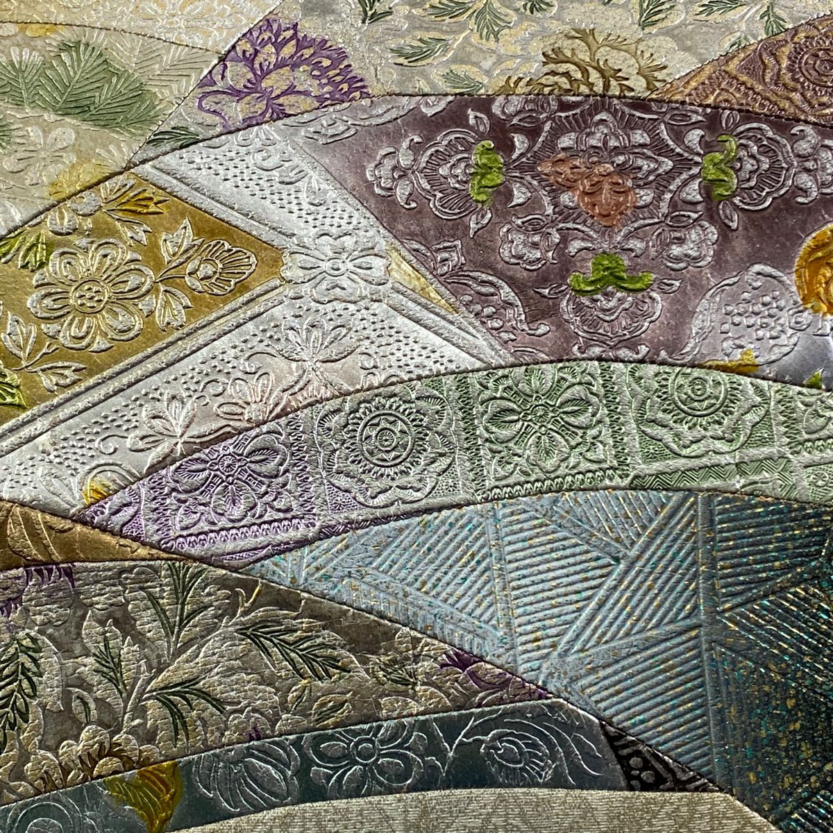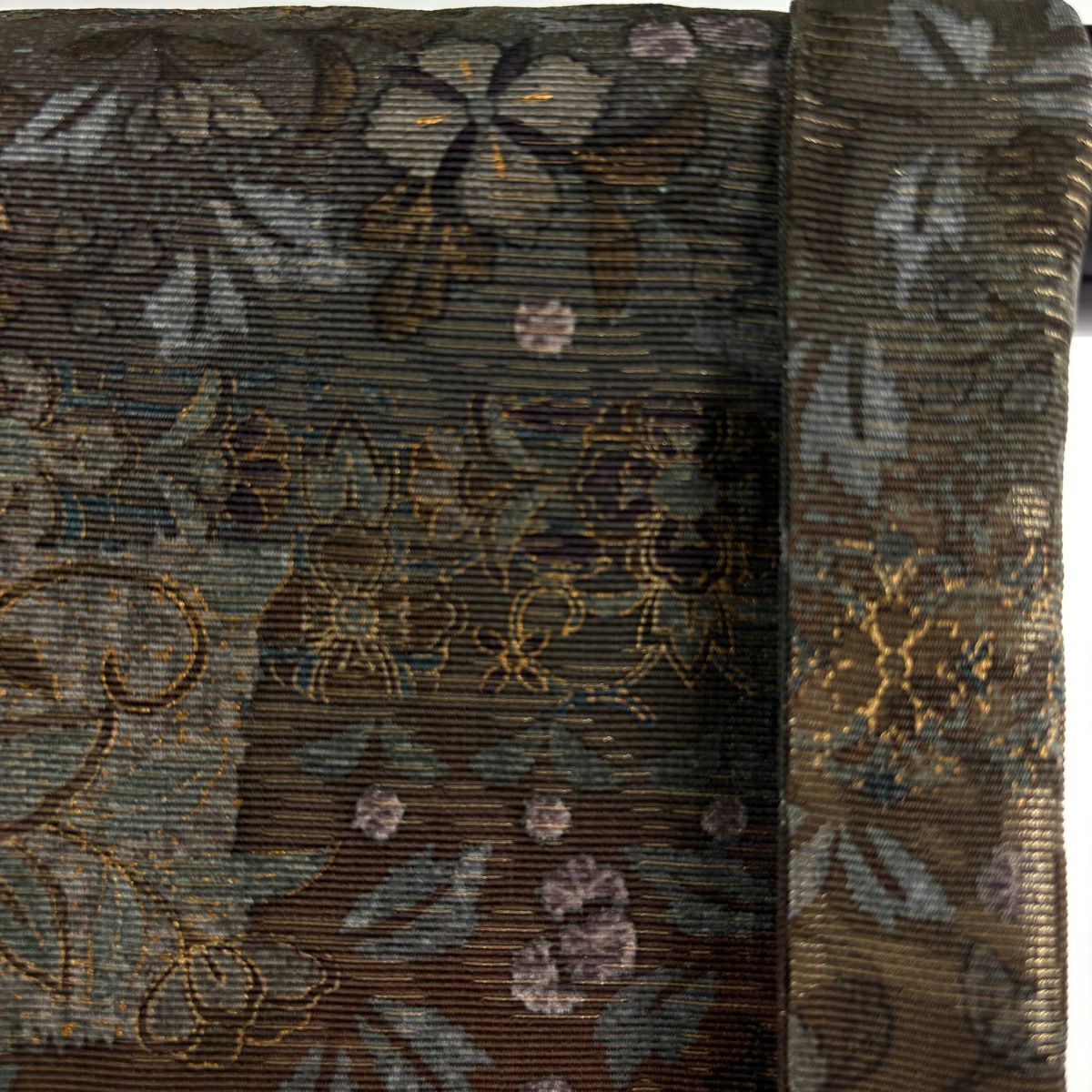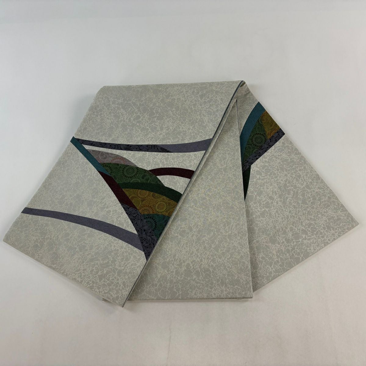 【在庫一掃】 【美品】 袋帯 逸品 落款あり やまと 草花 切り嵌め 金銀彩 ベージュ お太鼓柄 正絹