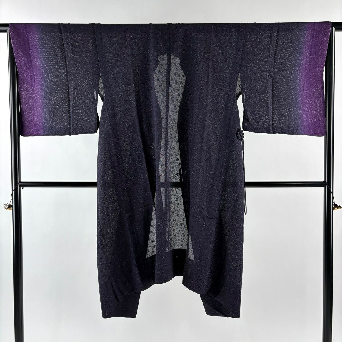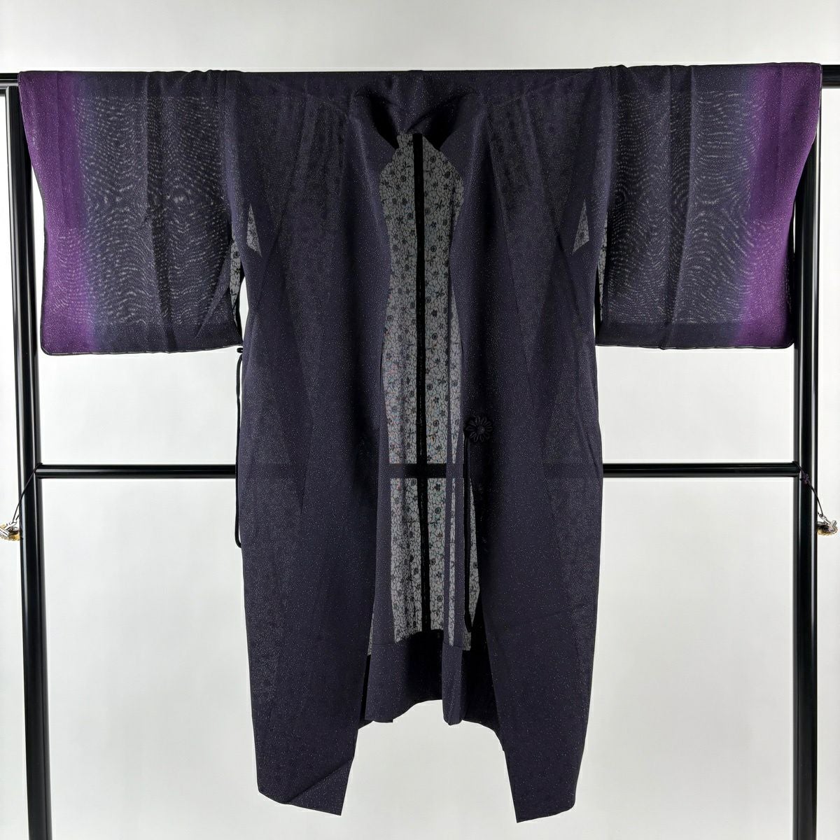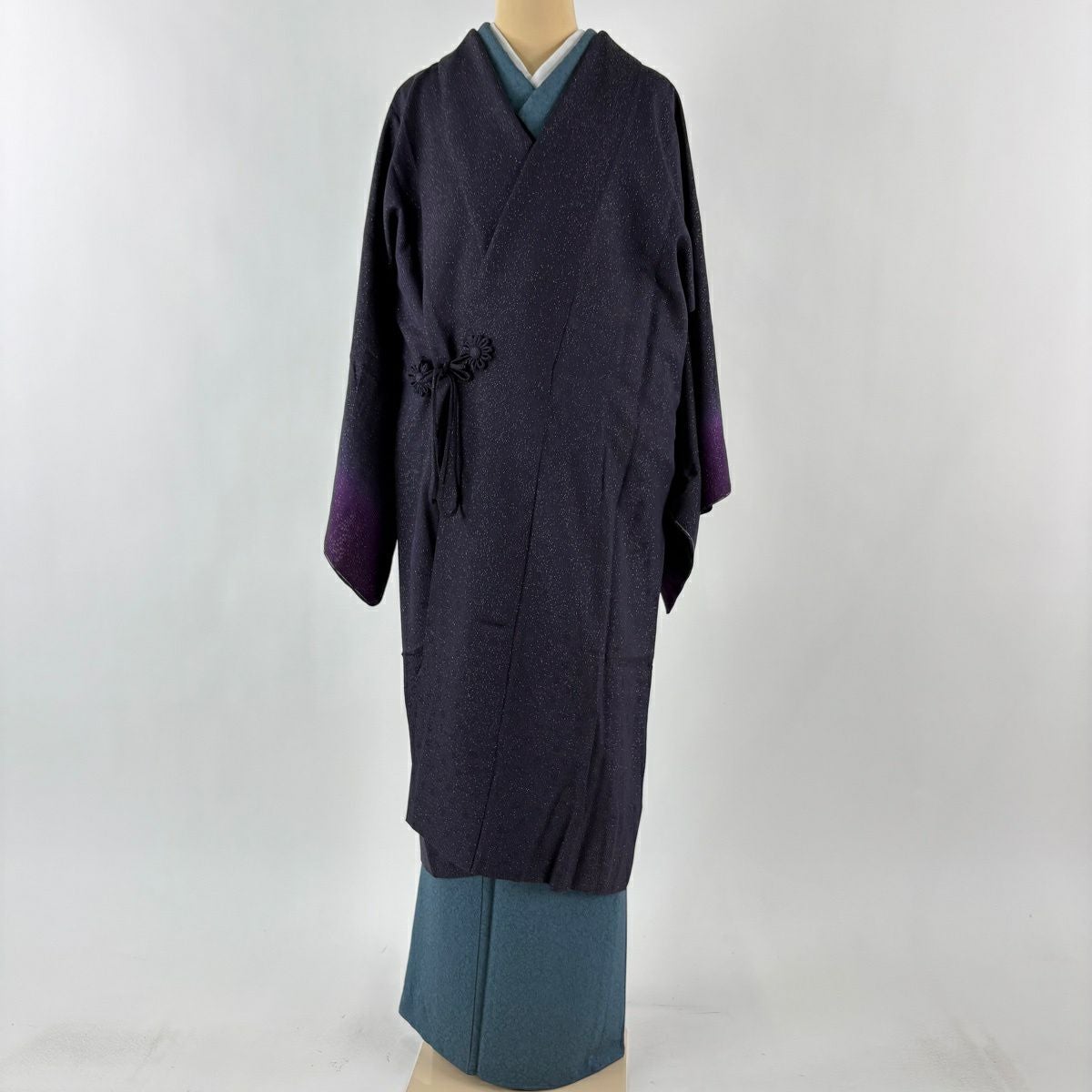 【在庫一掃】 【美品】 道中着 身丈100cm 裄丈67cm M 和装コート 地紋 染め分け 紫 正絹 逸品