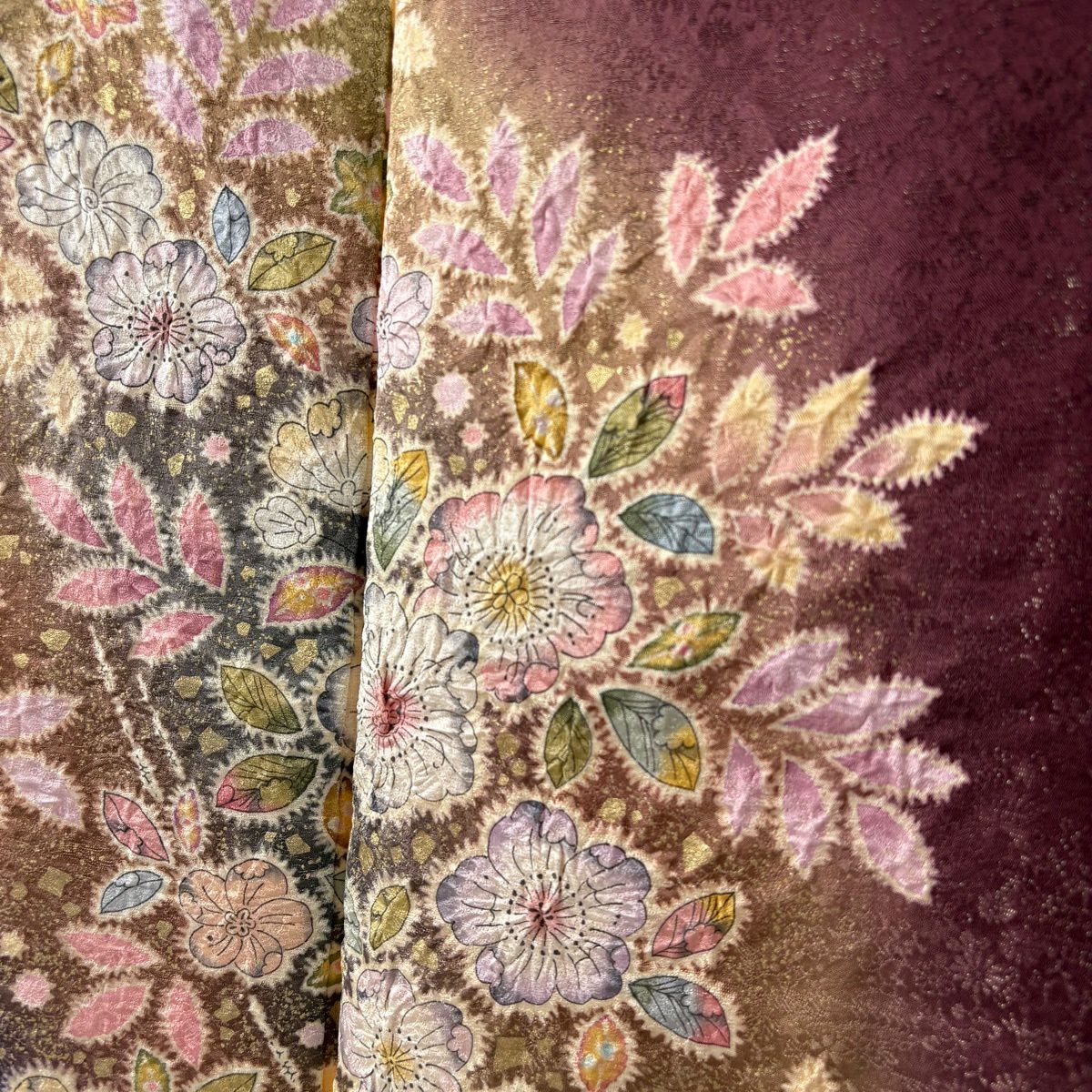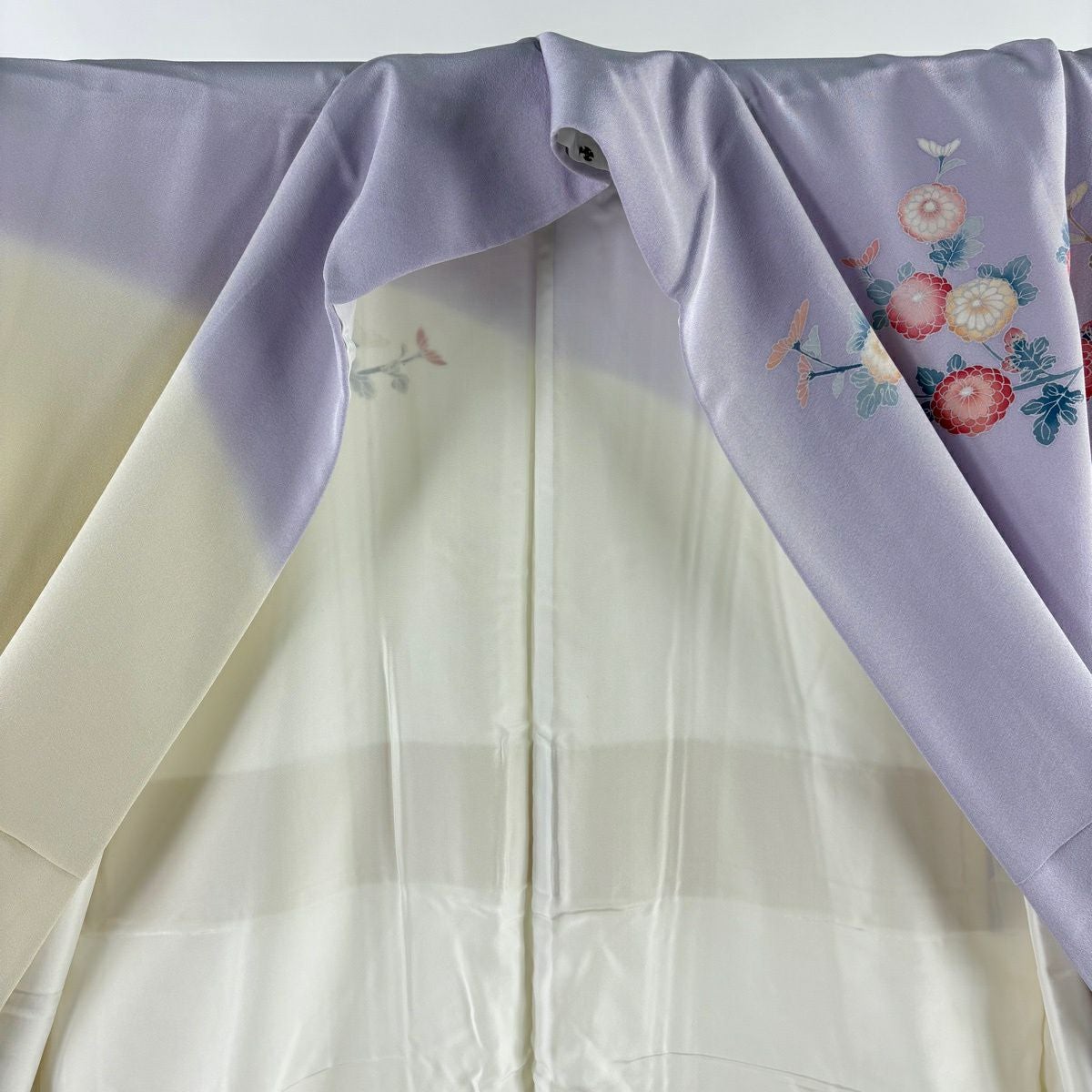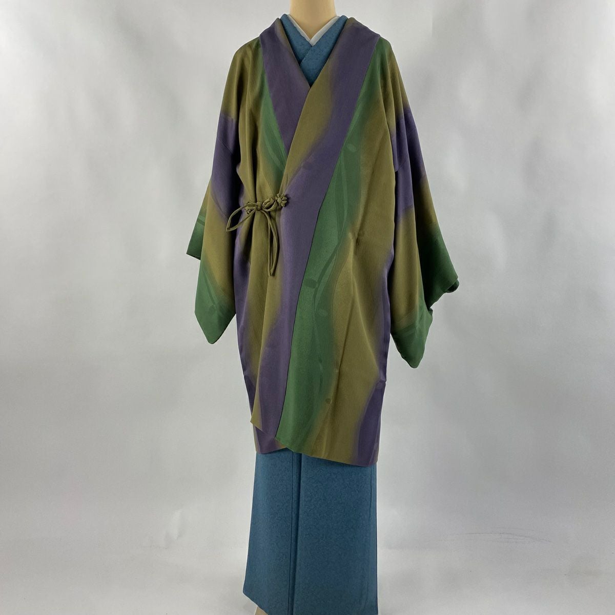 【在庫一掃】 【美品】 道中着 身丈100cm 裄丈67cm M 和装コート 地紋 染め分け 紫 正絹 逸品